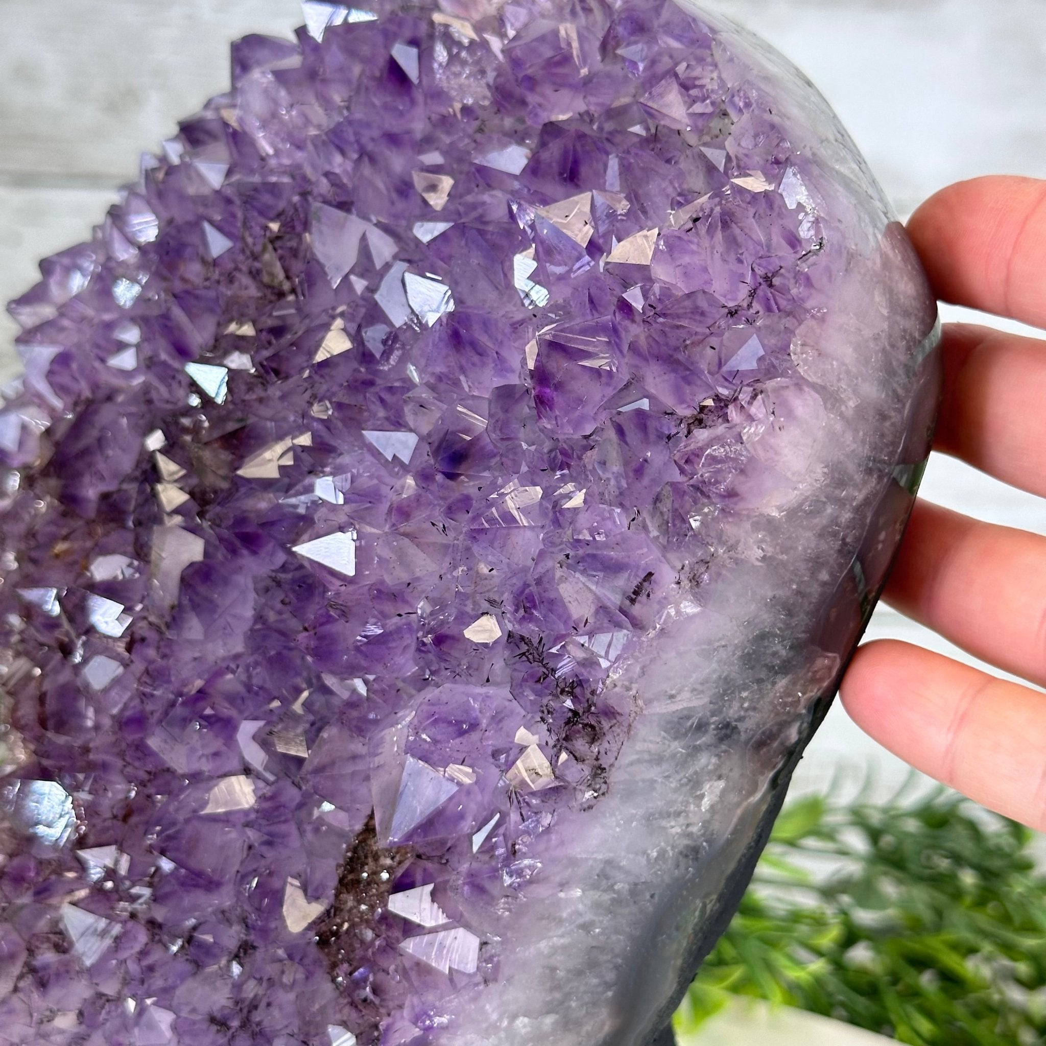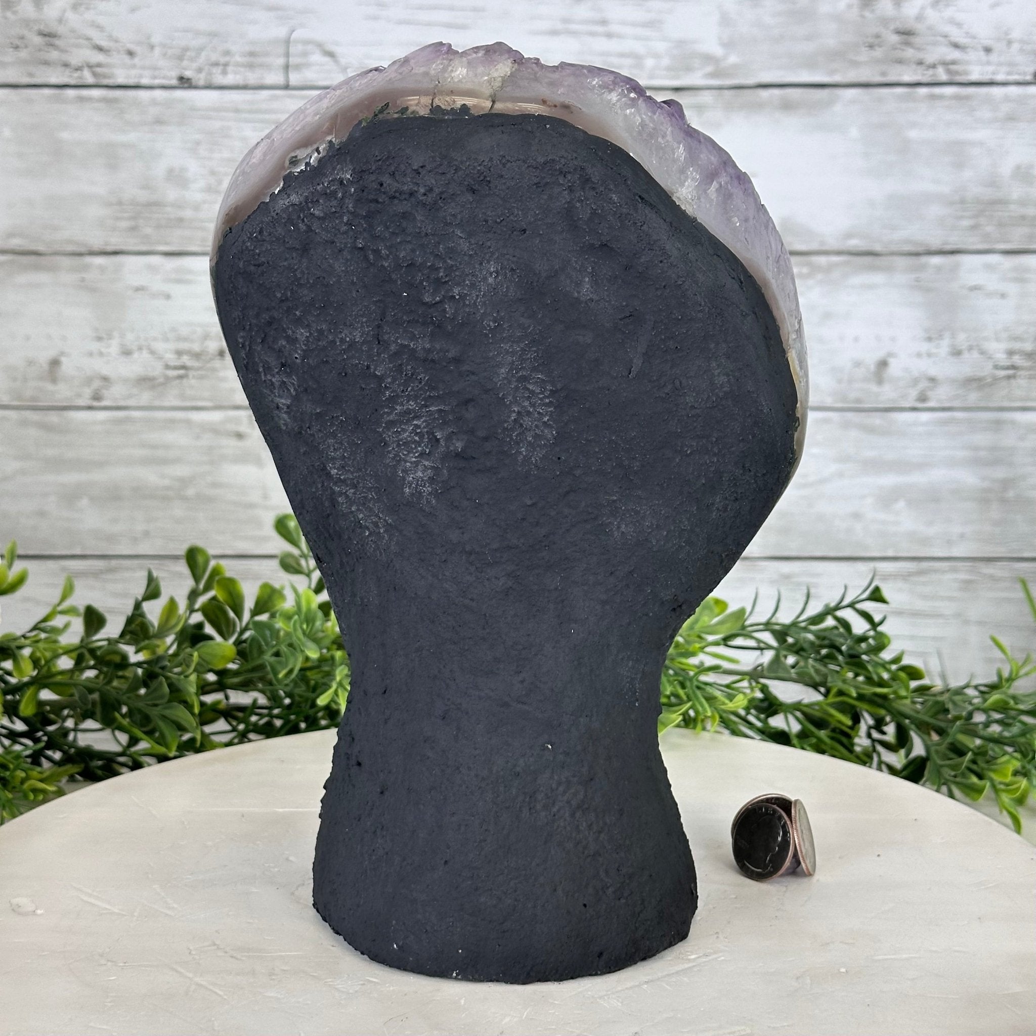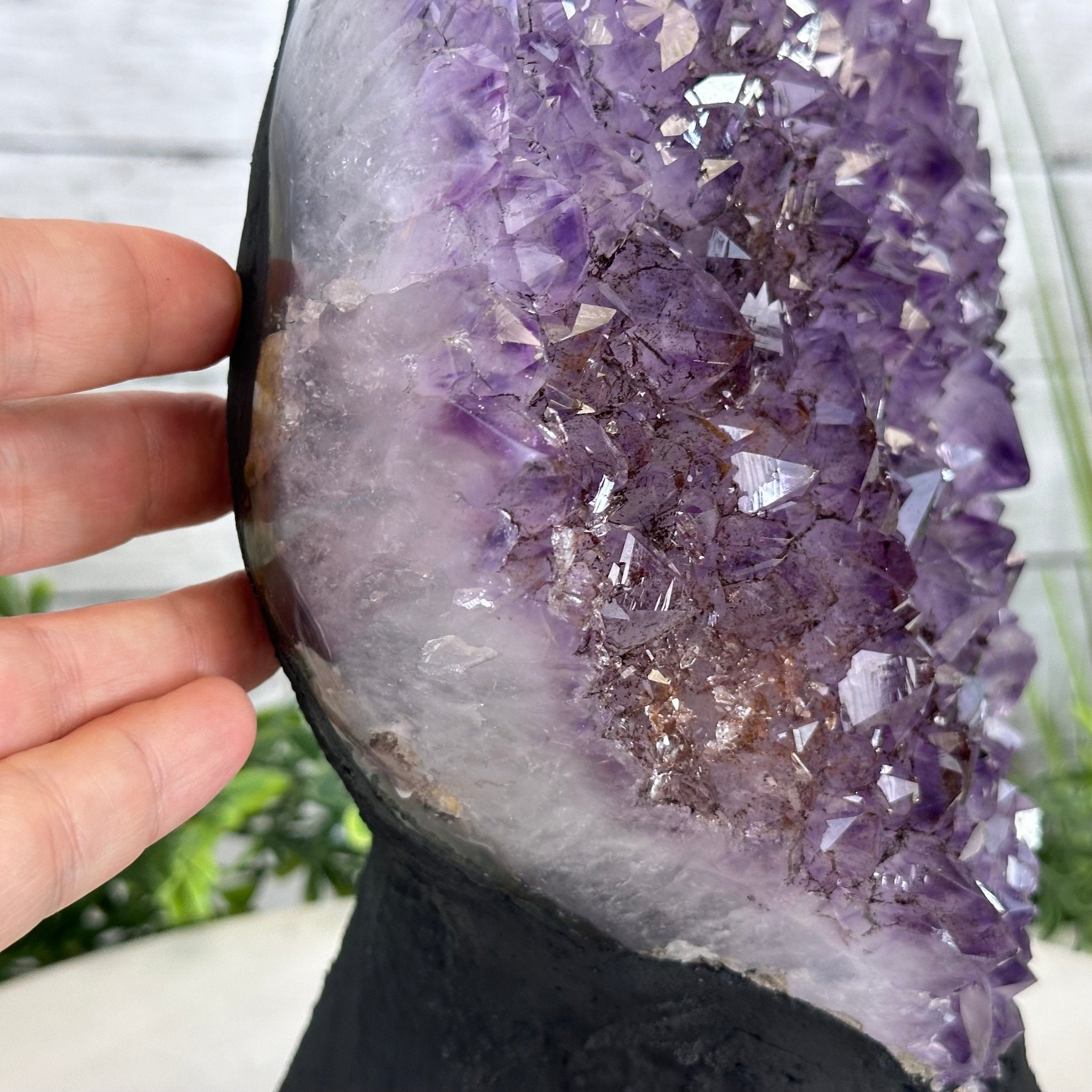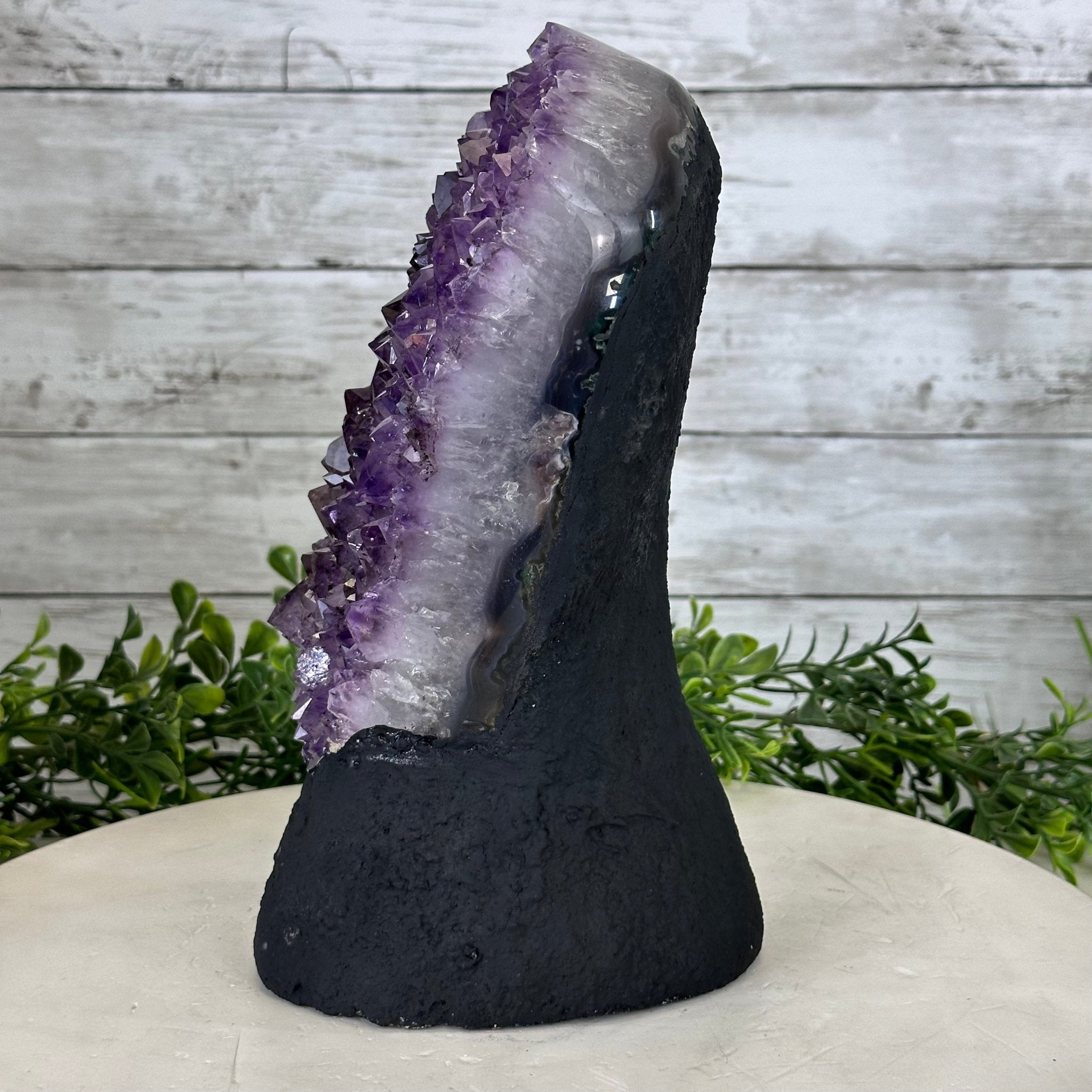 Disclaimer: This is a natural gemstone crystal sold as is and as you see it in its images and video. It is the exact one you will receive. It may contain natural imperfections and/or imperfections, broken edges and repairs from the extraction, polishing and prepping processes. In order for it to stand on its own, the back and bottom have been reinforced with cement then painted black. We take every effort to get measurements as exact as possible but they are done by human hands & eyes and therefore may have minor discrepancies.