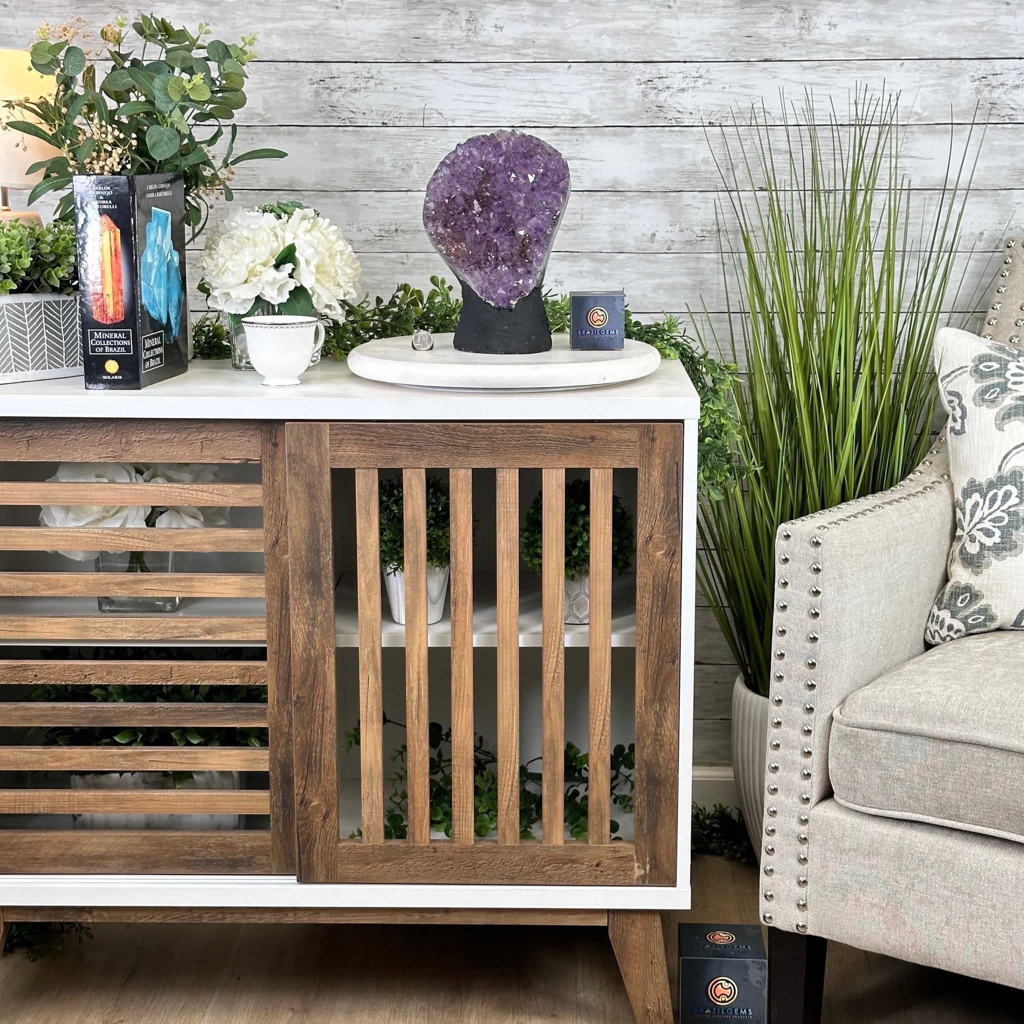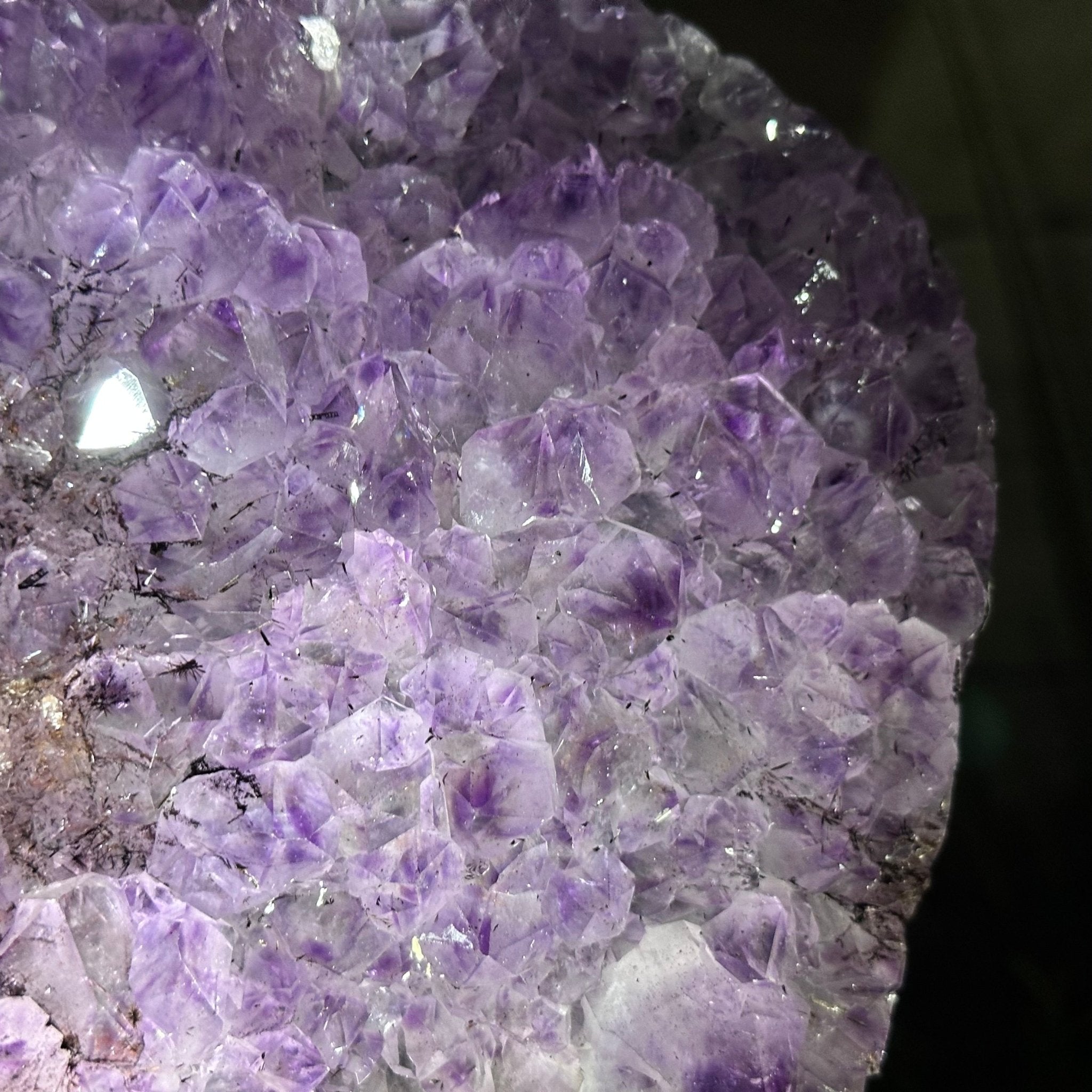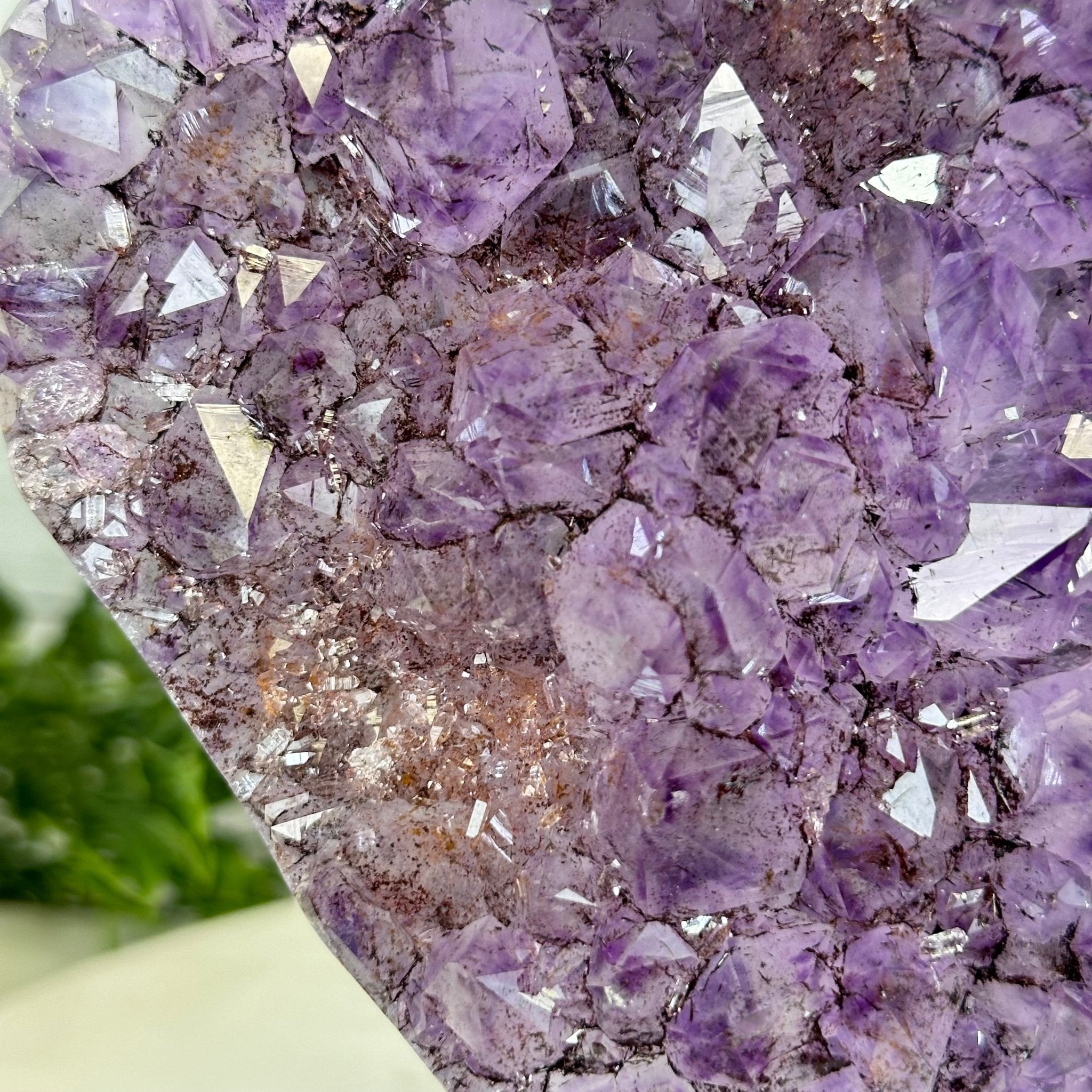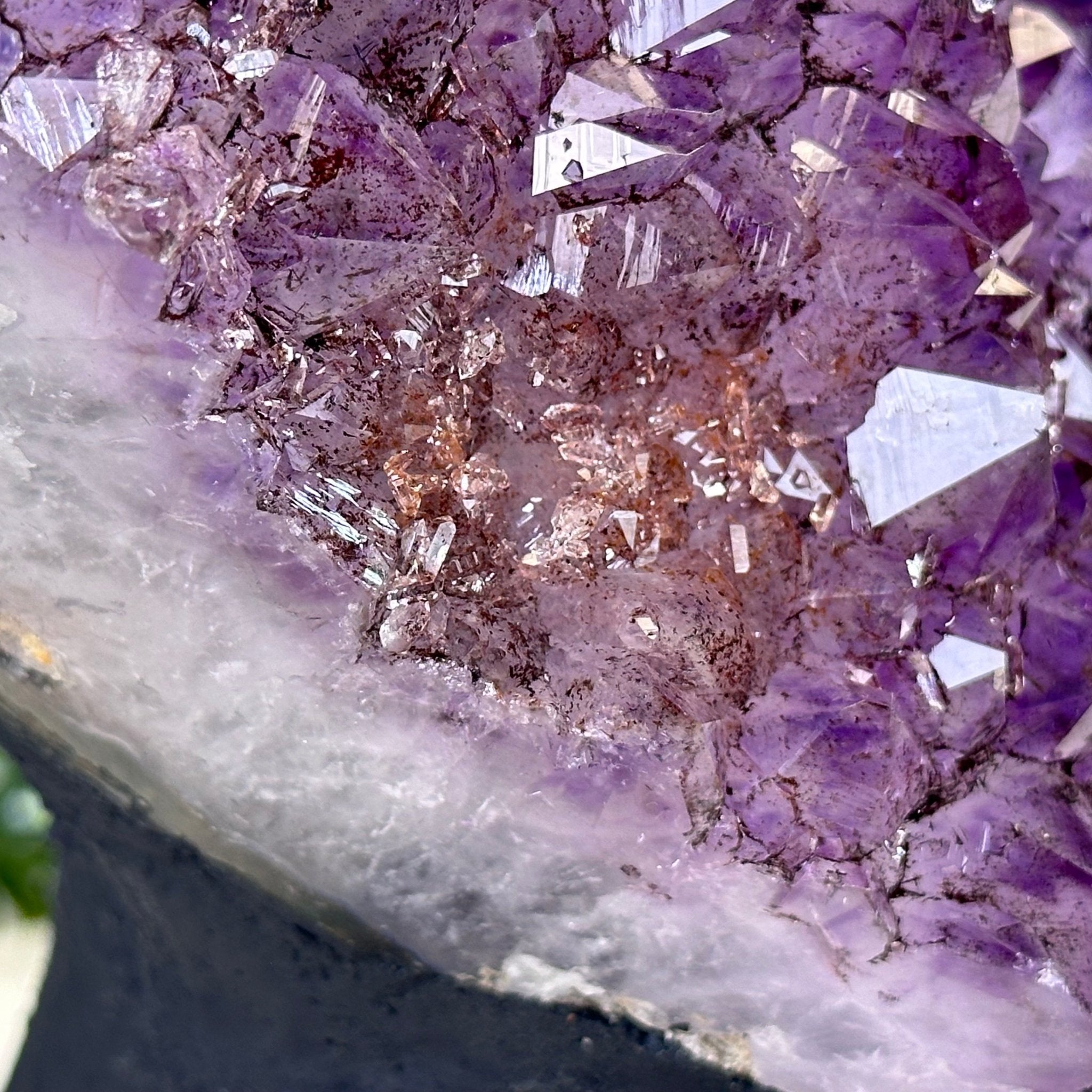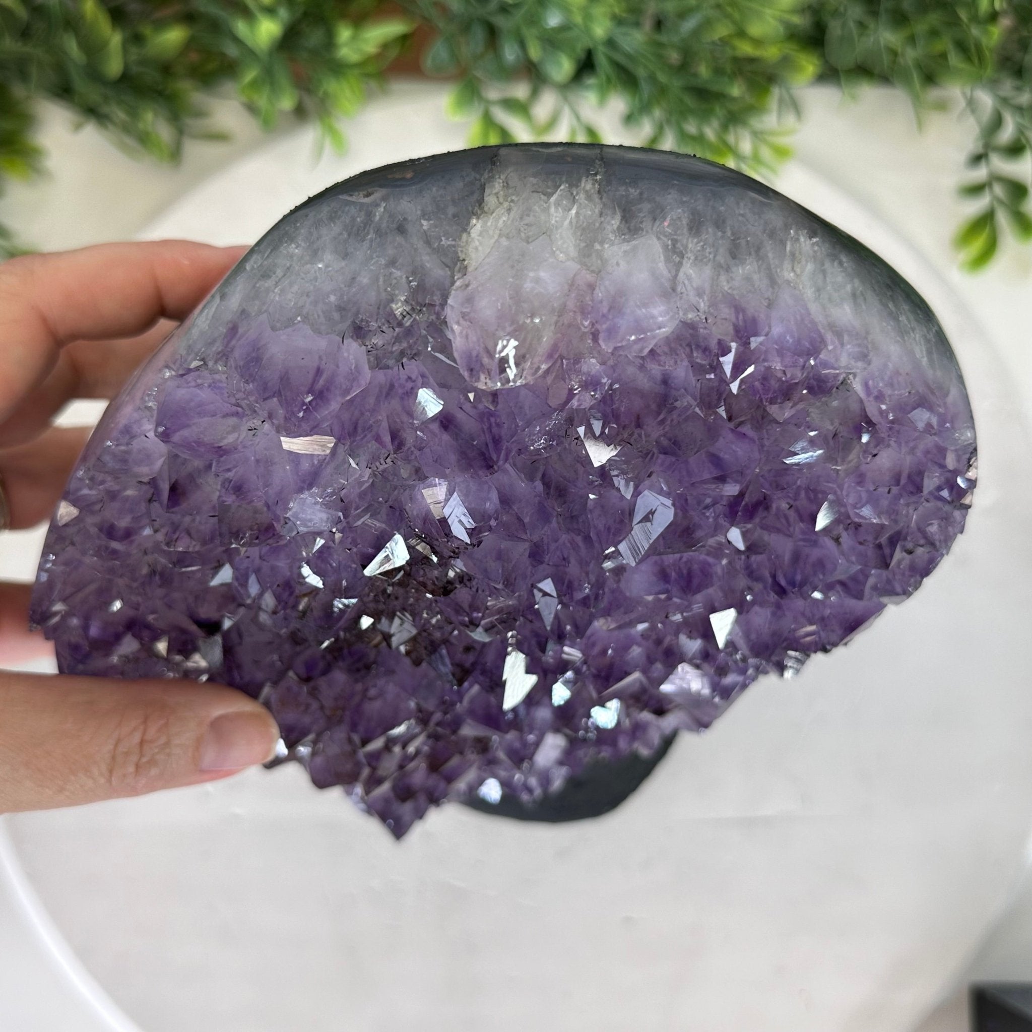 Disclaimer: This is a natural gemstone crystal sold as is and as you see it in its images and video. It is the exact one you will receive. It may contain natural imperfections and/or imperfections, broken edges and repairs from the extraction, polishing and prepping processes. In order for it to stand on its own, the back and bottom have been reinforced with cement then painted black. We take every effort to get measurements as exact as possible but they are done by human hands & eyes and therefore may have minor discrepancies.