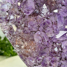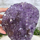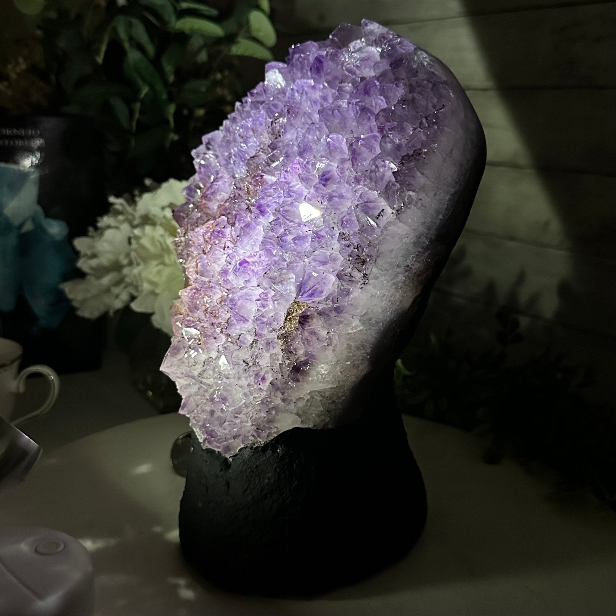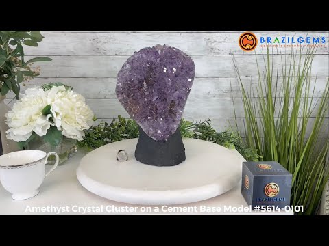 This Extra Quality Amethyst Cluster is 12.3 lbs heavy and 10" tall, and has a concrete base. The cluster has deep violet color crystals and is the perfect size for a desk or shelf. The nicely shaped crystals lend a unique, beautiful look to the product, making it a perfect addition to any home or office space.