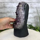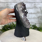 Disclaimer: This is a natural gemstone crystal sold as is and as you see it in its images and video. It is the exact one you will receive. It may contain natural imperfections and/or imperfections, broken edges and repairs from the extraction, polishing and prepping processes. In order for it to stand on its own, the back and bottom have been reinforced with cement then painted black. We take every effort to get measurements as exact as possible but they are done by human hands & eyes and therefore may have minor discrepancies.
