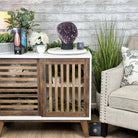 The formation of amethyst is a story of icy beauty crystallizing from a legacy of fire. Basaltic lava can cool with porous cavities that can be 15-feet long. As silica-rich waters run through these cavities, traces of silica leave the seeds of crystalline growth. The water’s iron content gives amethyst its signature purple color. Placement of amethyst in your environment is an invitation to let healing energy and the timelessness of the Earth take your journey to a higher plane. Protect your amethyst stones from direct sunlight to preserve their vibrancy.