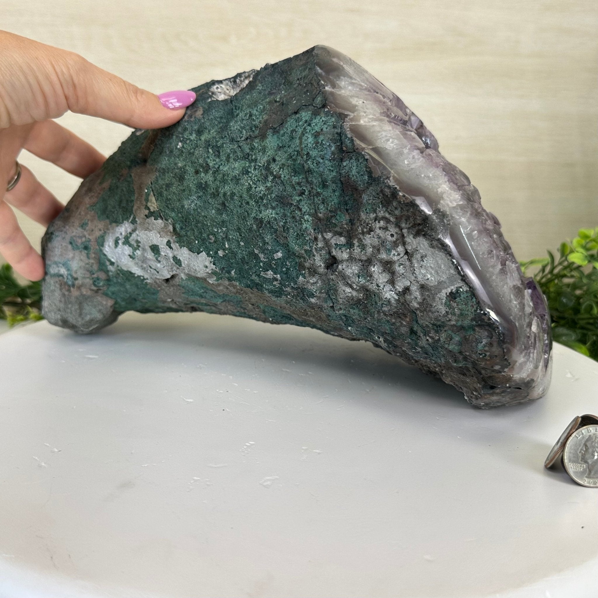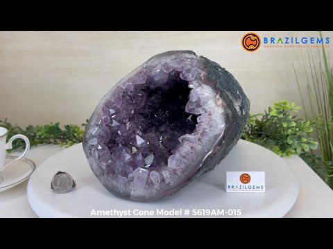 Bring natural elegance and powerful energy into your space with this Extra Quality Brazilian Amethyst Cone, cut from the top of a Brazilian amethyst geode. Also known as an Amethyst Geode Cap, this piece showcases richly colored violet crystal points and a rugged, natural outer shell that adds striking contrast and organic beauty.