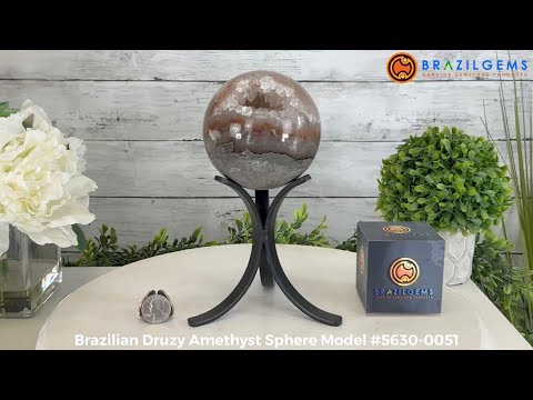 Brazil Gems® brings you this Brazilian Druzy Amethyst Sphere on a black metal stand. Beautifully crafted from a larger geode, this polished piece will become a conversation starter every single time.