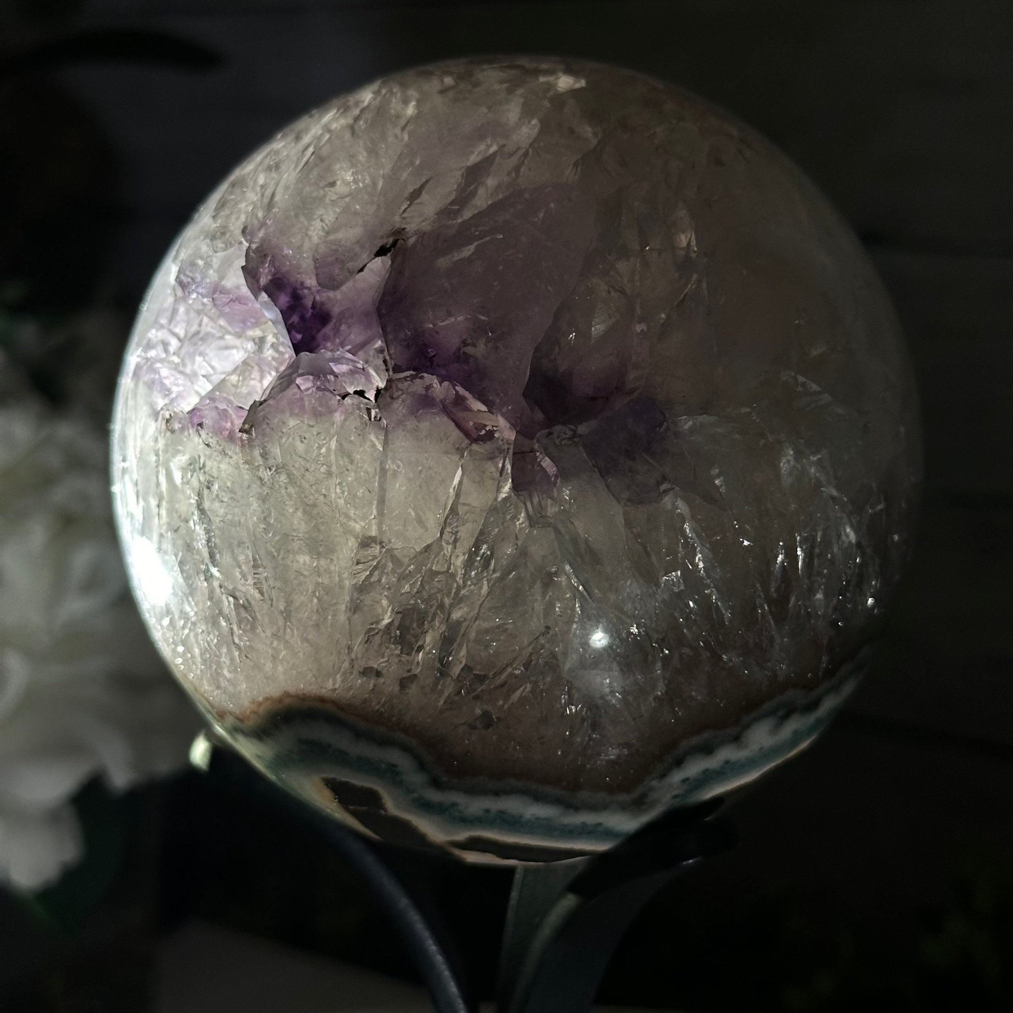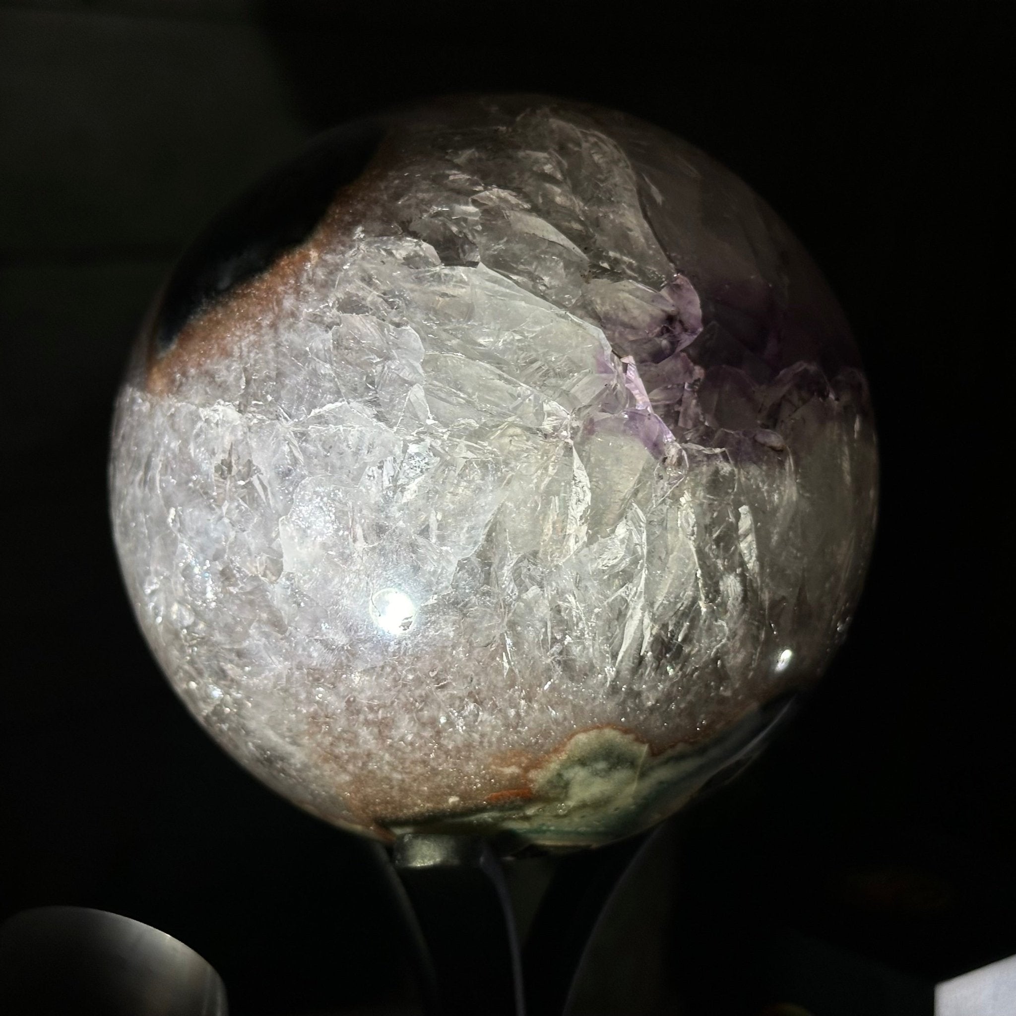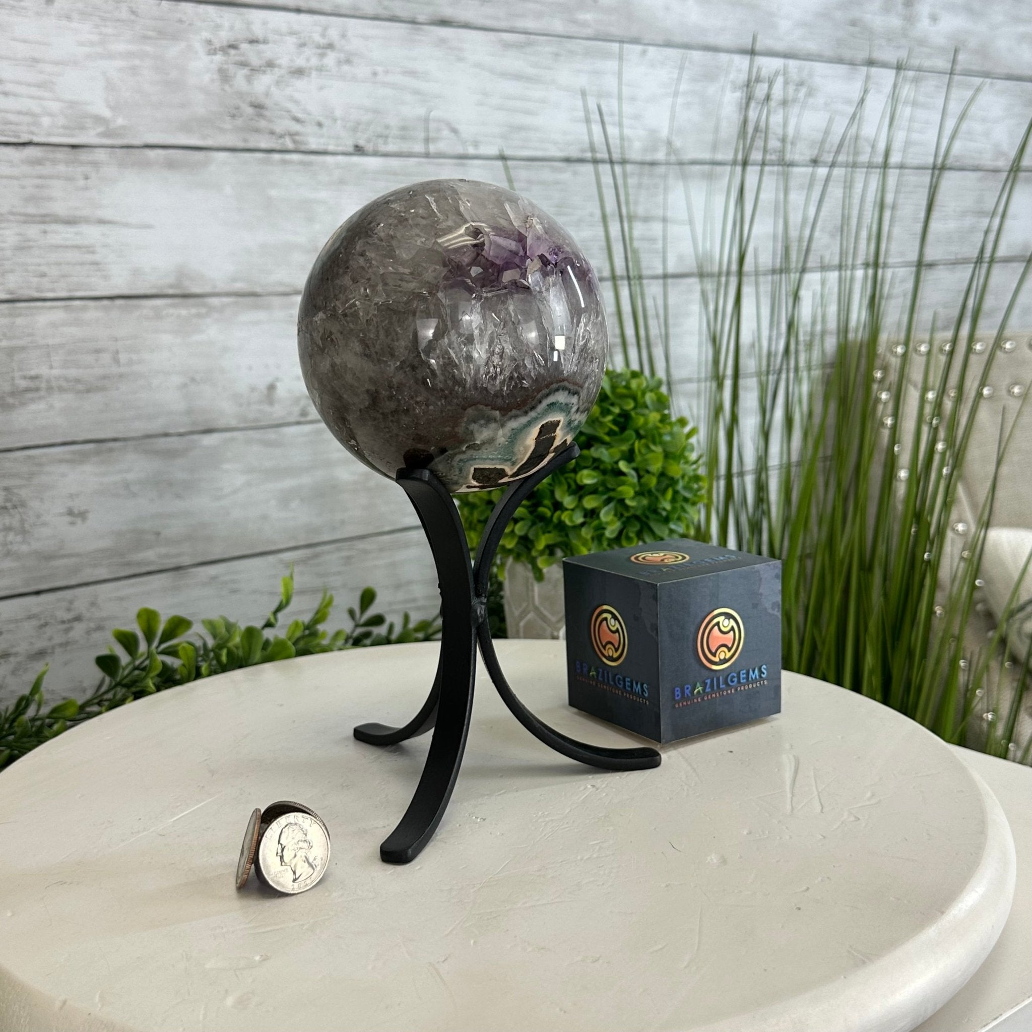 Druzy Amethyst Sphere on a Metal Stand, 3.8 lbs & 8.7" Tall #5630-0058