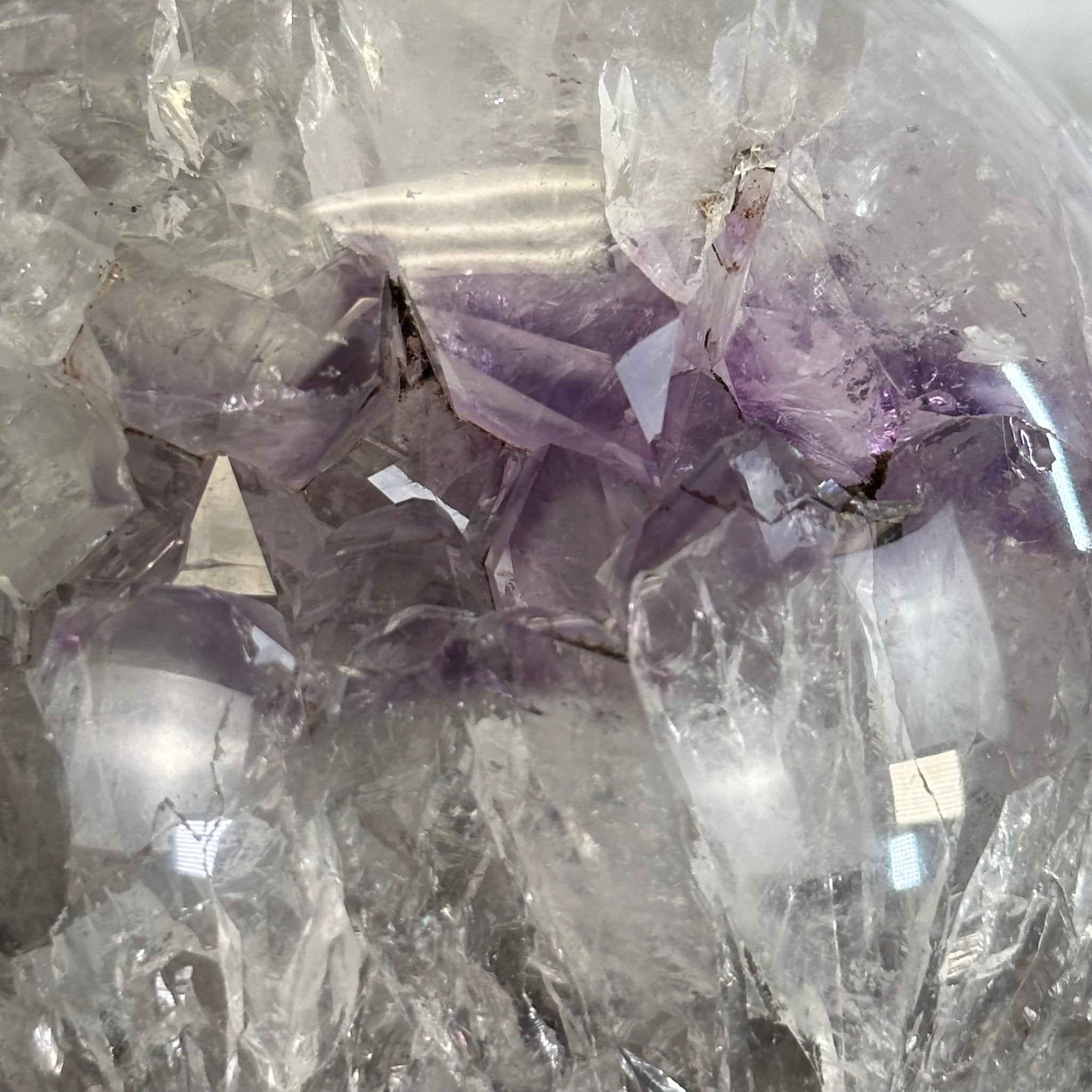 Brazil Gems® brings you this Brazilian Druzy Amethyst Sphere on a black metal stand. Beautifully crafted from a larger geode, this polished piece will become a conversation starter every single time.