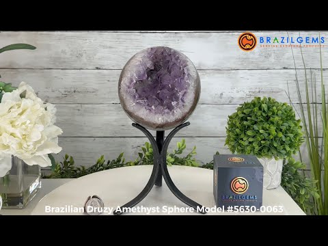Brazil Gems® brings you this Brazilian Druzy Amethyst Sphere on a black metal stand. Beautifully crafted from a larger geode, this polished piece will become a conversation starter every single time.