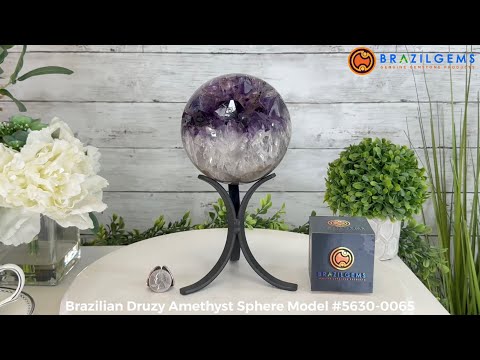 Brazil Gems® brings you this Extra Plus Quality Brazilian Druzy Amethyst Sphere on a black metal stand. Beautifully crafted from a larger geode, this polished piece will become a conversation starter every single time.