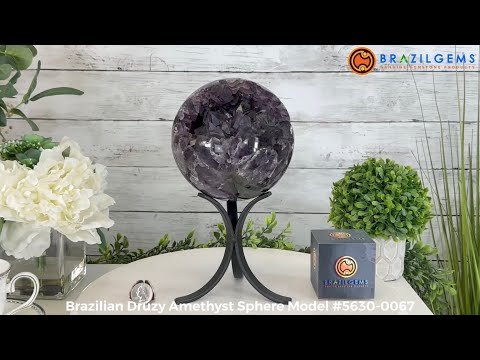 Brazil Gems® brings you this Extra Plus Quality Brazilian Druzy Amethyst Sphere on a black metal stand. Beautifully crafted from a larger geode, this polished piece will become a conversation starter every single time.
