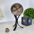 Super Quality Smoky Quartz Sphere on a Metal Stand, 2.2 lbs & 7.4" Tall #5636-0007