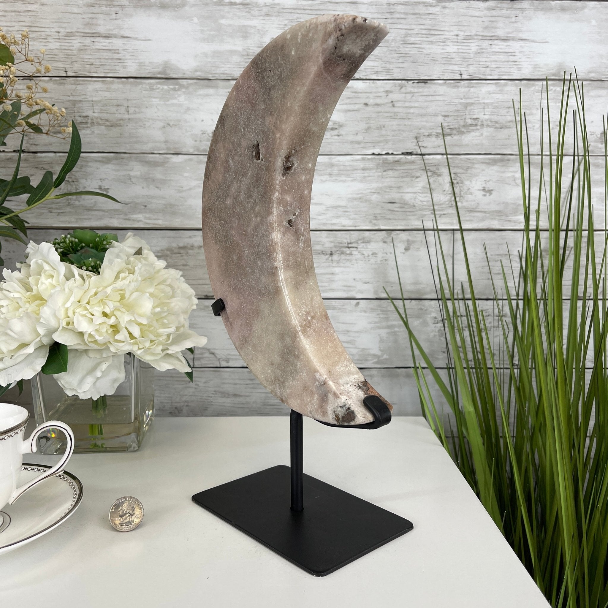 Artisans in South Brazil mastered the technique to make crescent moon shaped gemstones, a very labor-intensive task that requires a lot of skill and precision. The result is a beautiful piece that will certainly look great in your home or office or make a long lasting gift to a loved one.