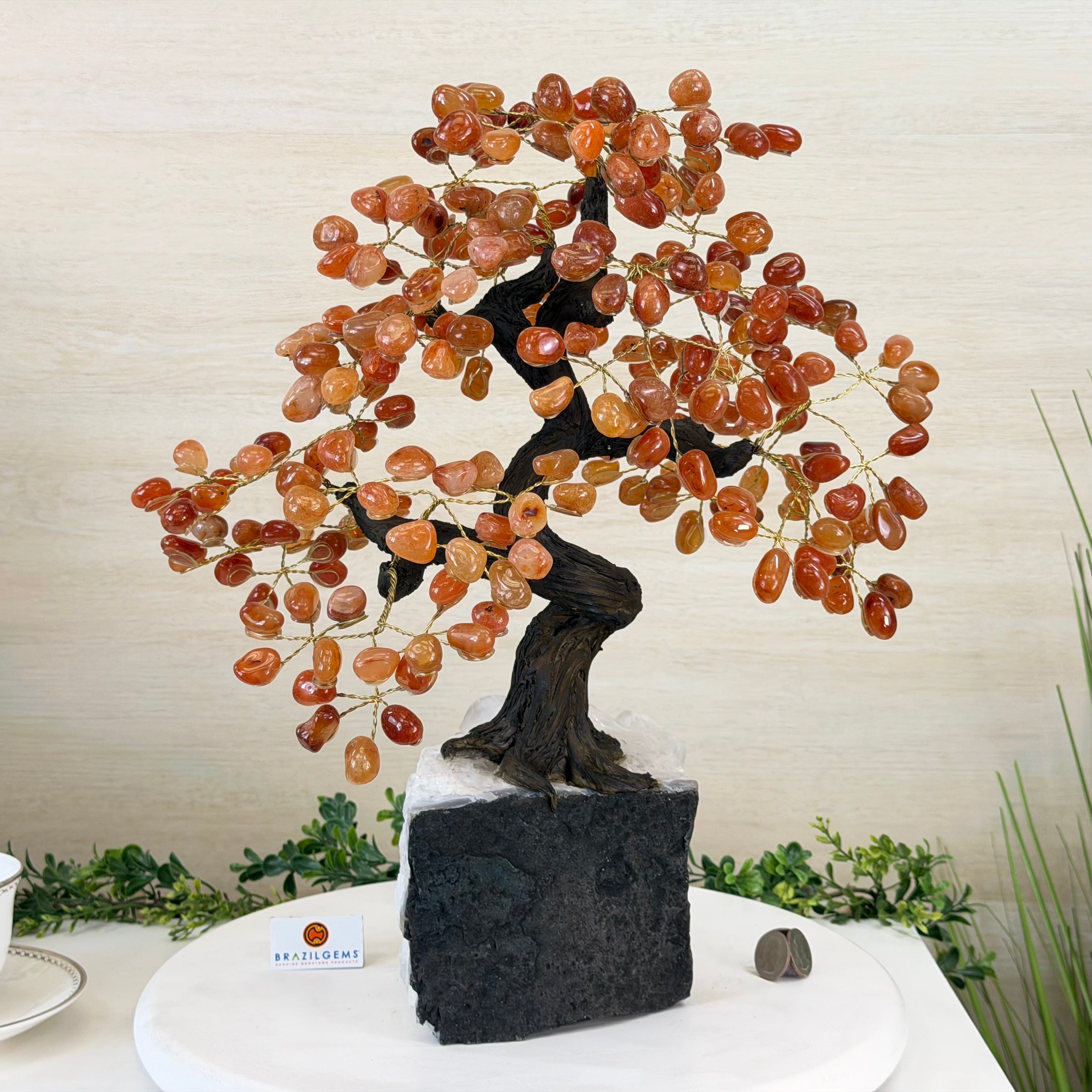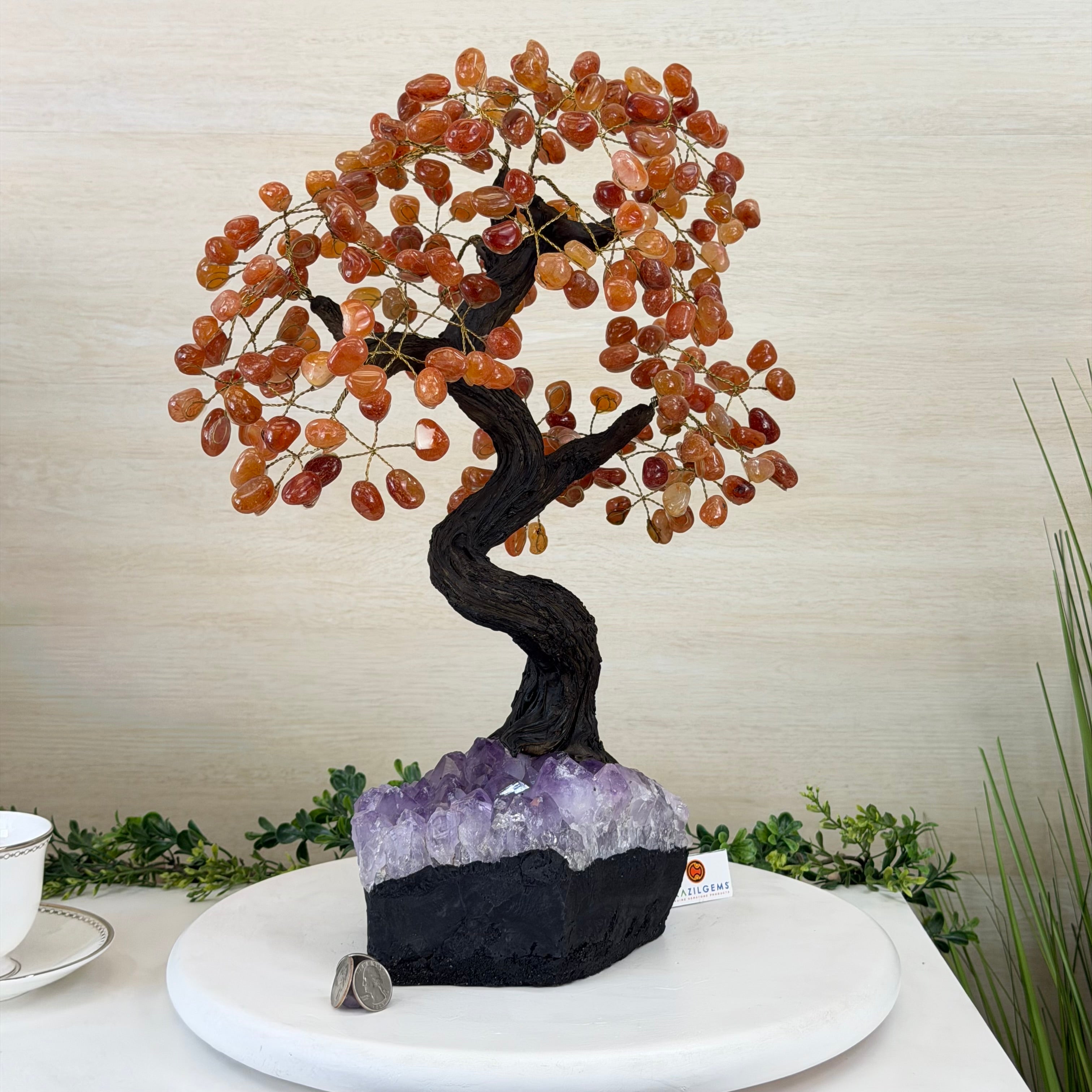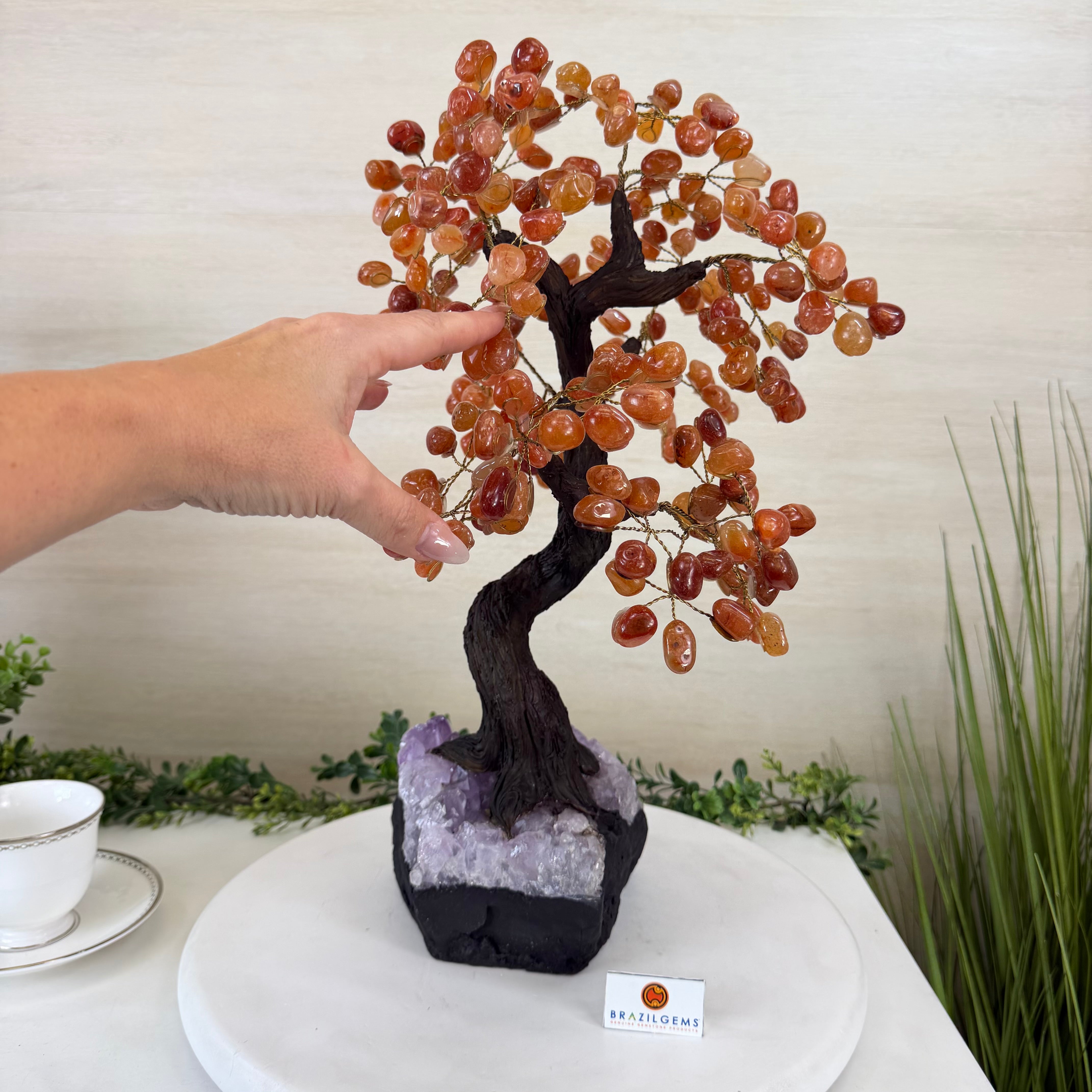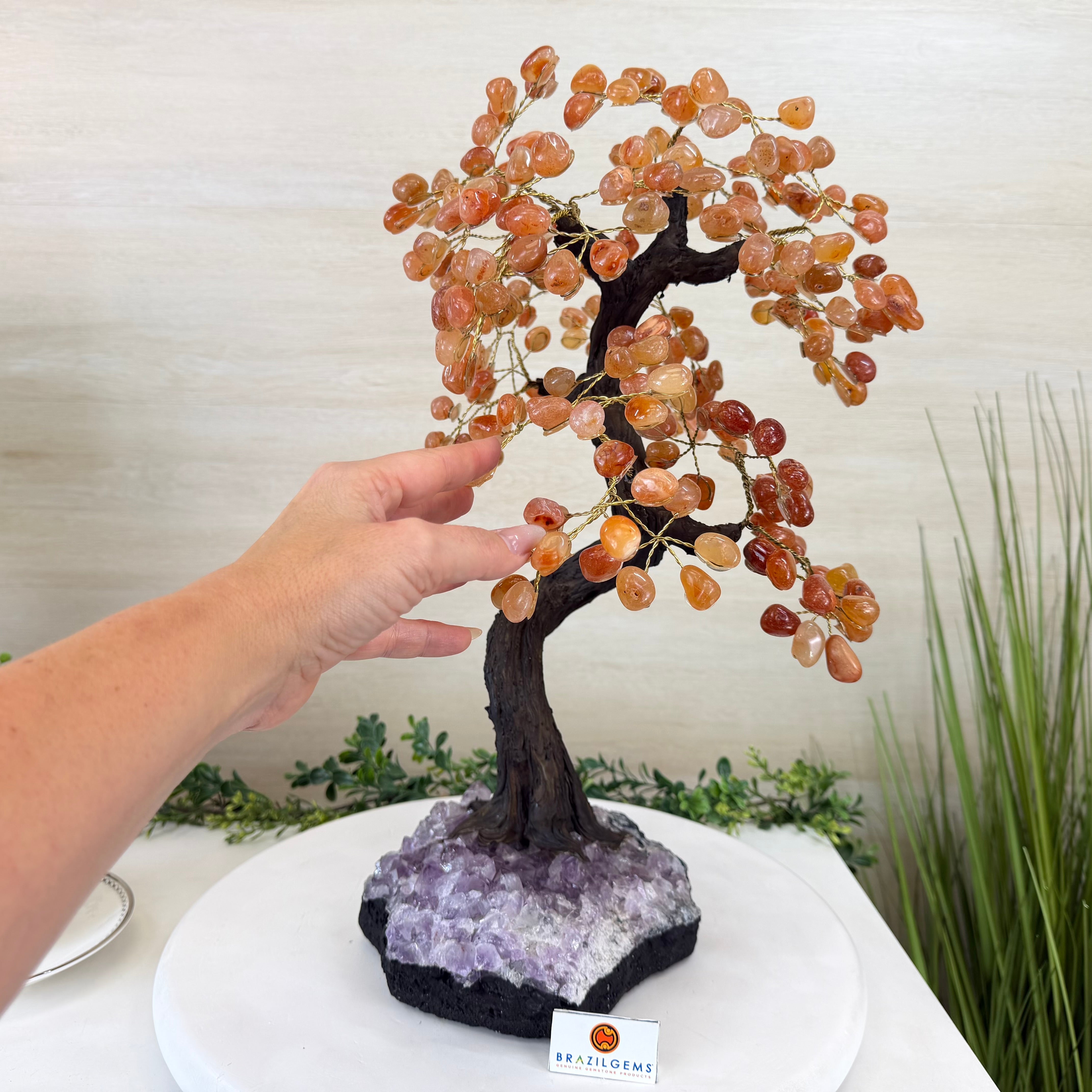 Introducing our magnificent Handmade Carnelian Gemstone Trees. They are a stunning testament to the natural beauty and artistic craftsmanship that defines Brazil Gems®.