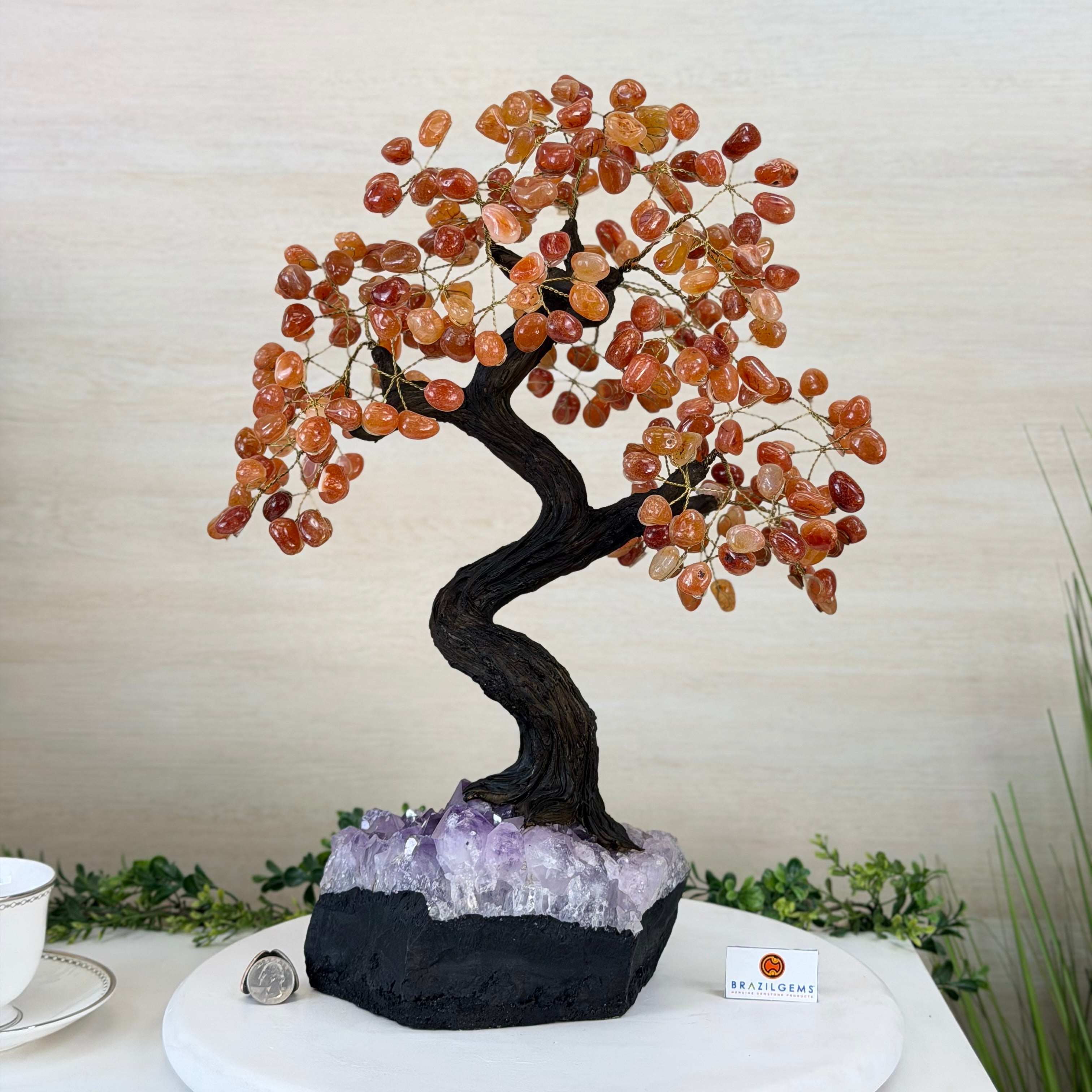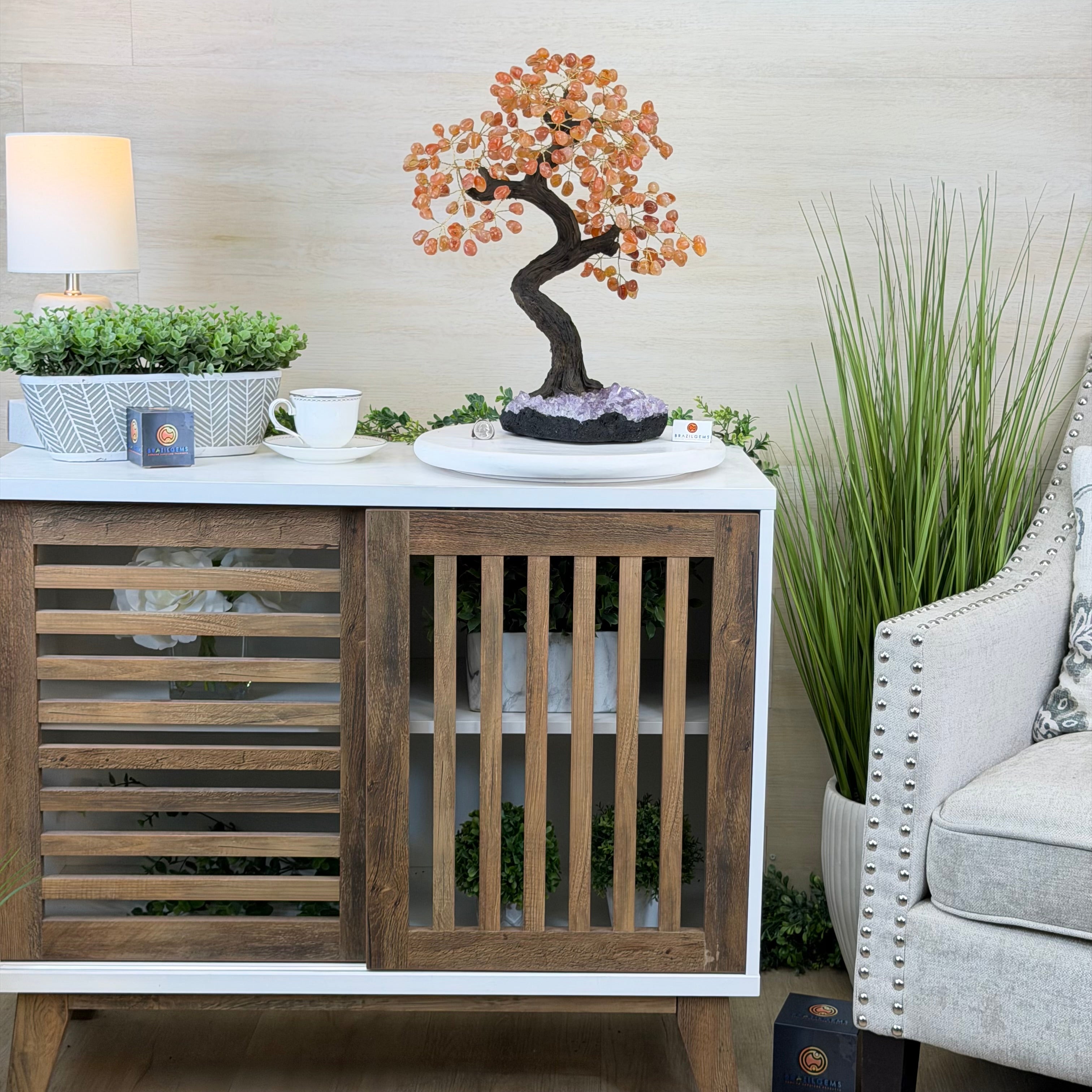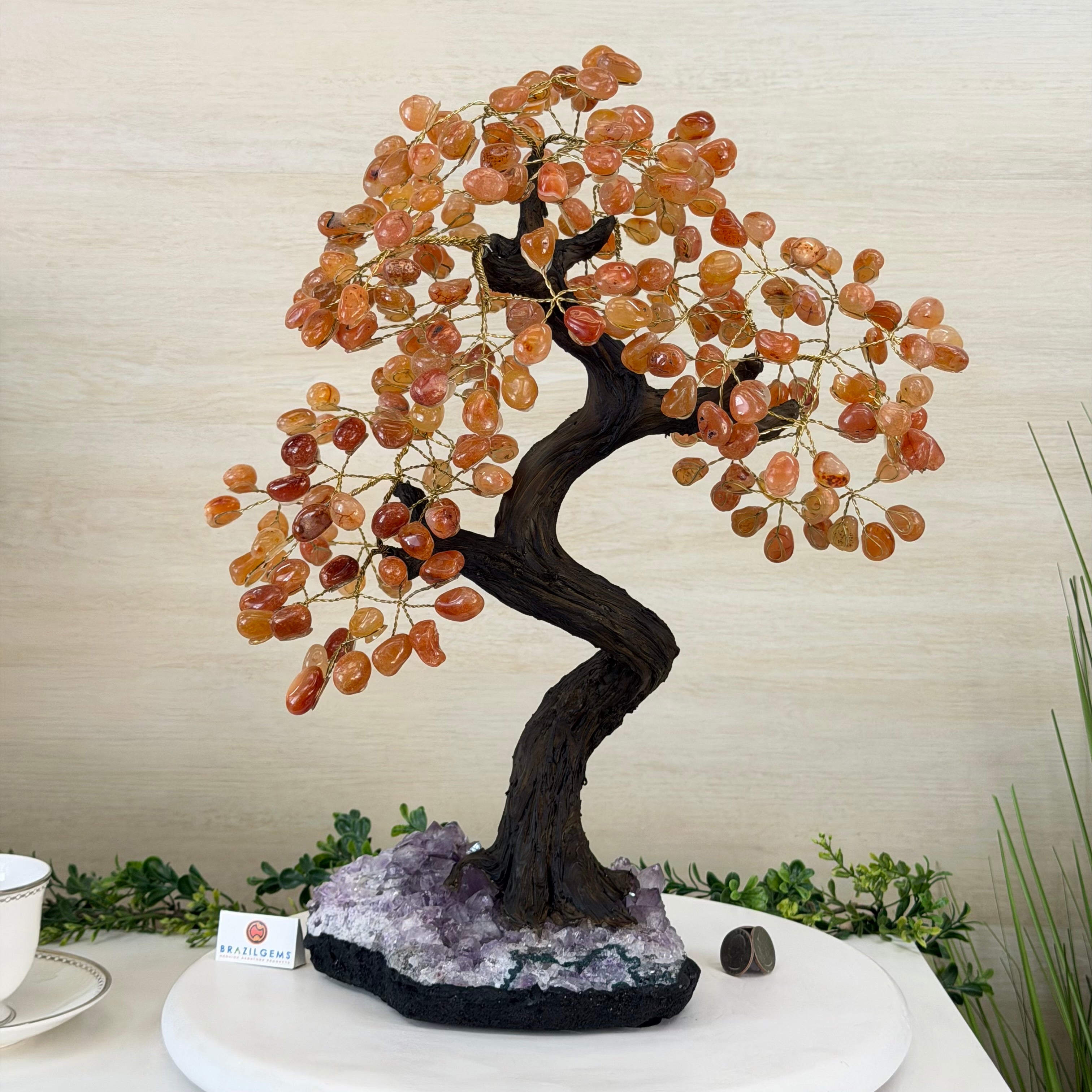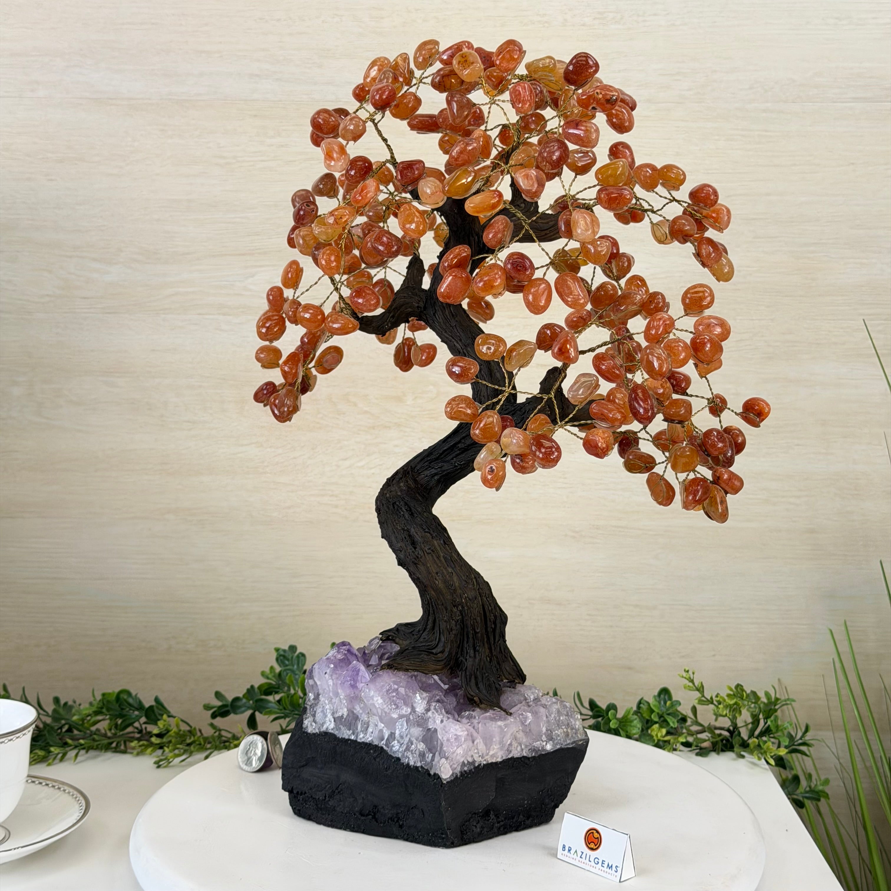 Introducing our magnificent Handmade Carnelian Gemstone Trees. They are a stunning testament to the natural beauty and artistic craftsmanship that defines Brazil Gems®.