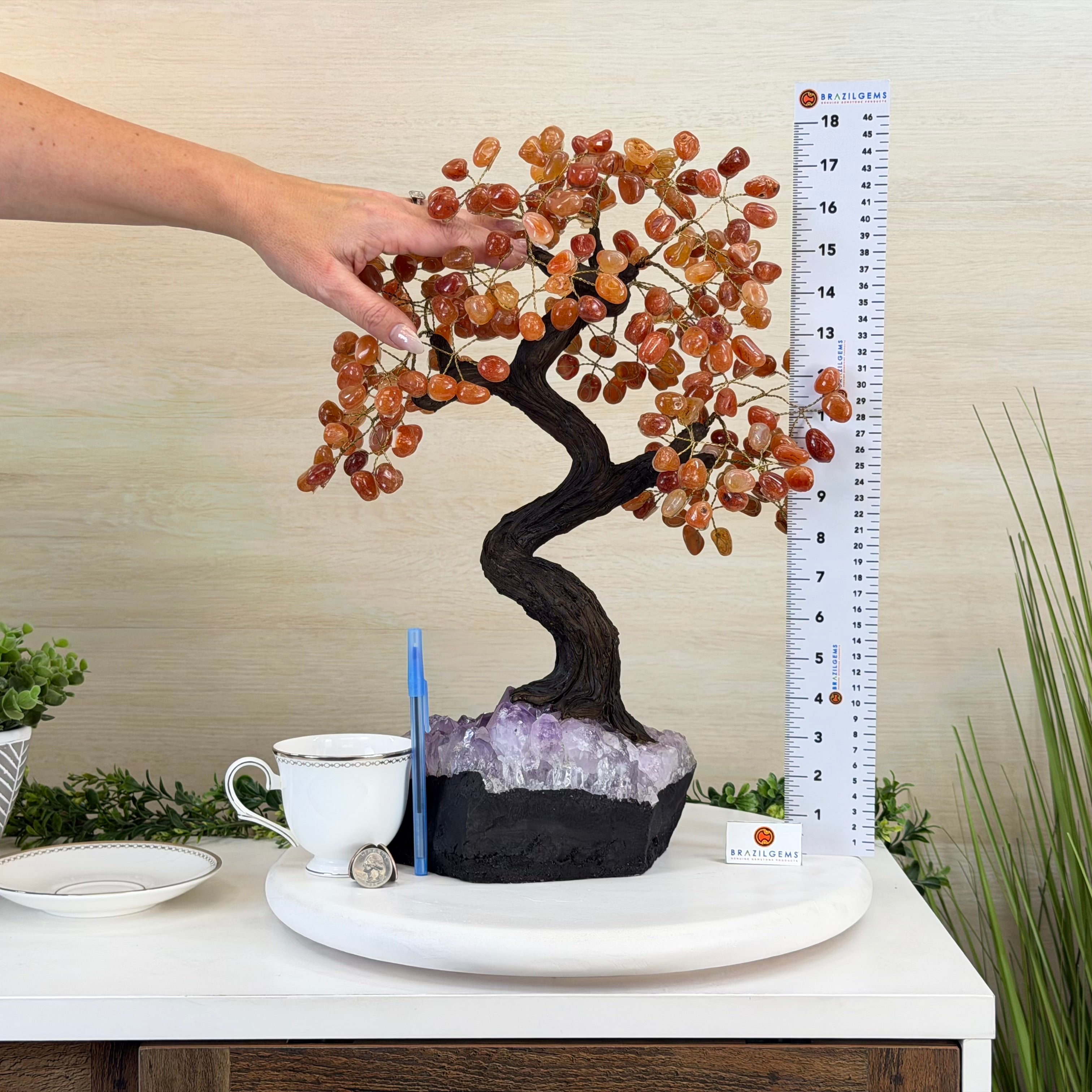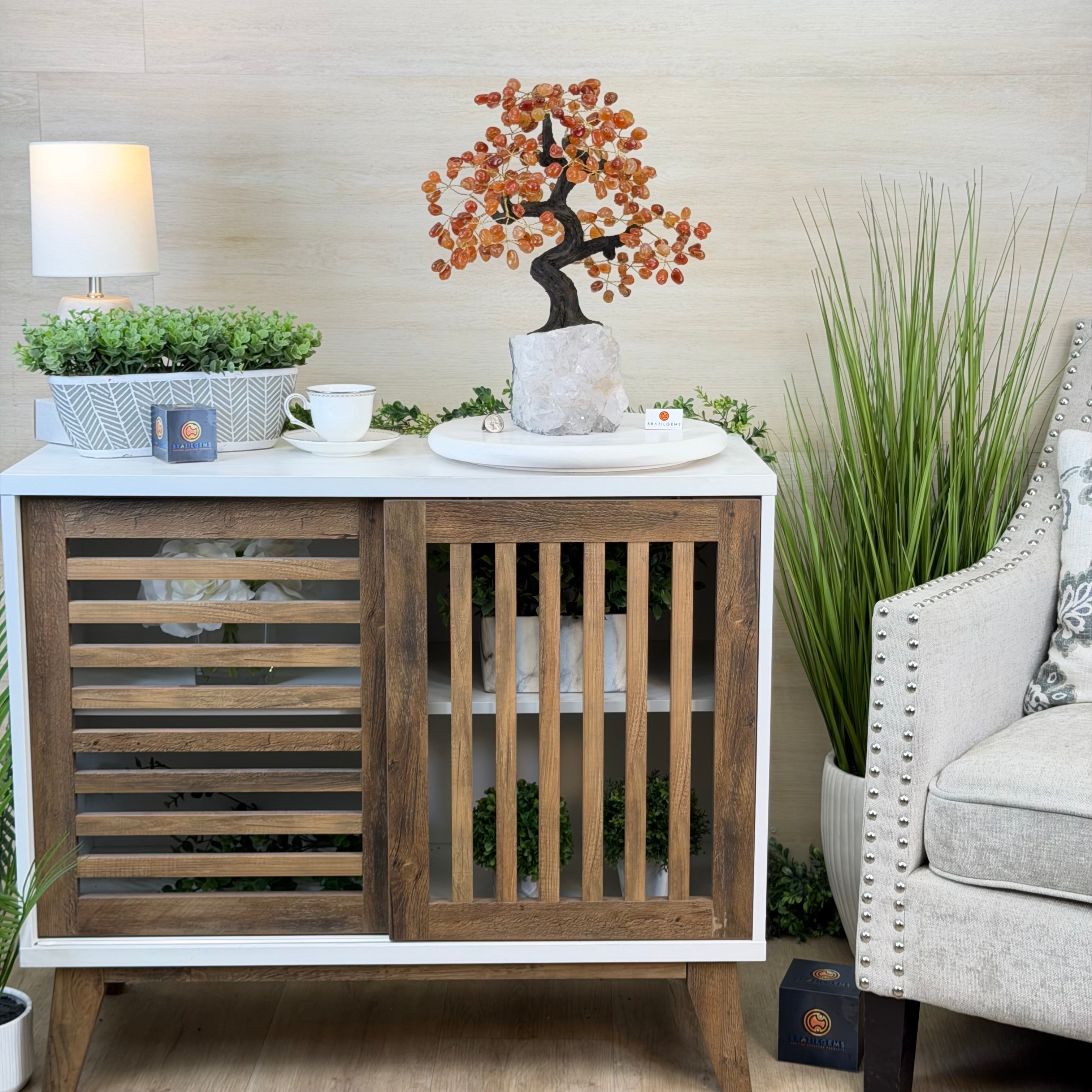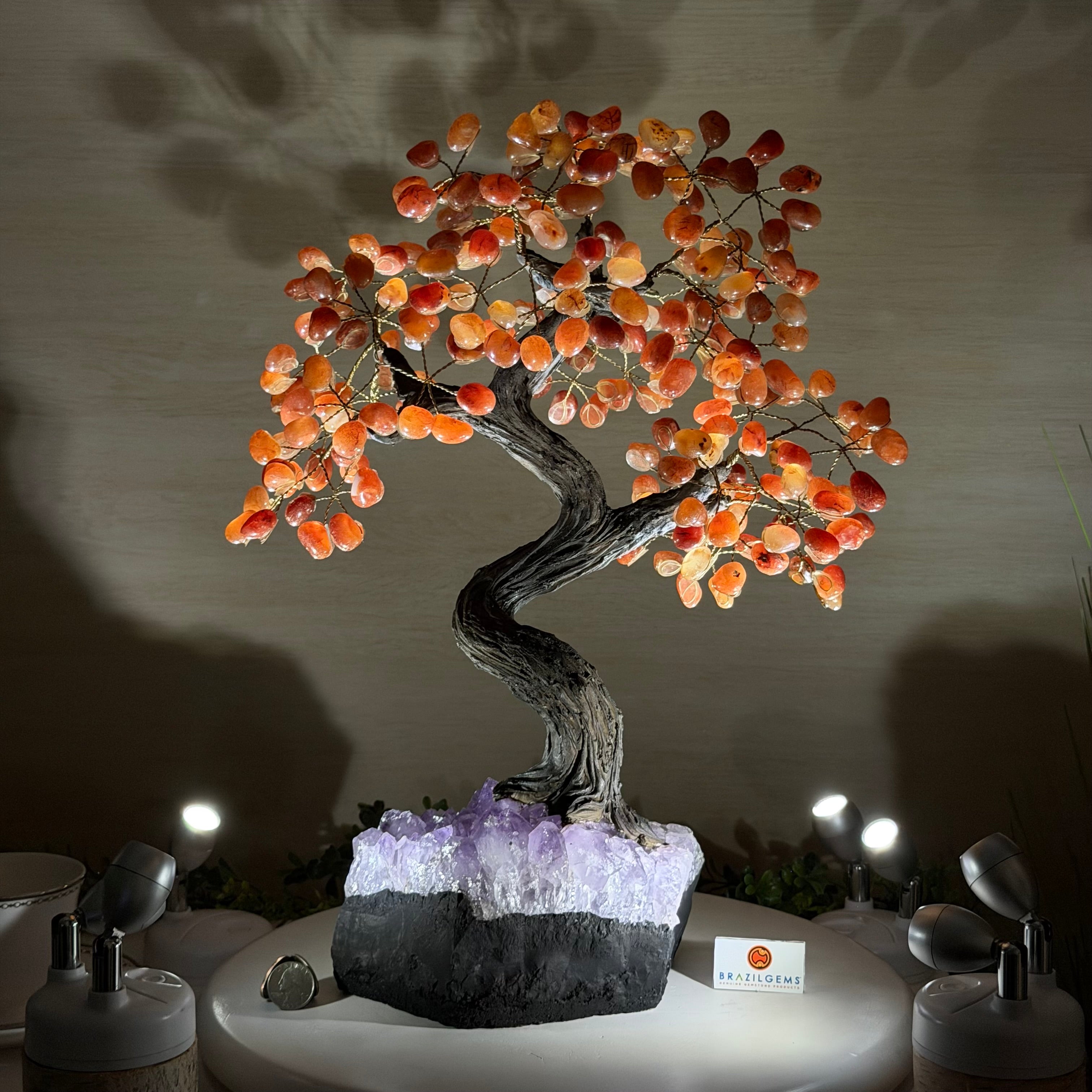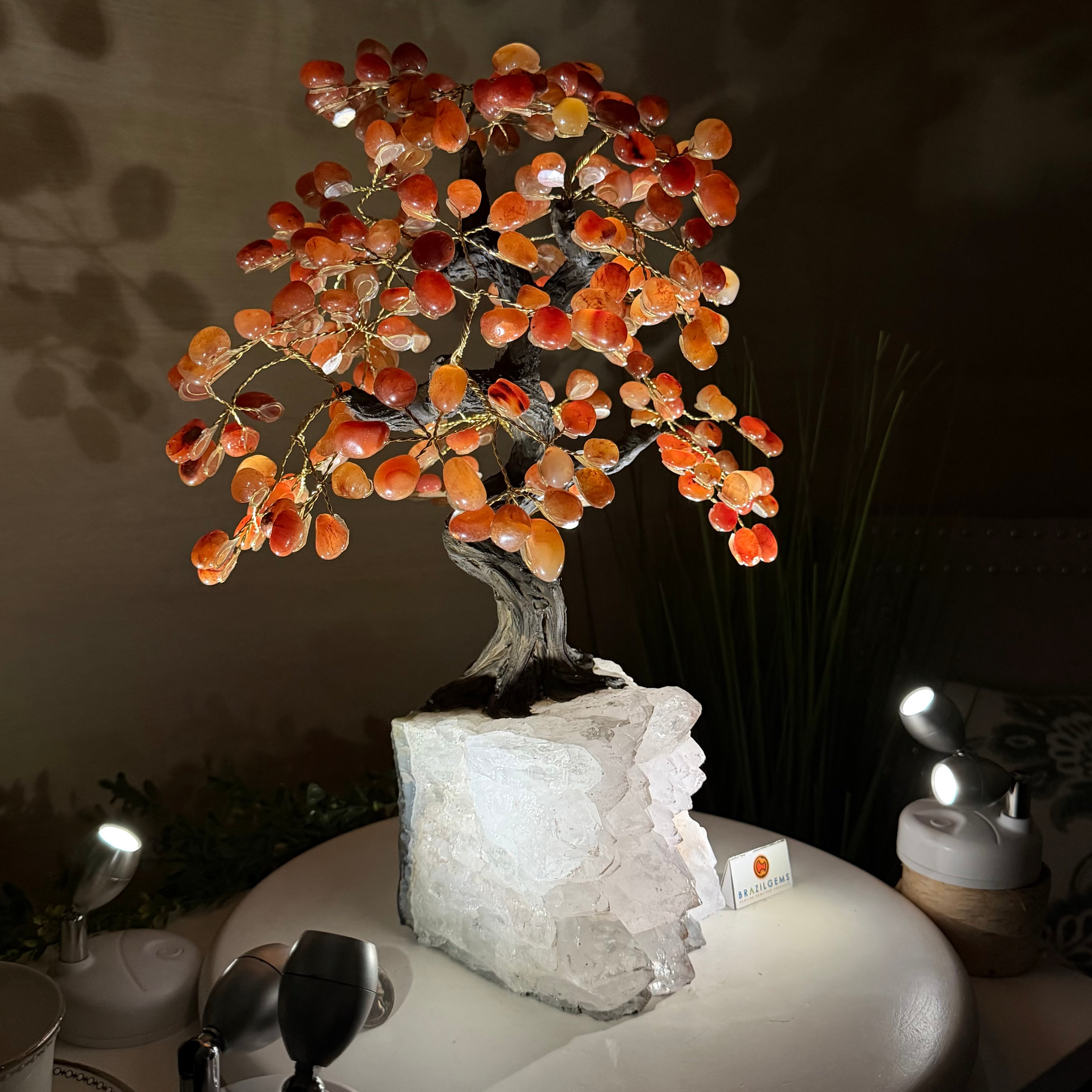 Introducing our magnificent Handmade Carnelian Gemstone Trees. They are a stunning testament to the natural beauty and artistic craftsmanship that defines Brazil Gems®.