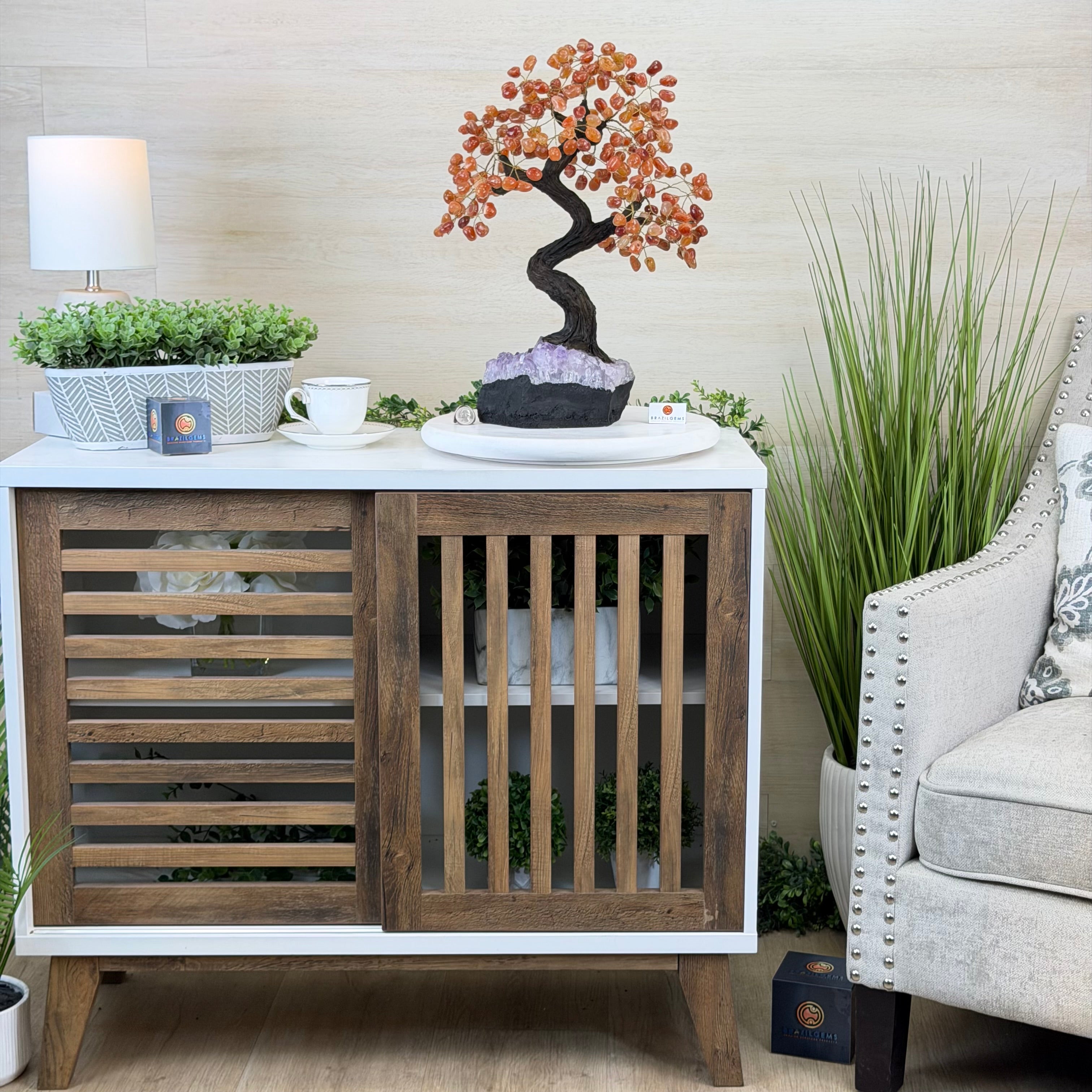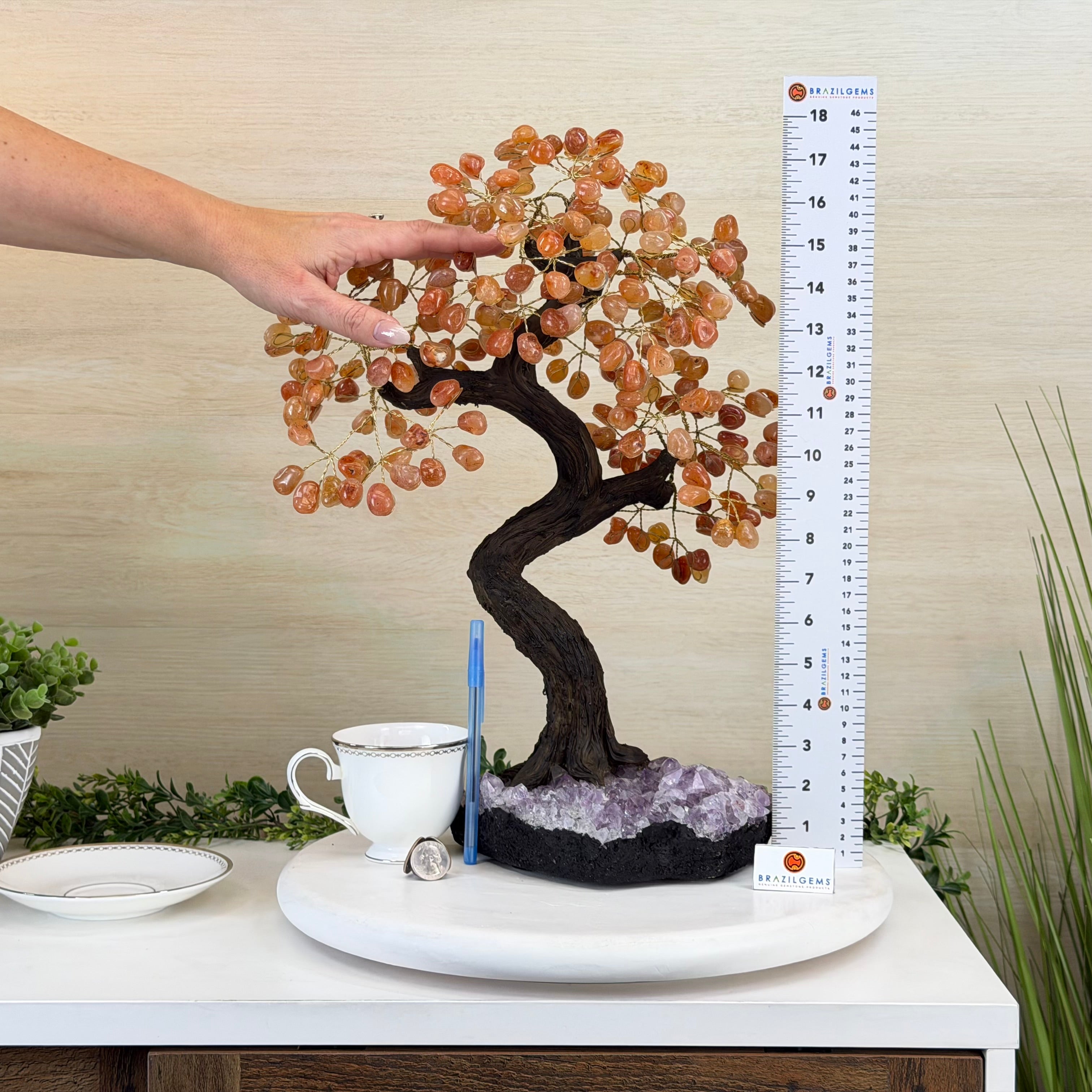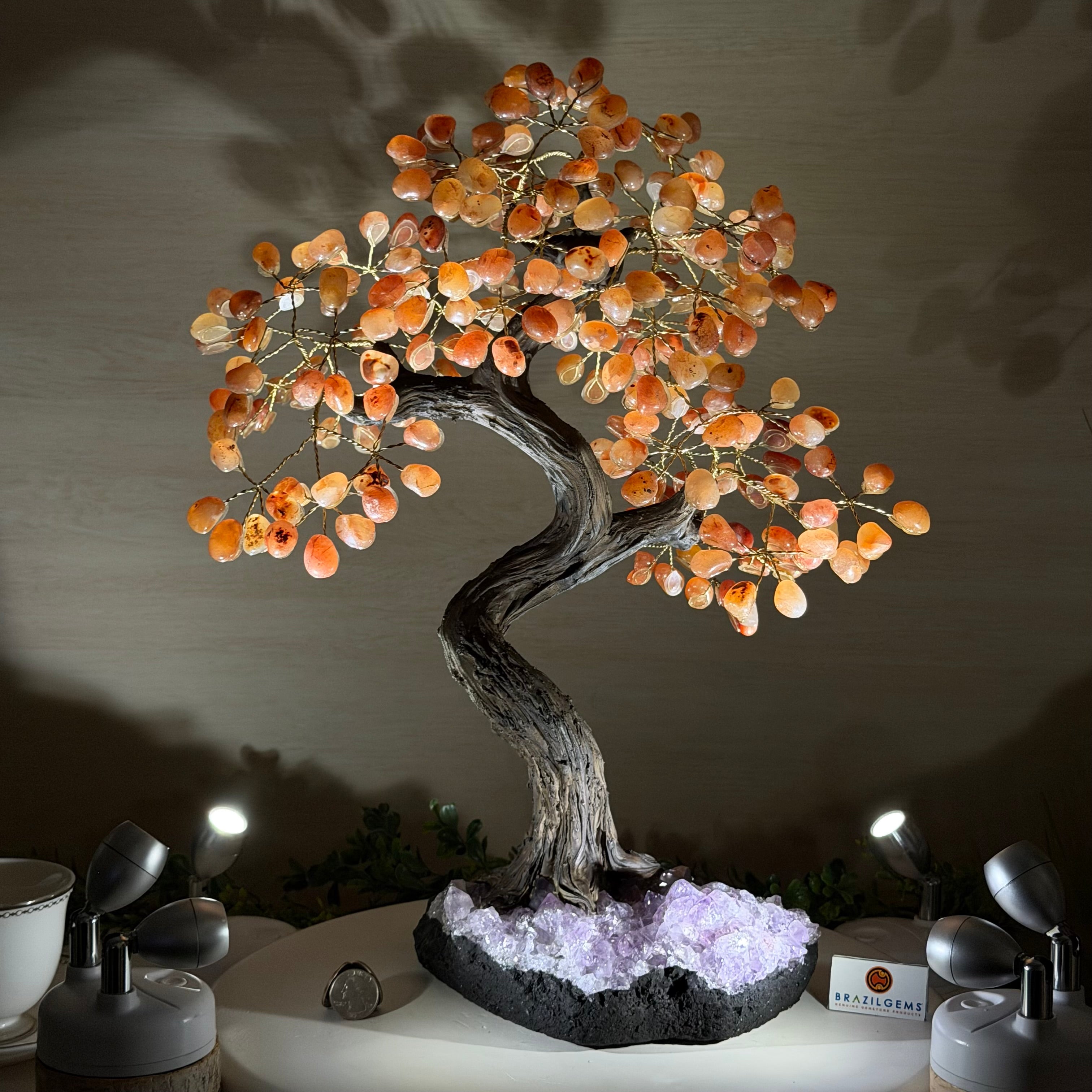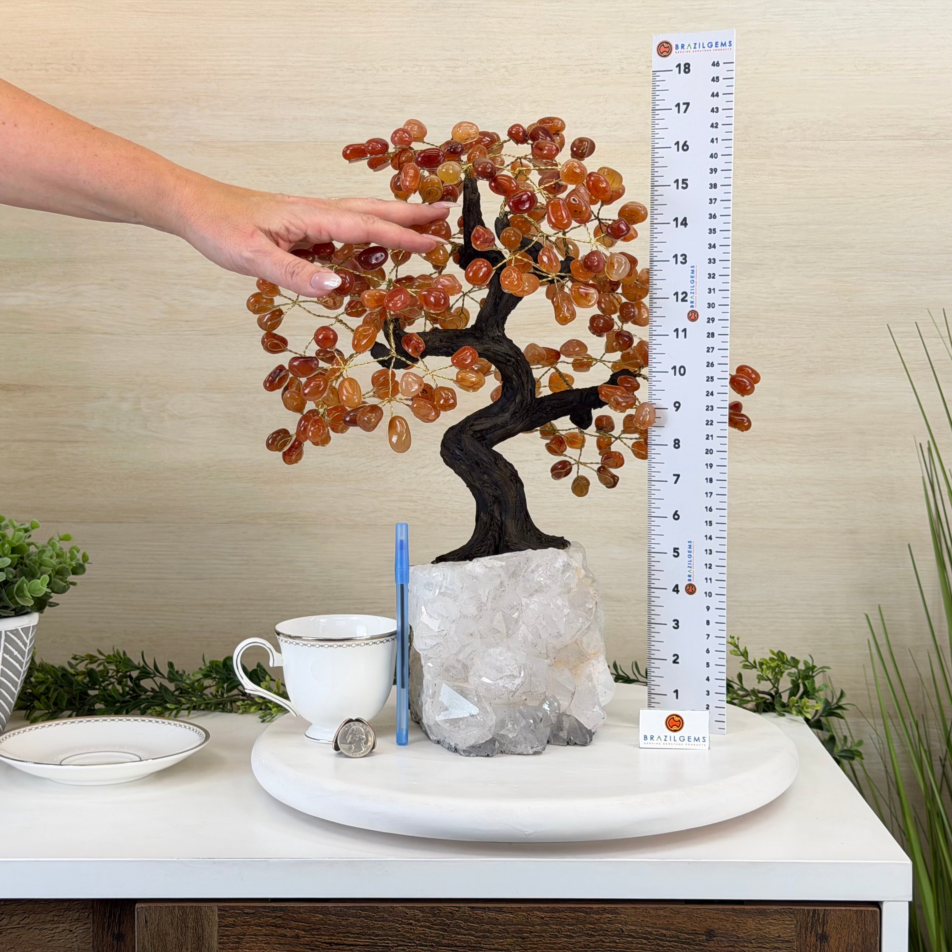 Introducing our magnificent Handmade Carnelian Gemstone Trees. They are a stunning testament to the natural beauty and artistic craftsmanship that defines Brazil Gems®.