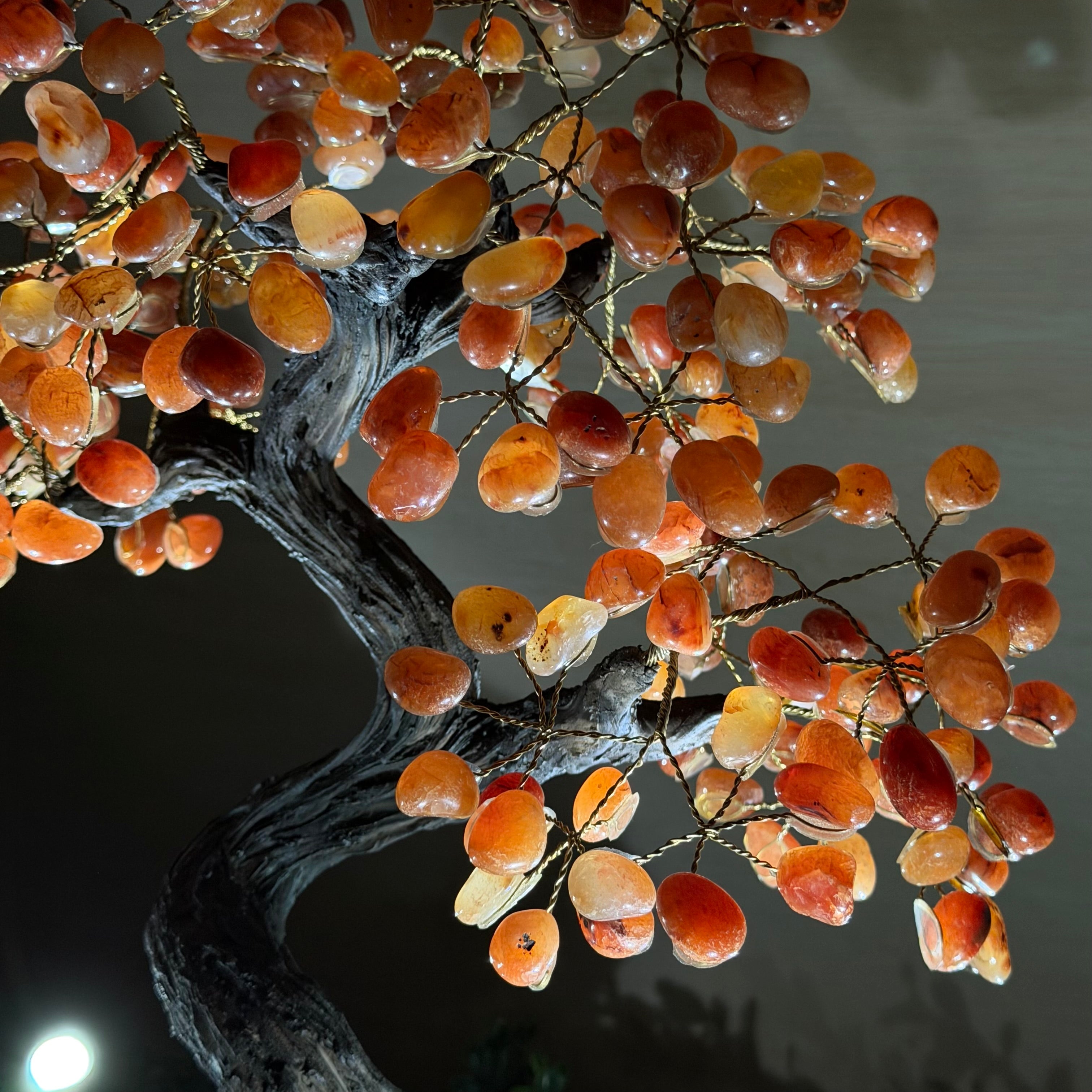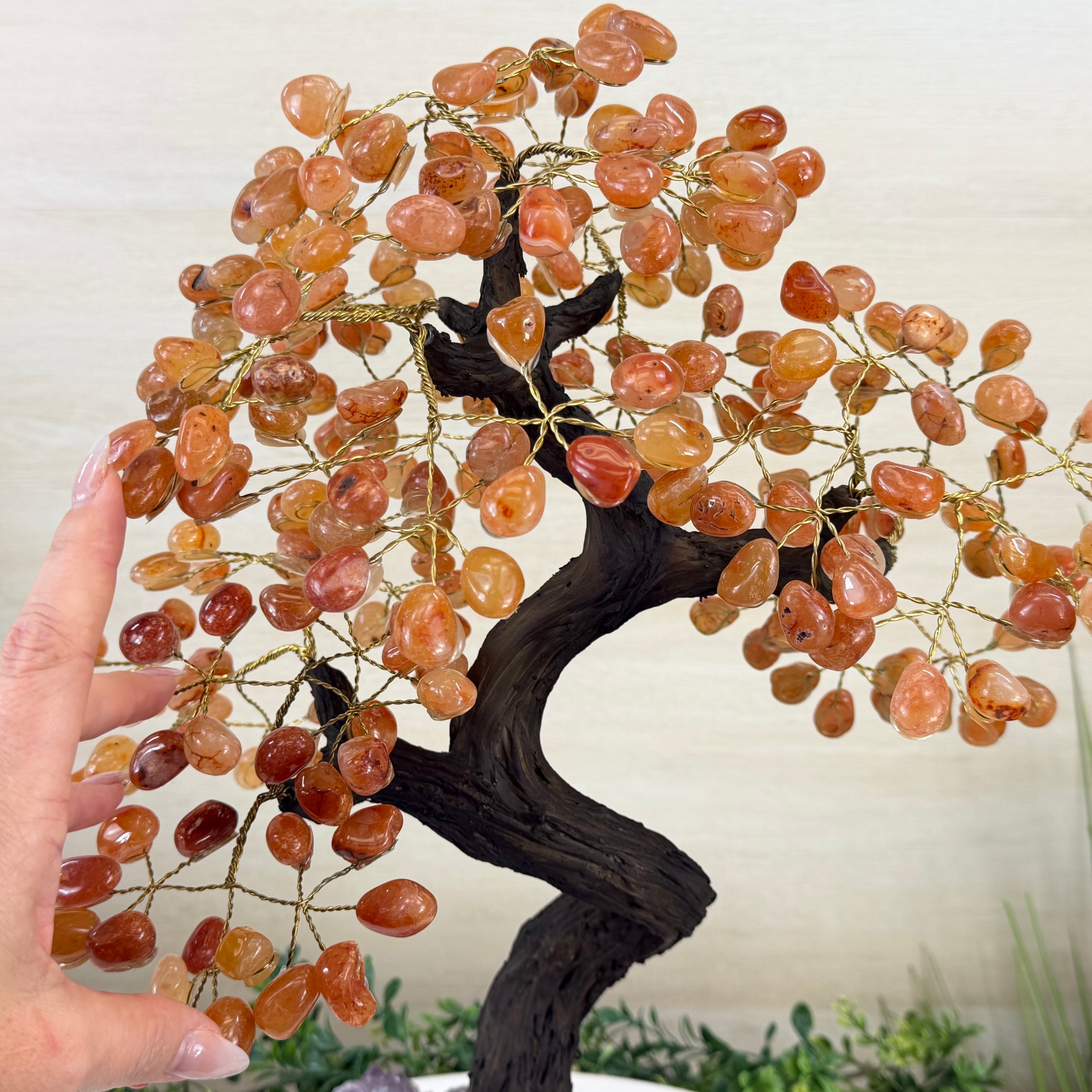 The process to make a gemstone tree like this is very extensive and meticulous. Elevate your space with the majestic presence of our Handmade Carnelian Gemstone Trees. MADE IN BRAZIL!