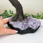The process to make a gemstone tree like this is very extensive and meticulous. First, an Amethyst cluster is selected for the base, then a resin trunk and branches are crafted into a bonsai style by artisans in Brazil and finally each gemstone is glued to the tree by hand. The result is a work of art that radiates harmony, care, and intention.