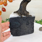 The process to make a gemstone tree like this is very extensive and meticulous. First, an Amethyst cluster is selected for the base, then a resin trunk and branches are crafted into a bonsai style by artisans in Brazil and finally each gemstone is glued to the tree by hand. The result is a work of art that radiates harmony, care, and intention.