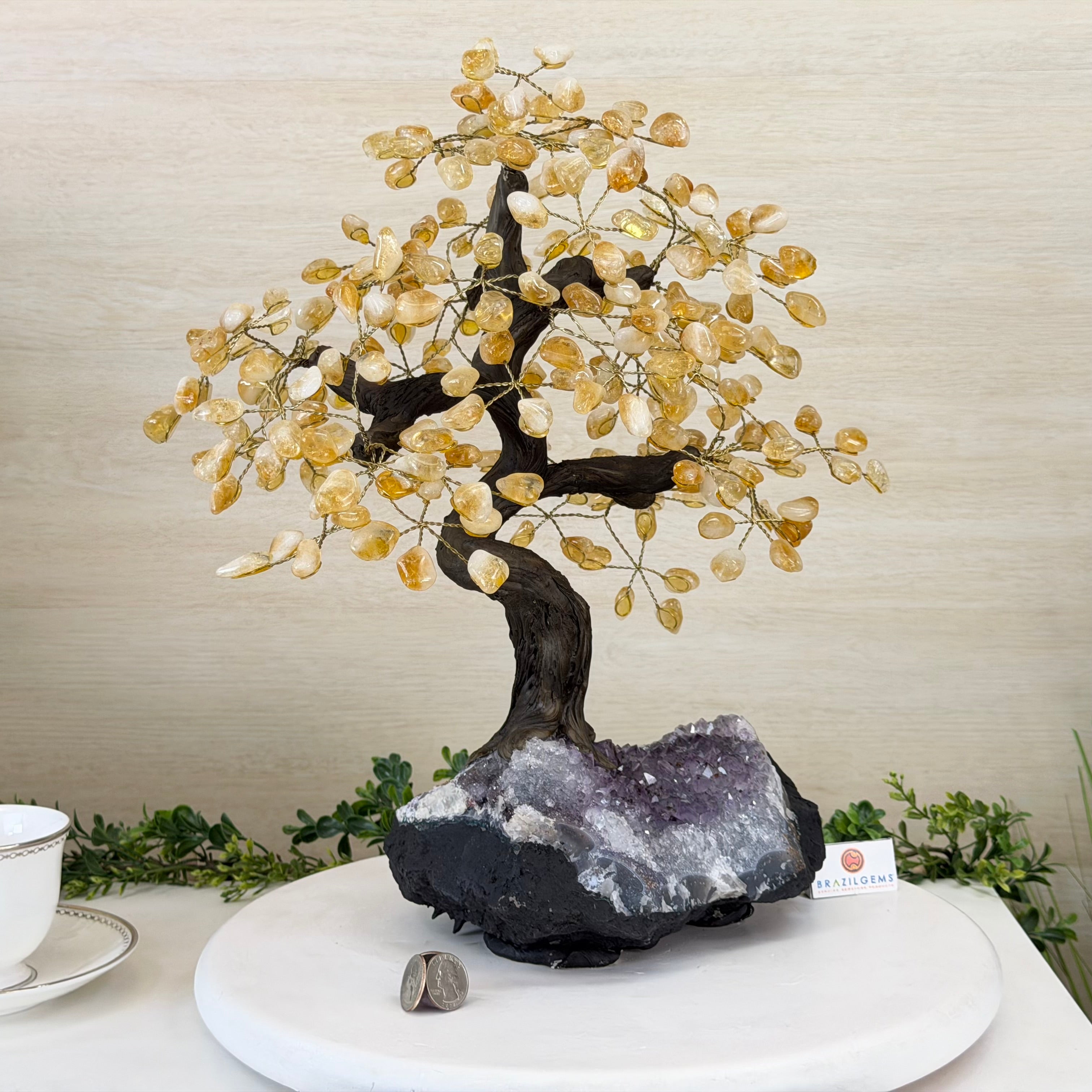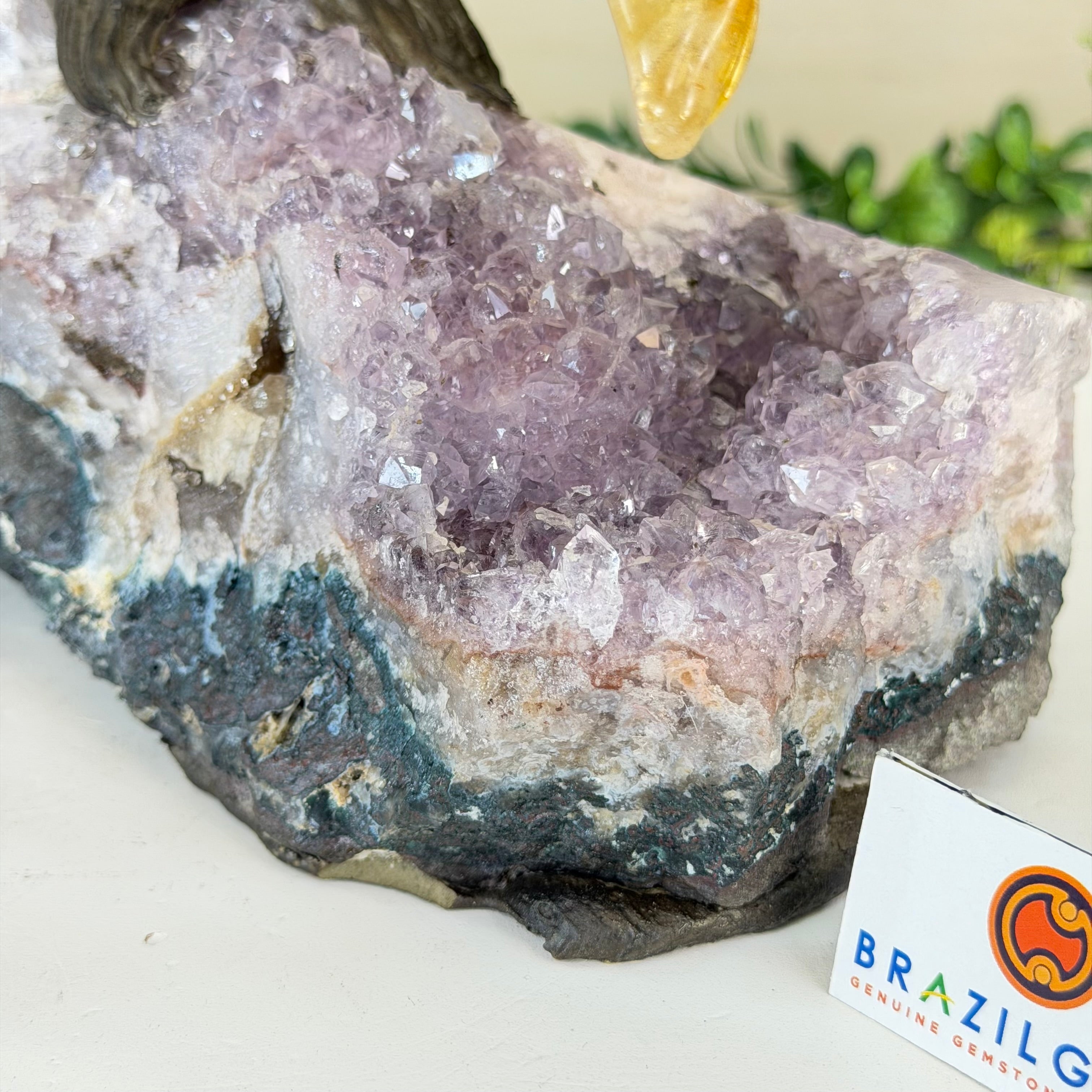 Much of the Citrine in circulation today from Brazil were originally Amethysts that have been heated in kilns. The process mimics and speeds up the naturally occurring process that geo-thermal heat hadn't yet had a chance to do which is to give these gemstones their beautiful range of amber colors.