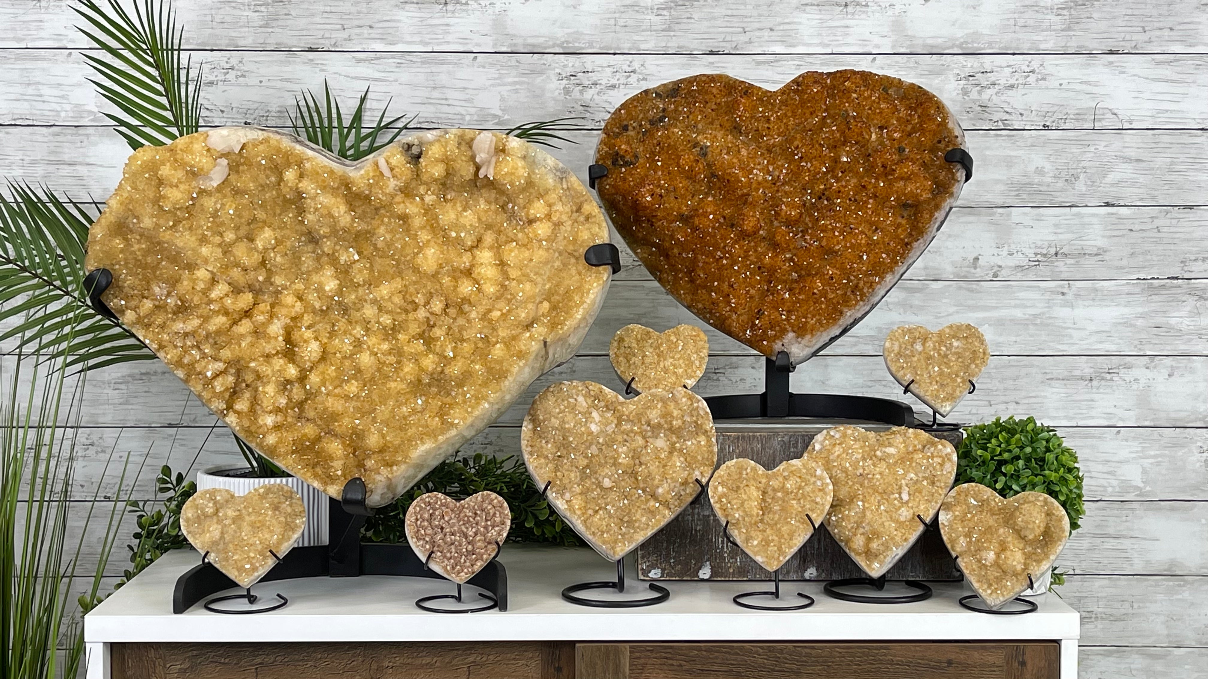 They also feature natural vibrant amber colors and nicely shaped crystal points to admire for years to come. The polished heart shape will make the ultimate romantic gift to a loved one.