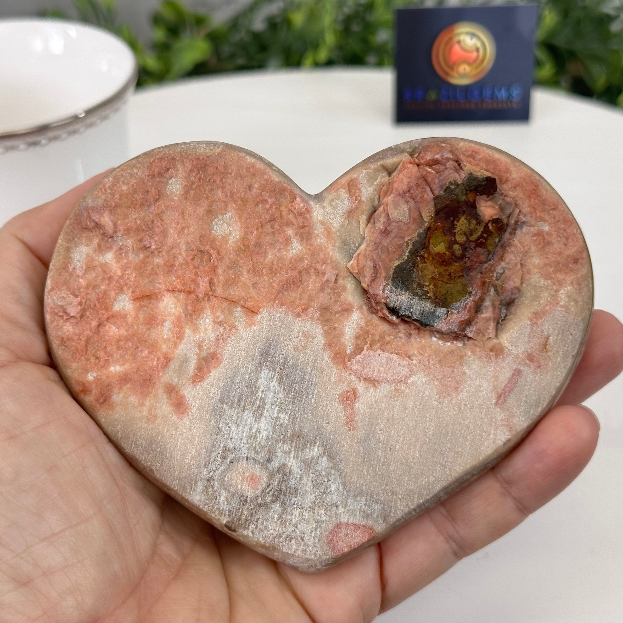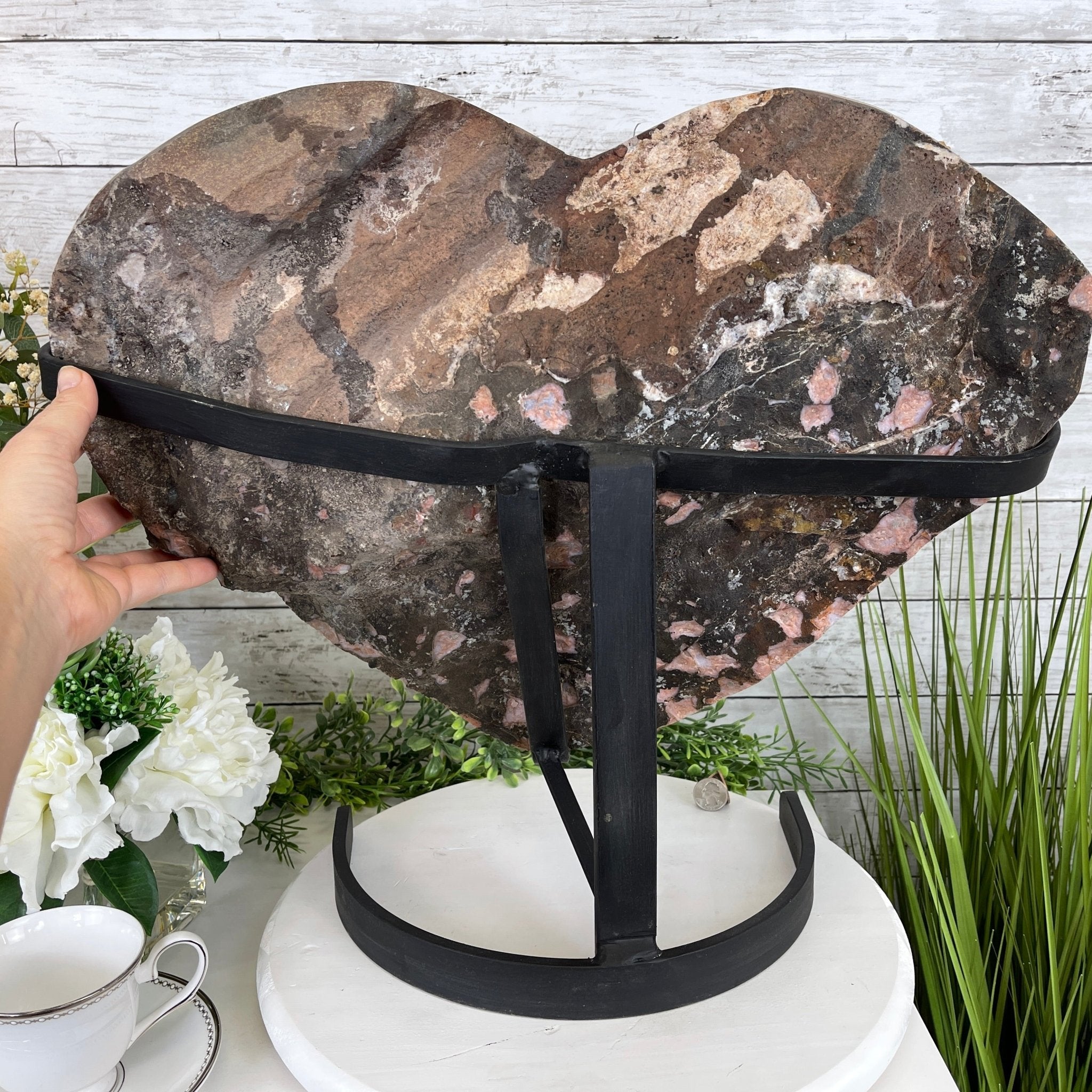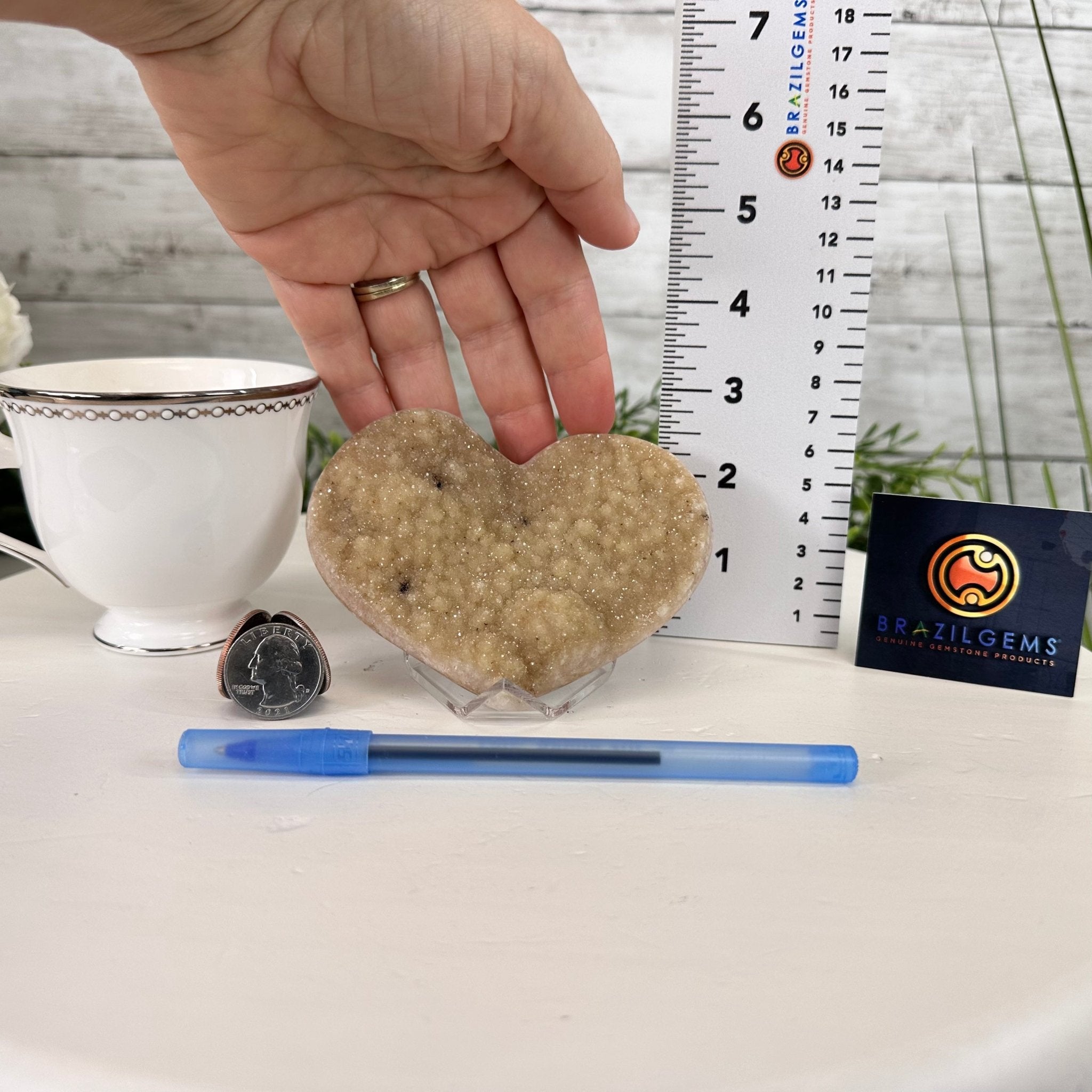 Local artisans in South Brazil mastered the technique to make heart-shaped gemstones, a very labor-intensive task that requires a lot of skill and precision. The result is a beautiful piece that will certainly make a statement in any room or a long lasting gift.