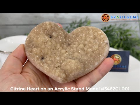 Extra Quality Citrine Heart Geode on an Acrylic Stand, 0.63 lbs & 2.7" Tall #5462CI-001 by Brazil Gems