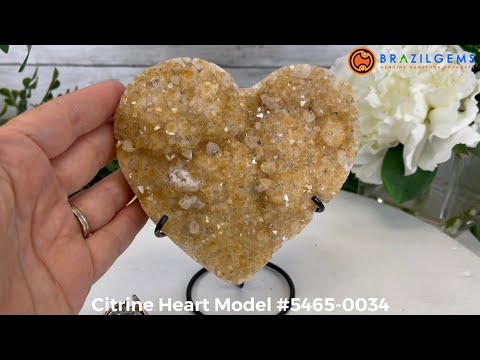 Standard Plus Quality Citrine Heart Geode, metal stand, 2.1 lbs & 6" Tall Model #5465-0034