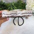 Standard Plus Quality Heart-Shaped Citrine Geode on a black metal stand. With polished edges, this citrine geode has vibrant amber colors and nicely shaped crystal points.