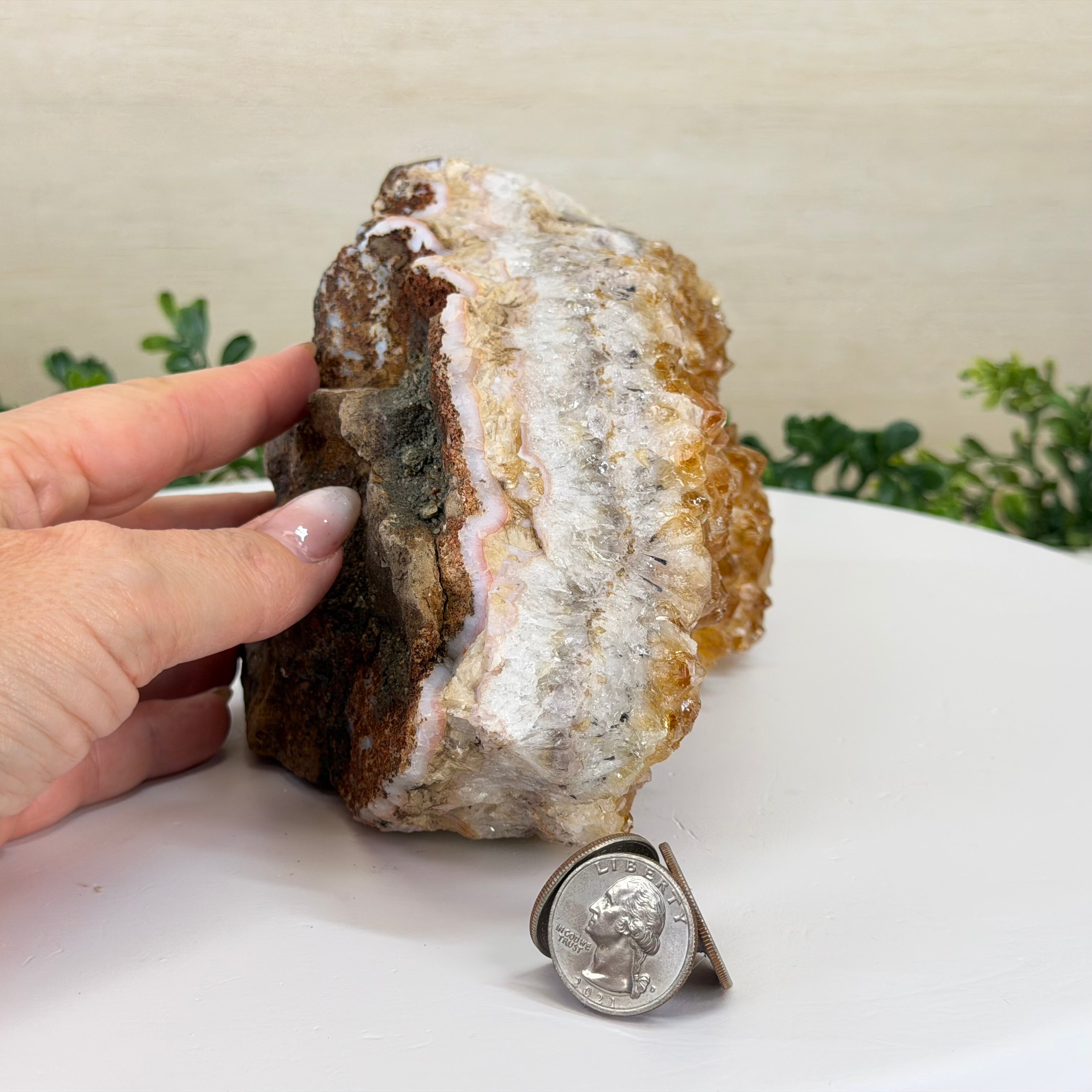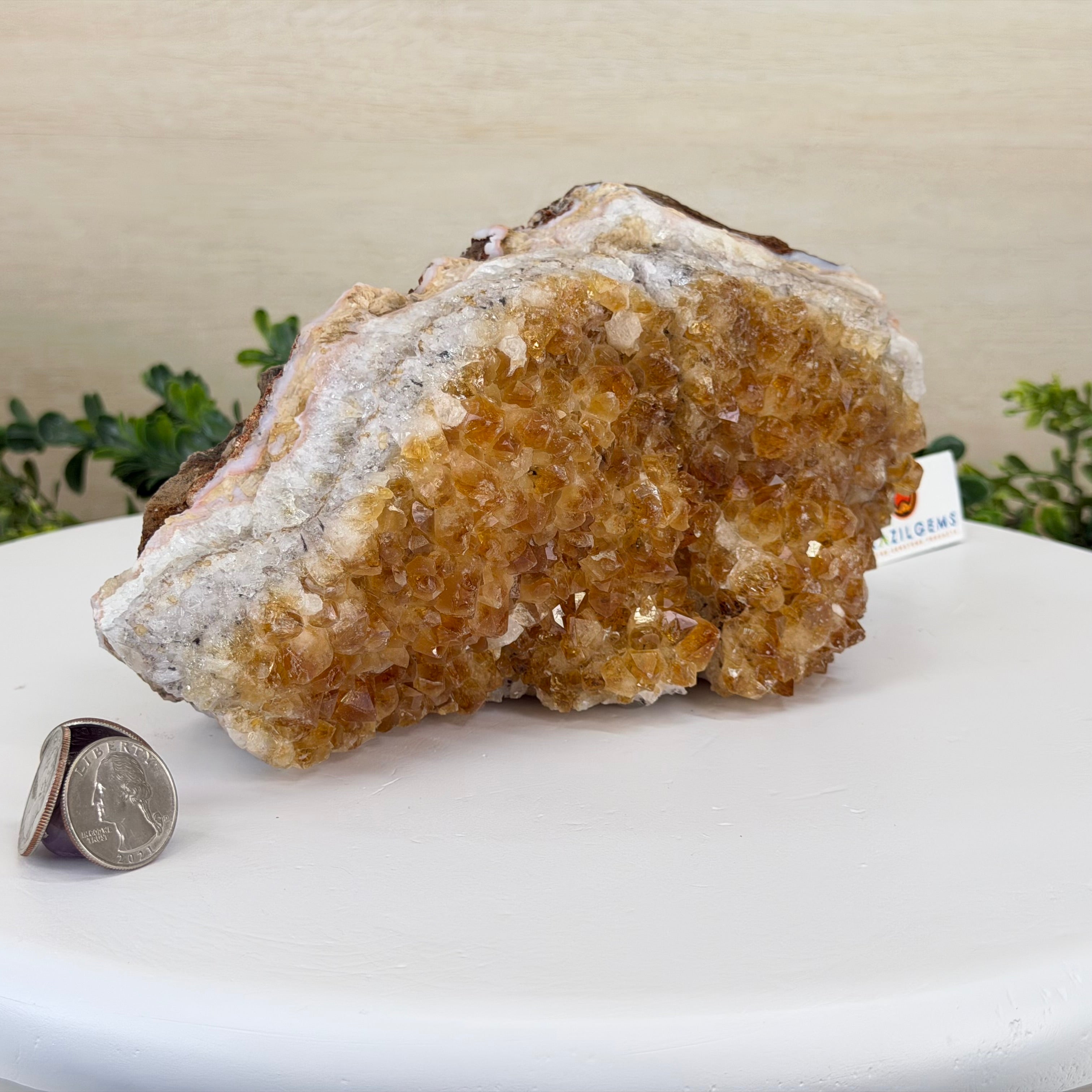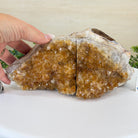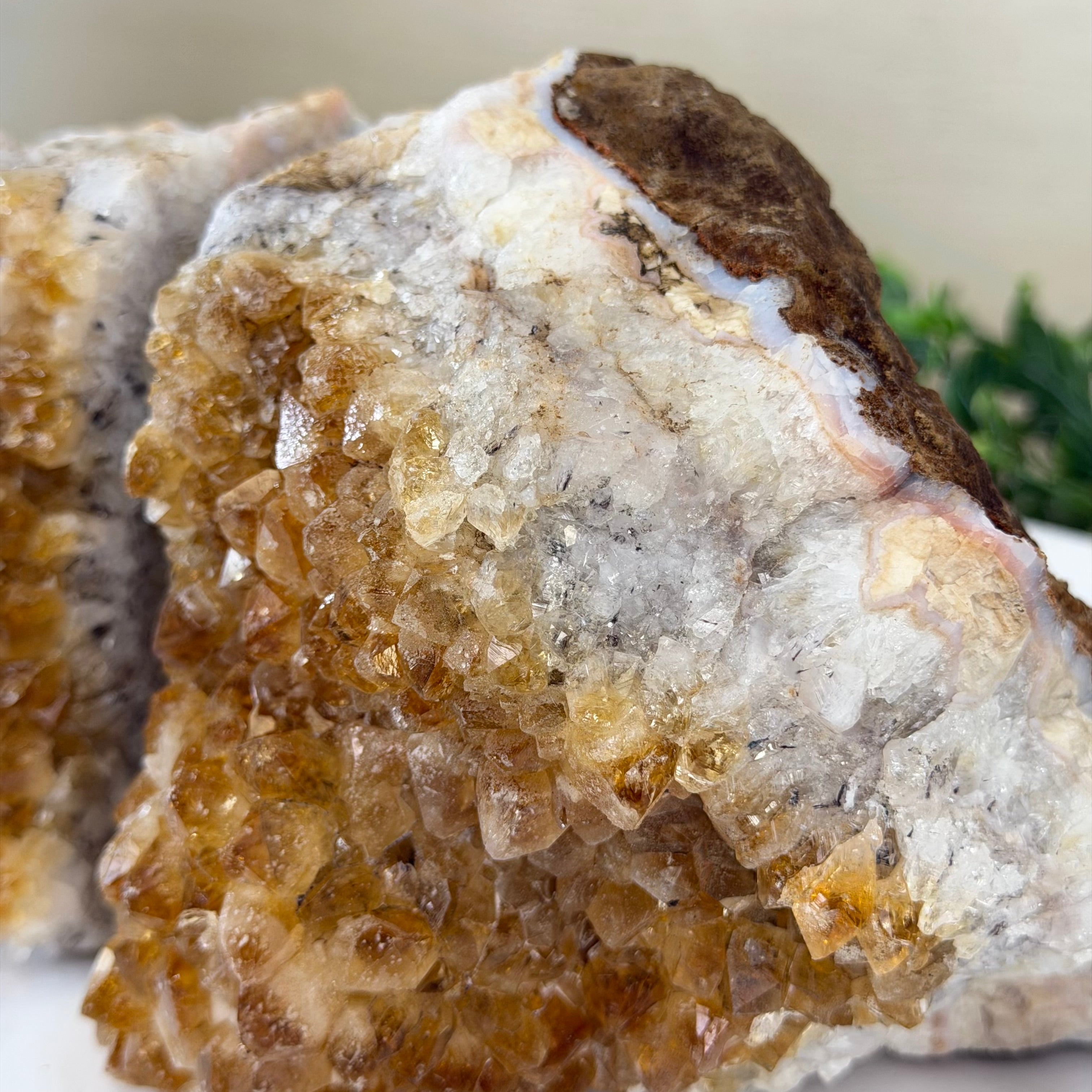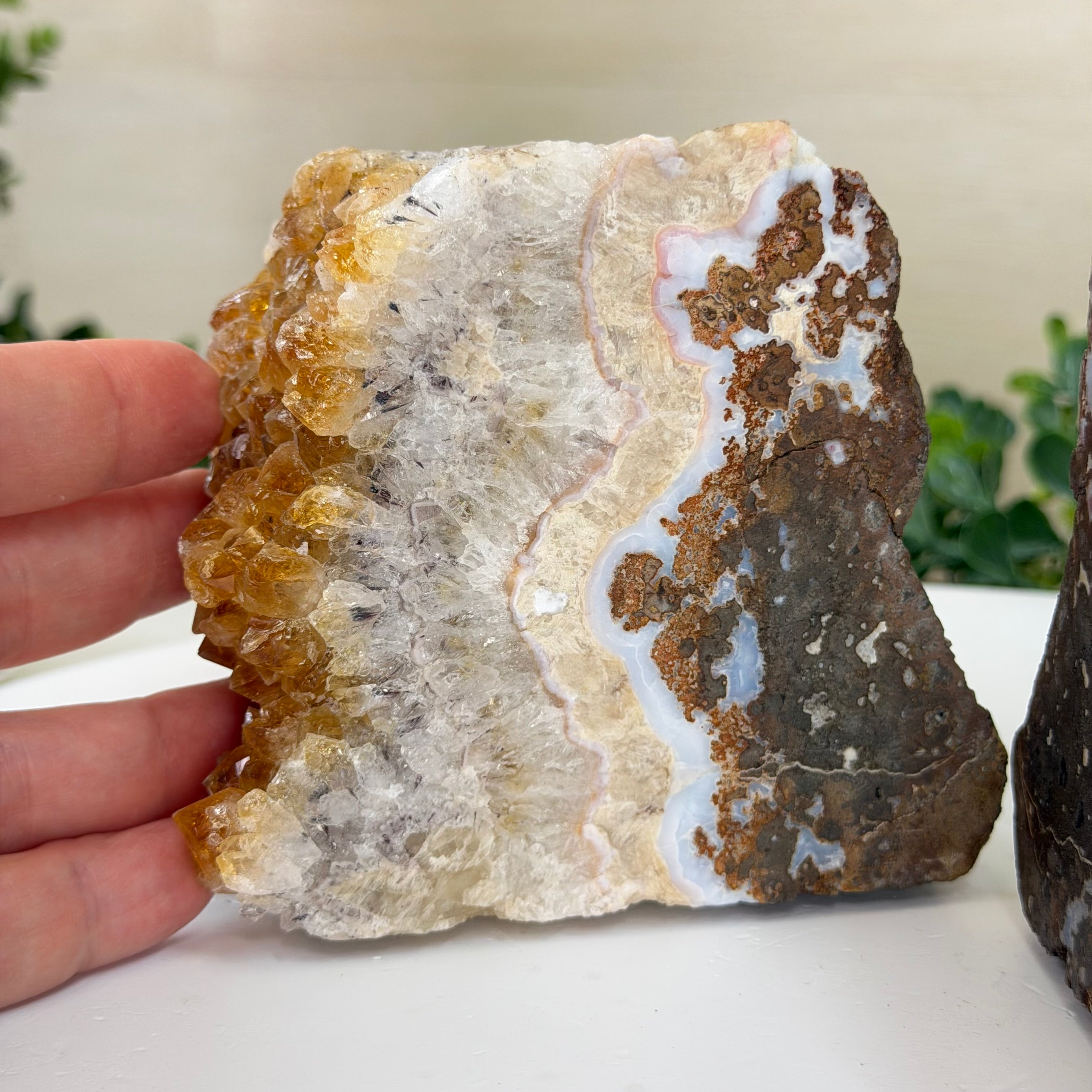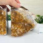 Formed from Brazilian Citrine geode pieces, these Citrine Crystal bookends showcase sparkling drusy points across the front, with interior sides and bases polished smooth for balance and stability. Each pair reveals citrine’s warm amber and golden hues, blending raw crystal radiance with refined craftsmanship. As is the case for the majority of Citrine on the market from Brazil, this Citrine has been heated to give it its beautiful amber color.