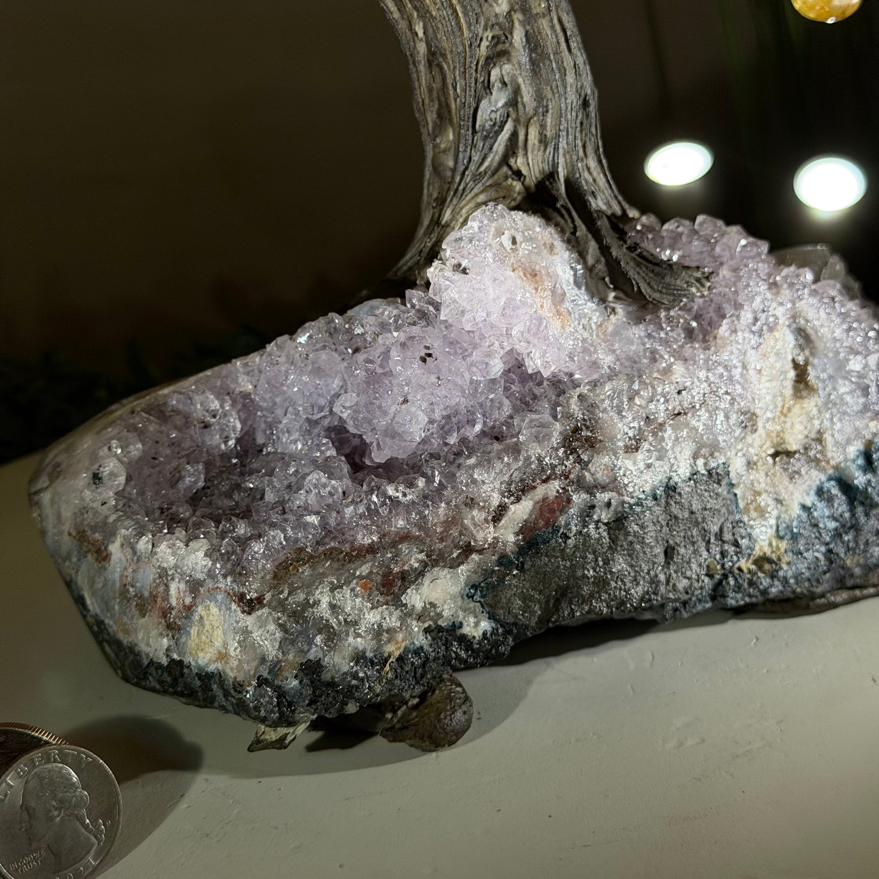 Rooted in a large natural Amethyst cluster, this tree is substantial in size—designed to become a focal point in any room, whether it’s a peaceful home corner or a thoughtful office space. It also makes a meaningful and lasting gift for someone special.