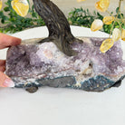 The process to make a gemstone tree like this is very extensive and meticulous. First, an Amethyst cluster is selected for the base, then a resin trunk and branches are crafted into a bonsai style by artisans in Brazil and finally each gemstone is glued to the tree by hand. The result is a work of art that radiates harmony, care, and intention.