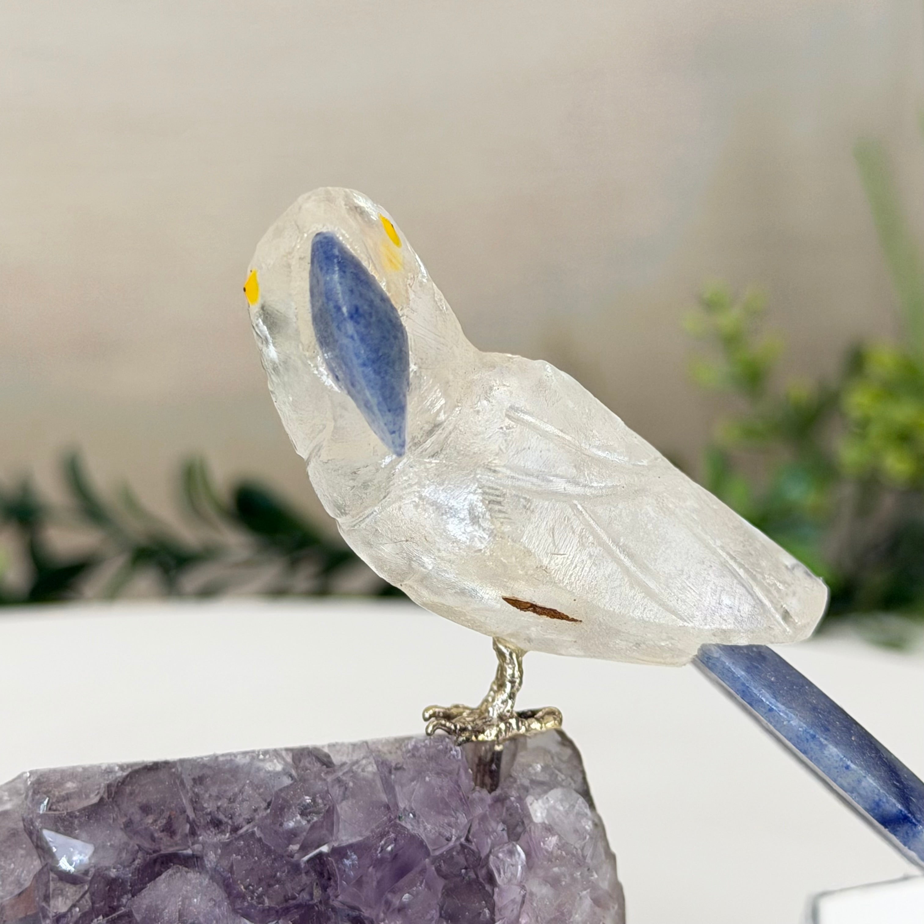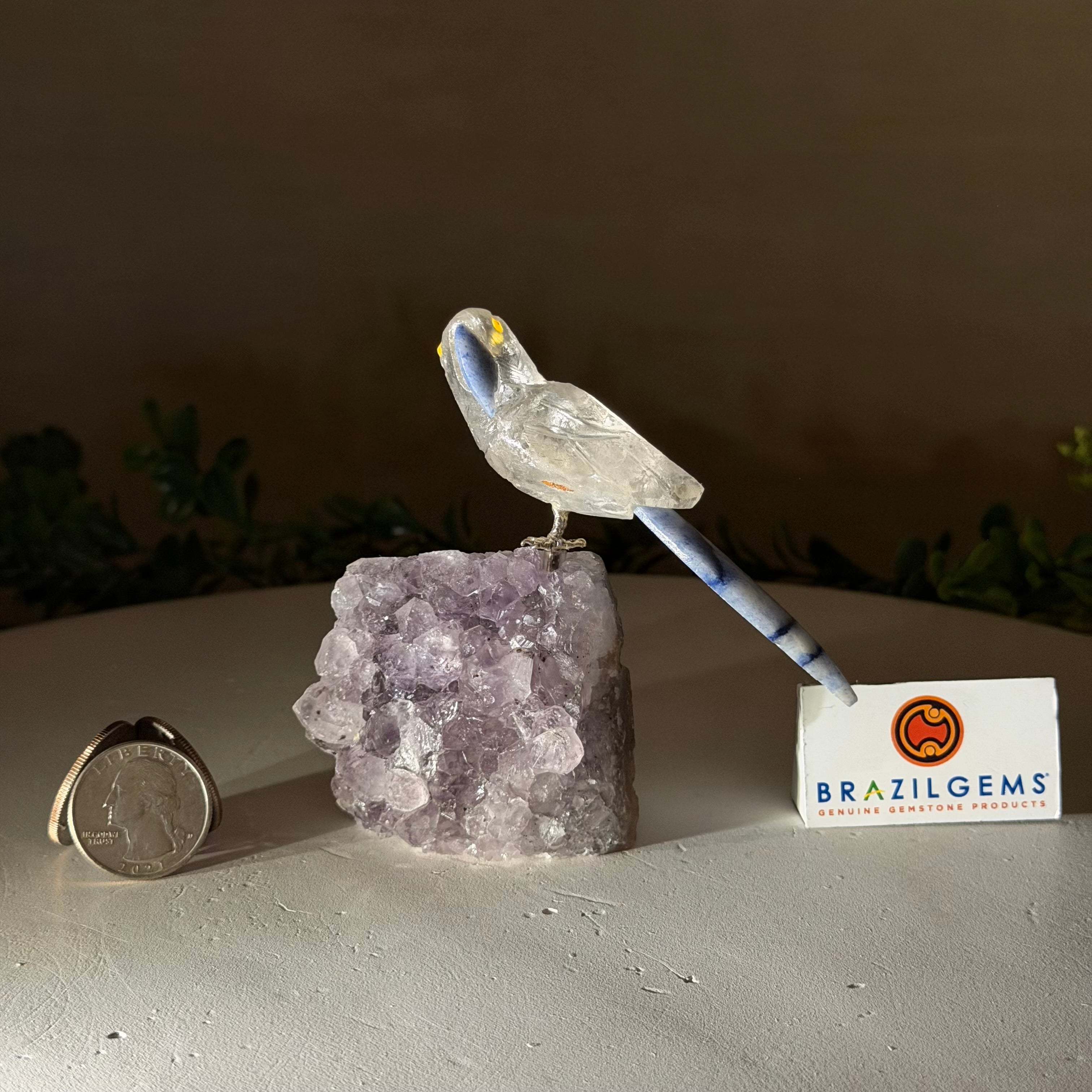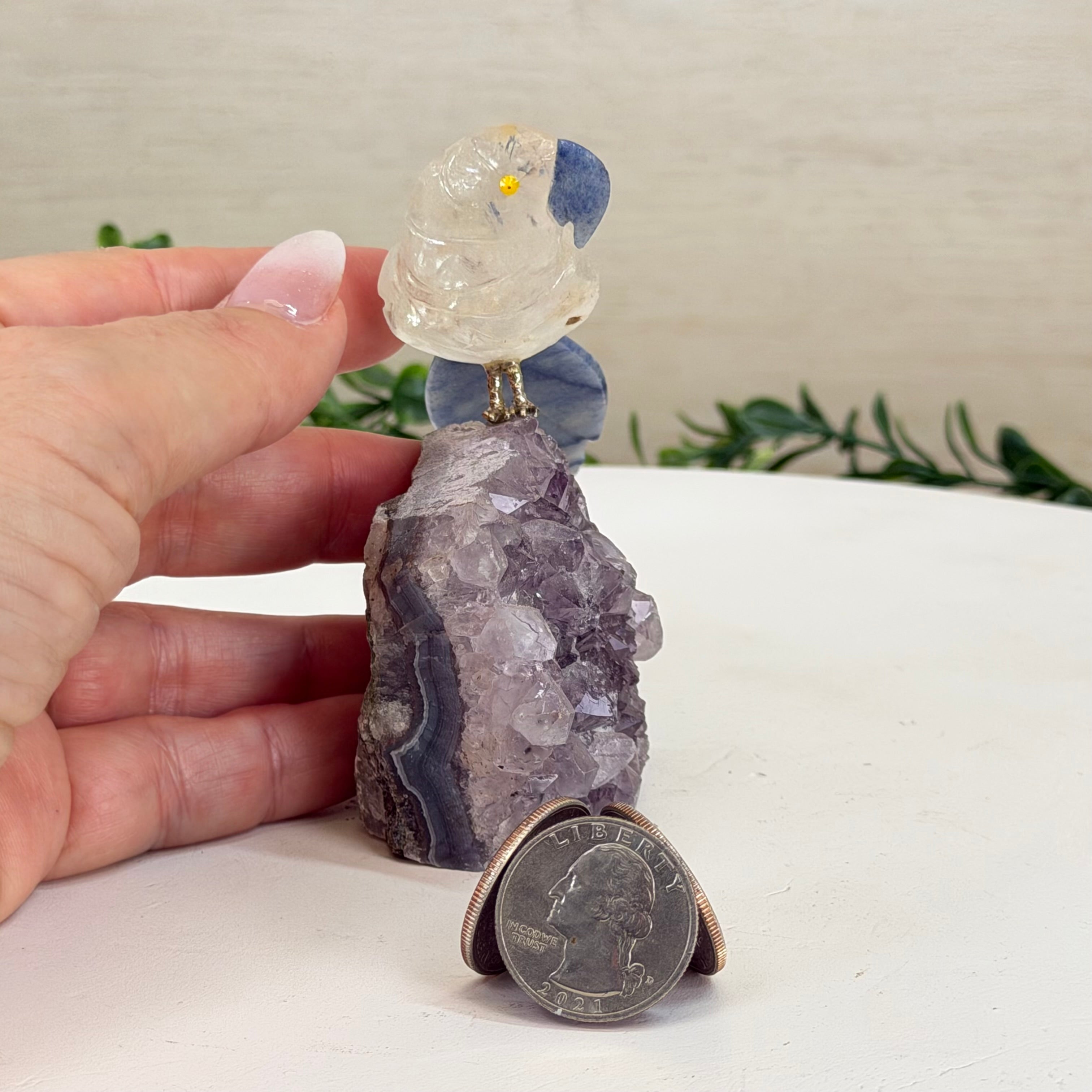 X-Small Clear Quartz Crystal Parrot, Amethyst Base #3001-CQPAM-087