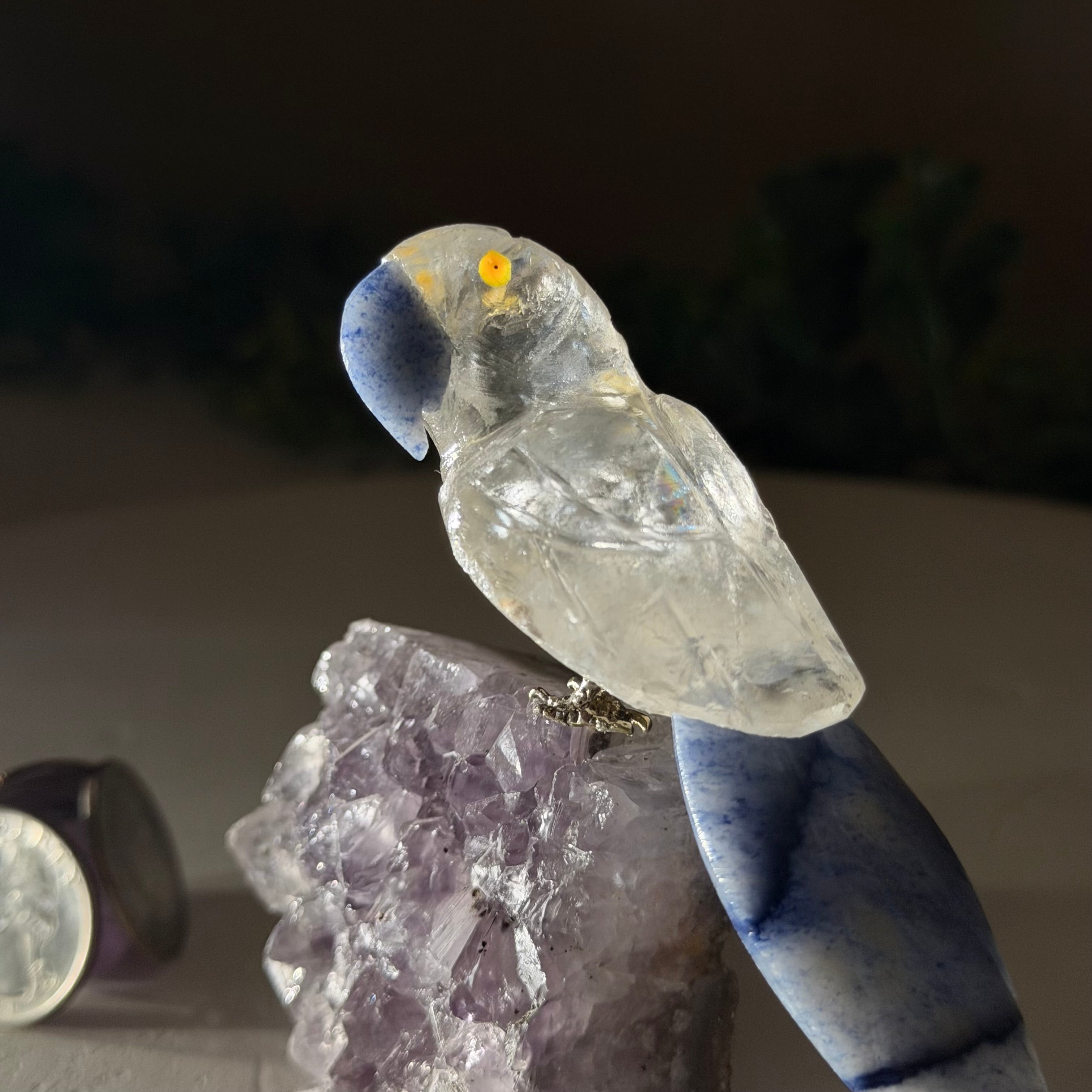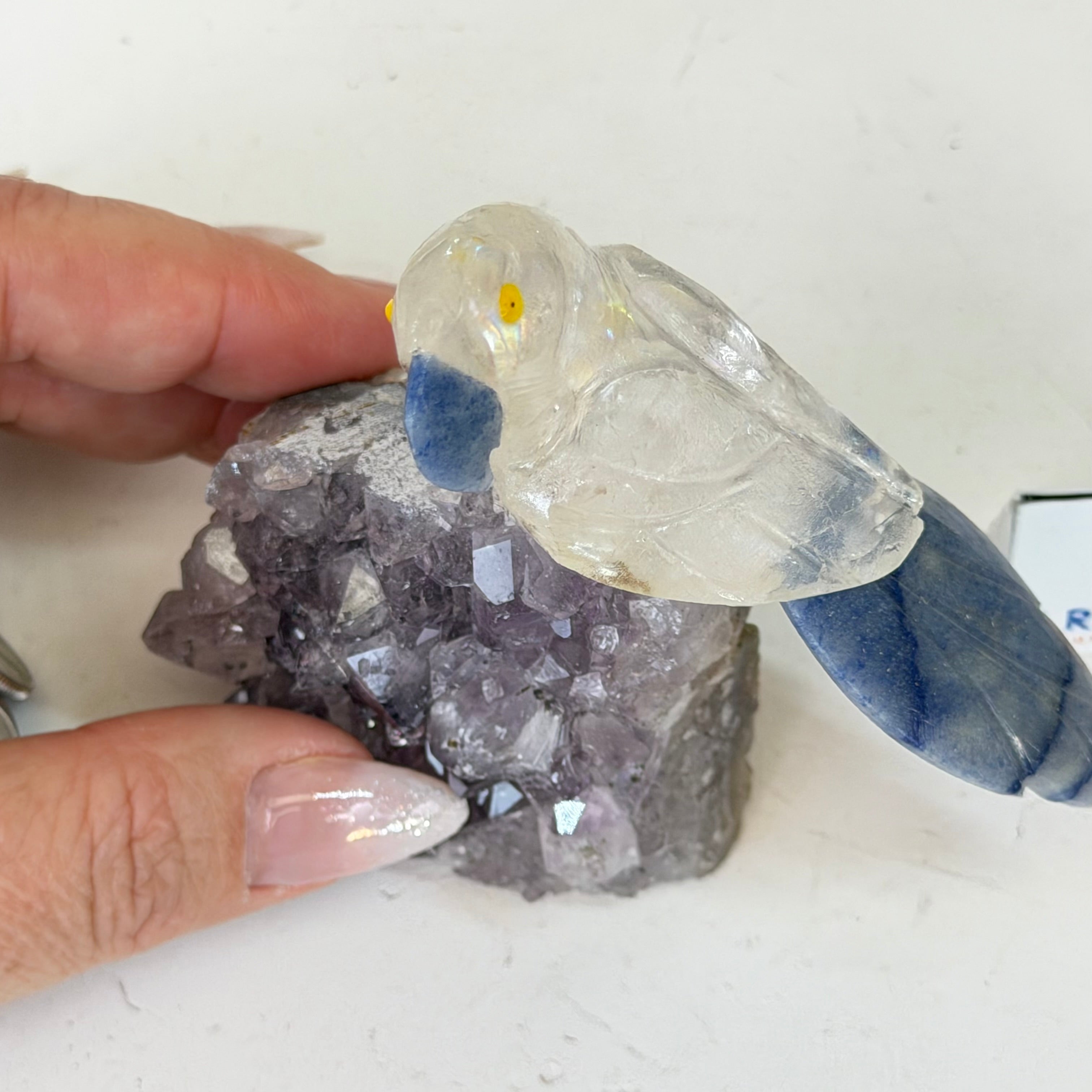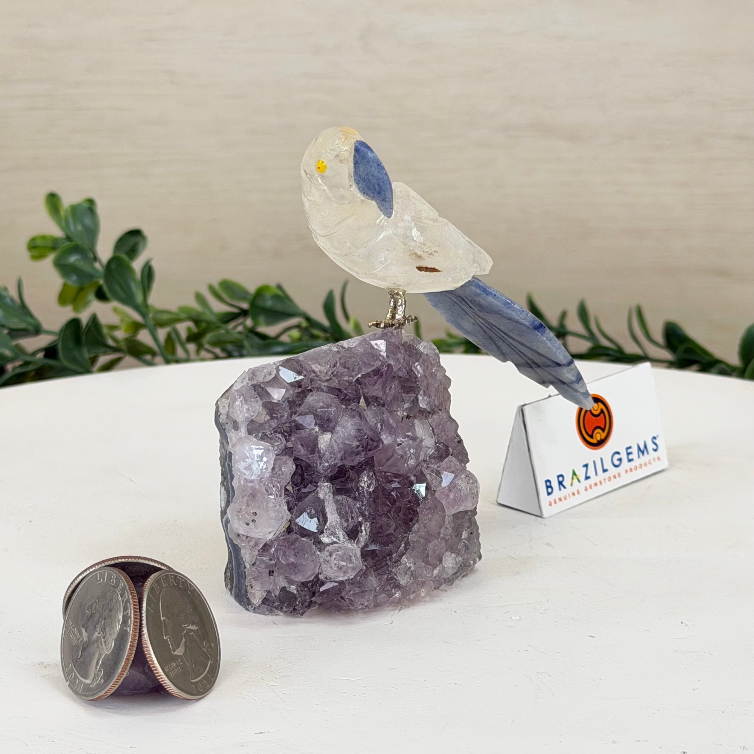 X-Small Clear Quartz Crystal Parrot, Amethyst Base #3001-CQPAM-087
