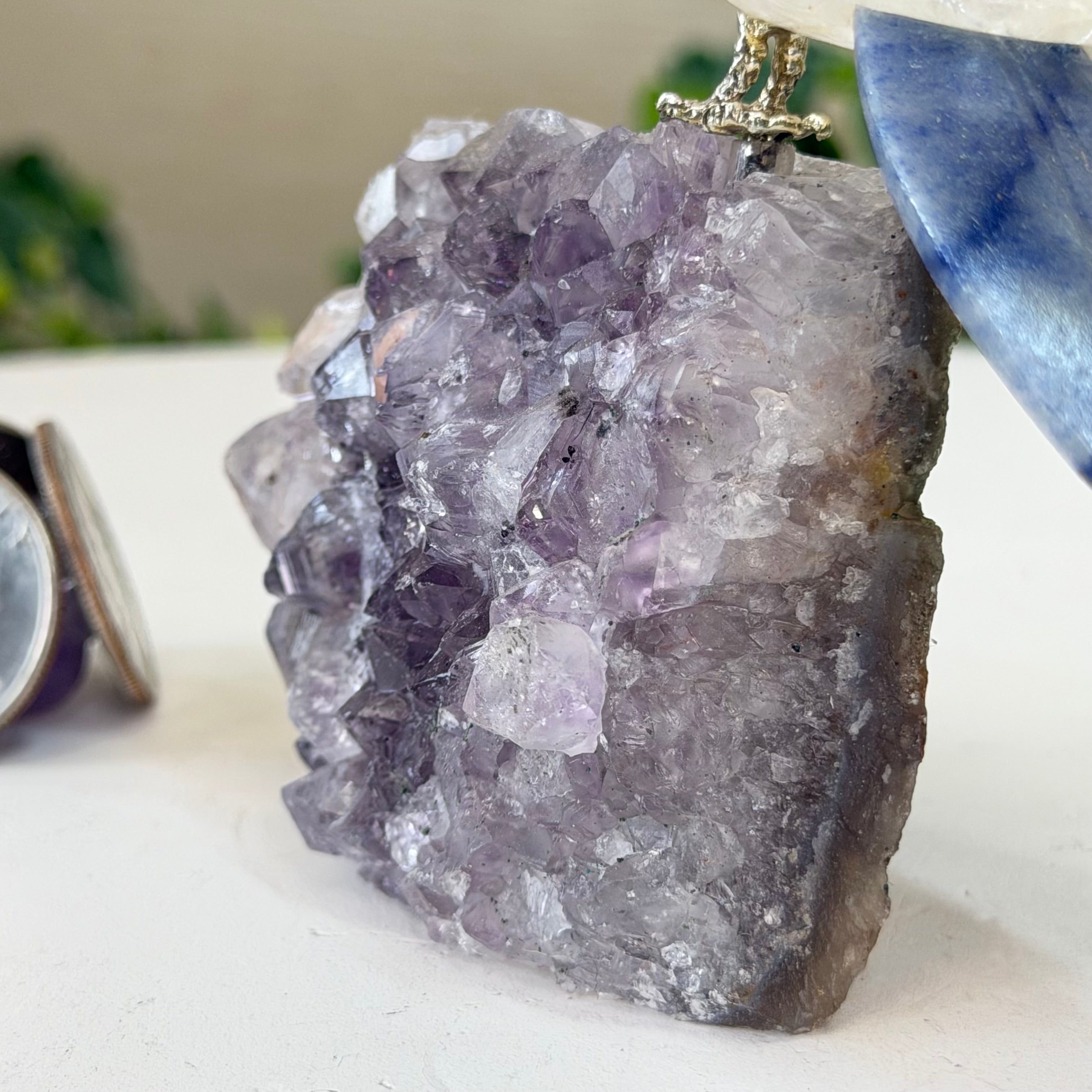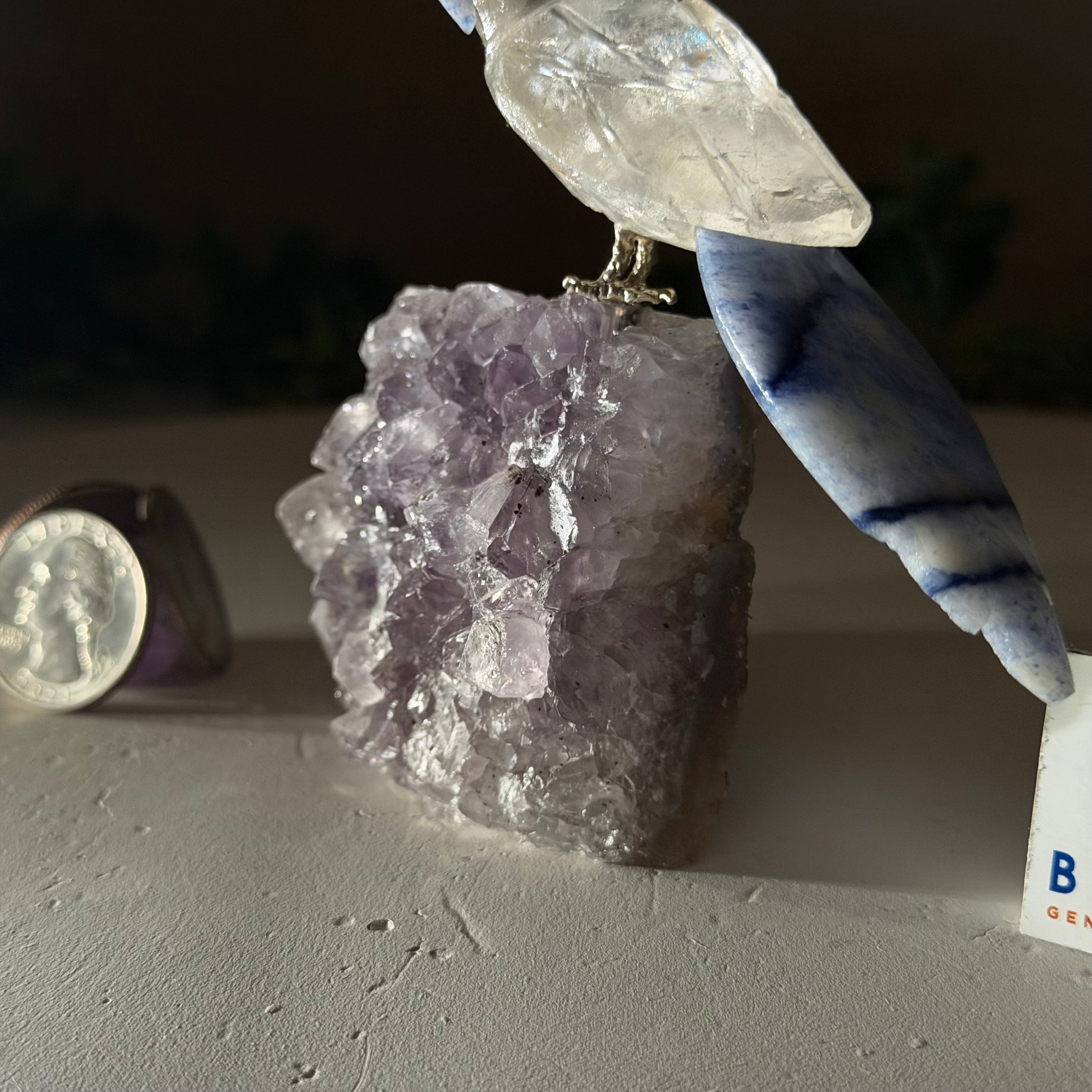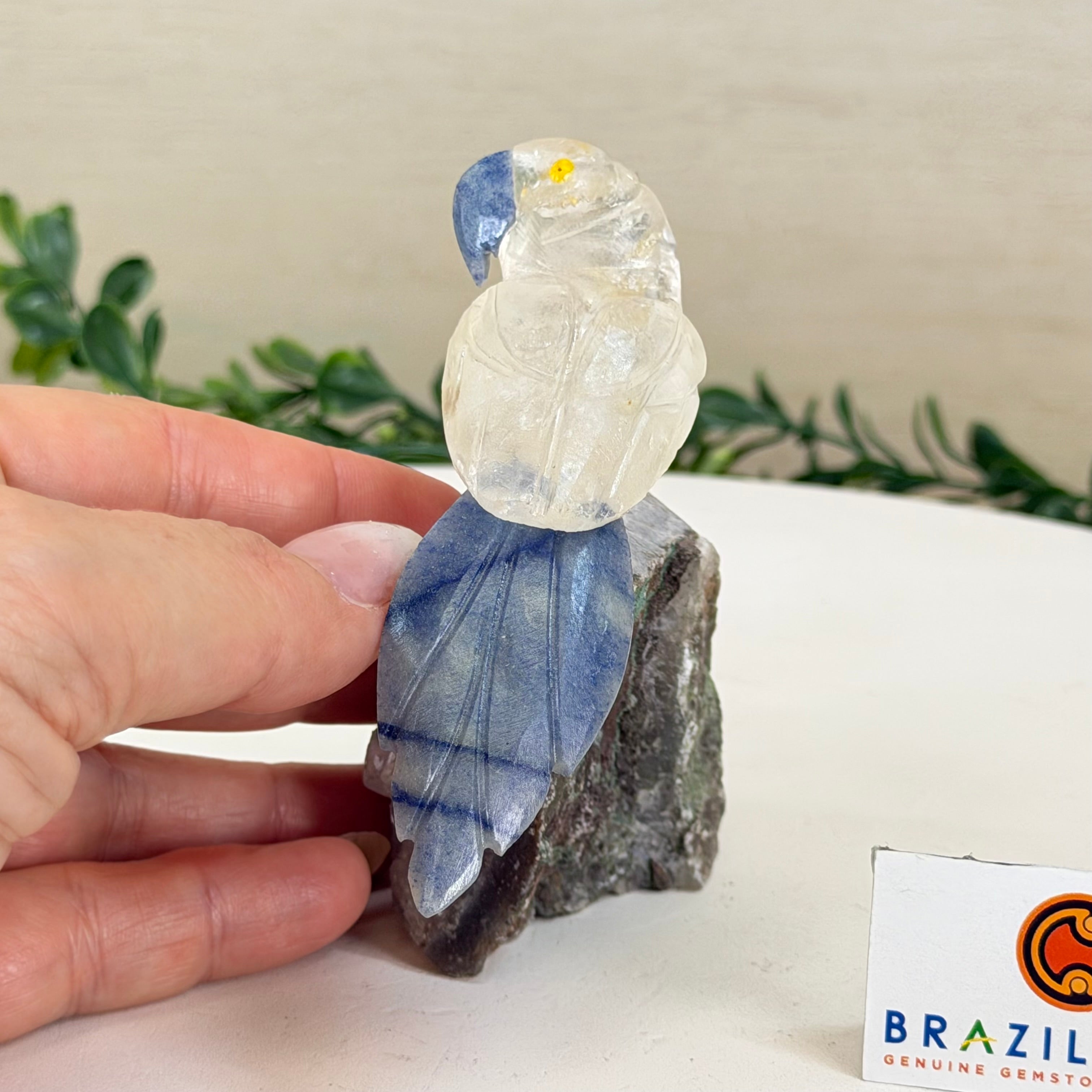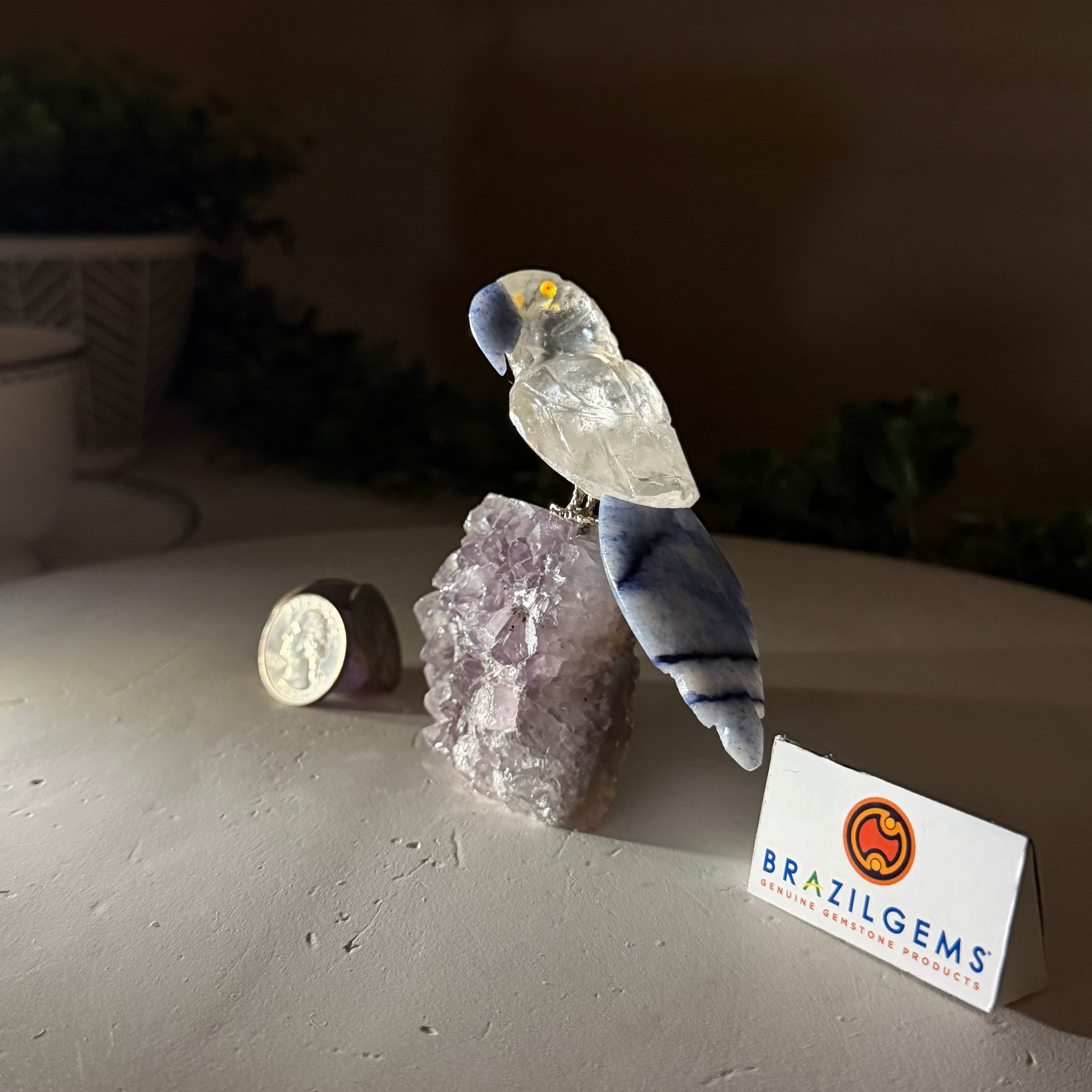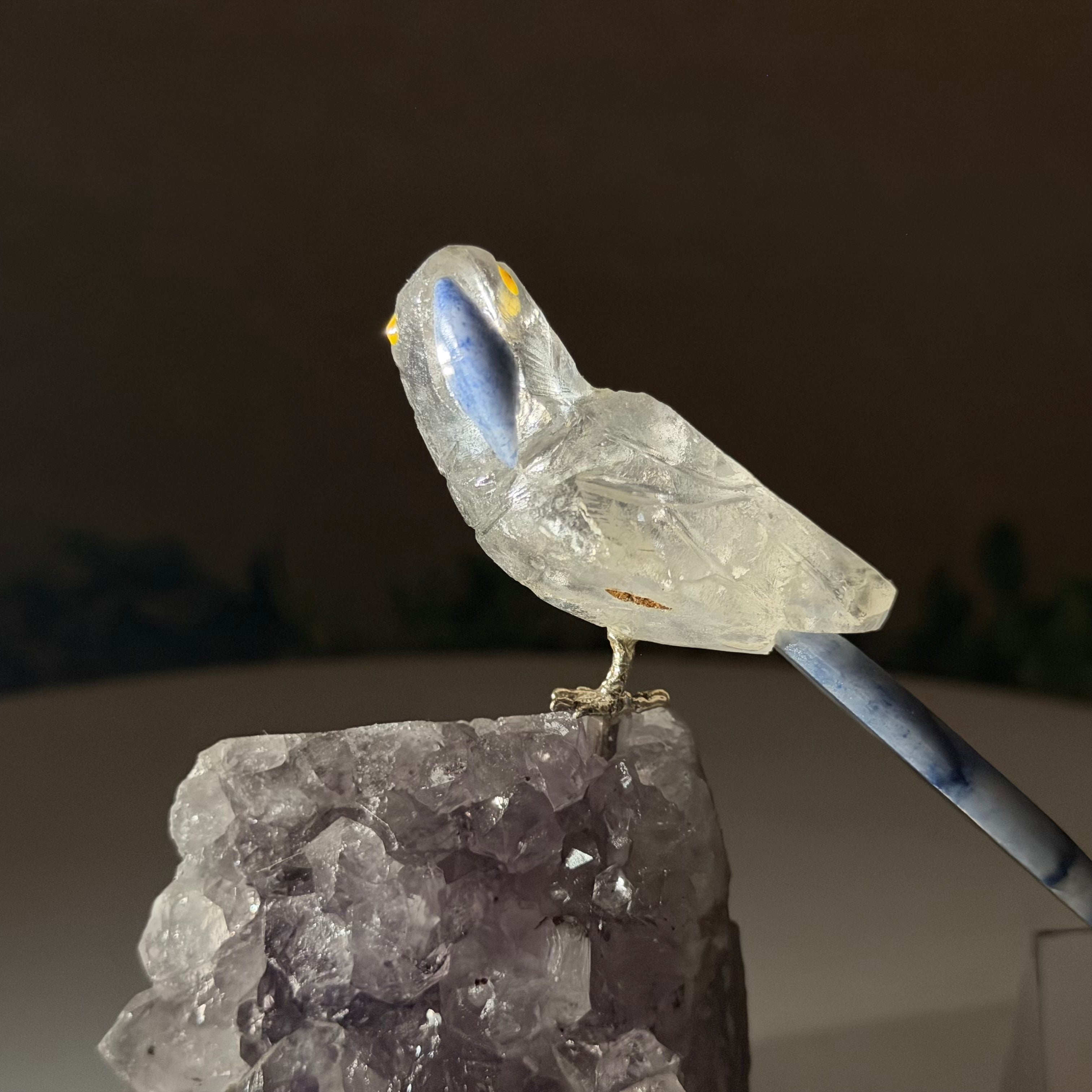 Discover the beauty of our hand-carved gemstone bird, a stunning fusion of Brazilian artistry and natural elegance. Each sculpture is thoughtfully crafted from genuine gemstones and perched on a captivating crystal cluster base, creating a timeless décor piece that blends nature, color, and craftsmanship.
