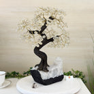 The process to make a gemstone tree like this is very extensive and meticulous. First, an Amethyst cluster is selected for the base, then a resin trunk and branches are crafted into a bonsai style by artisans in Brazil and finally each gemstone is glued to the tree by hand. The result is a work of art that radiates harmony, care, and intention.