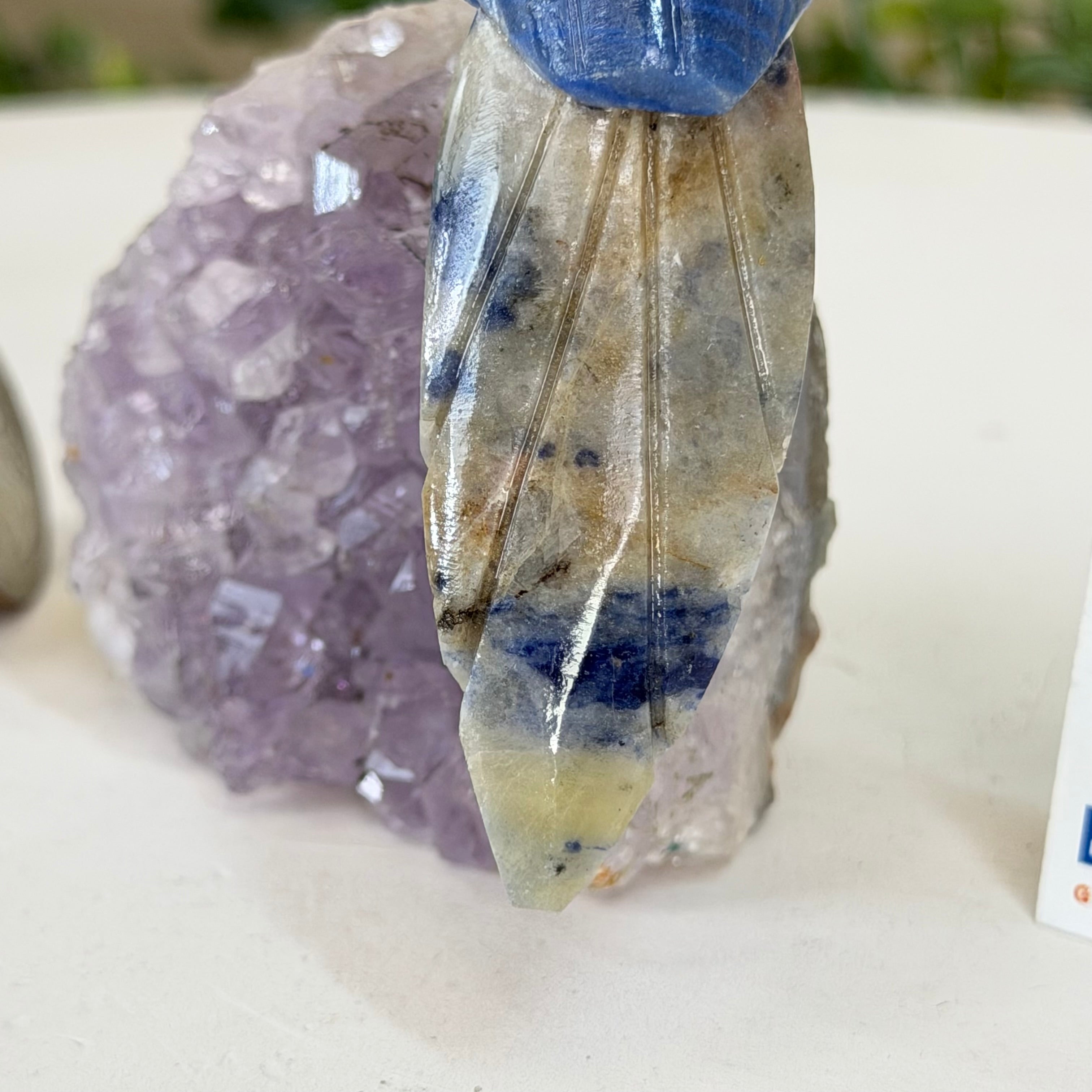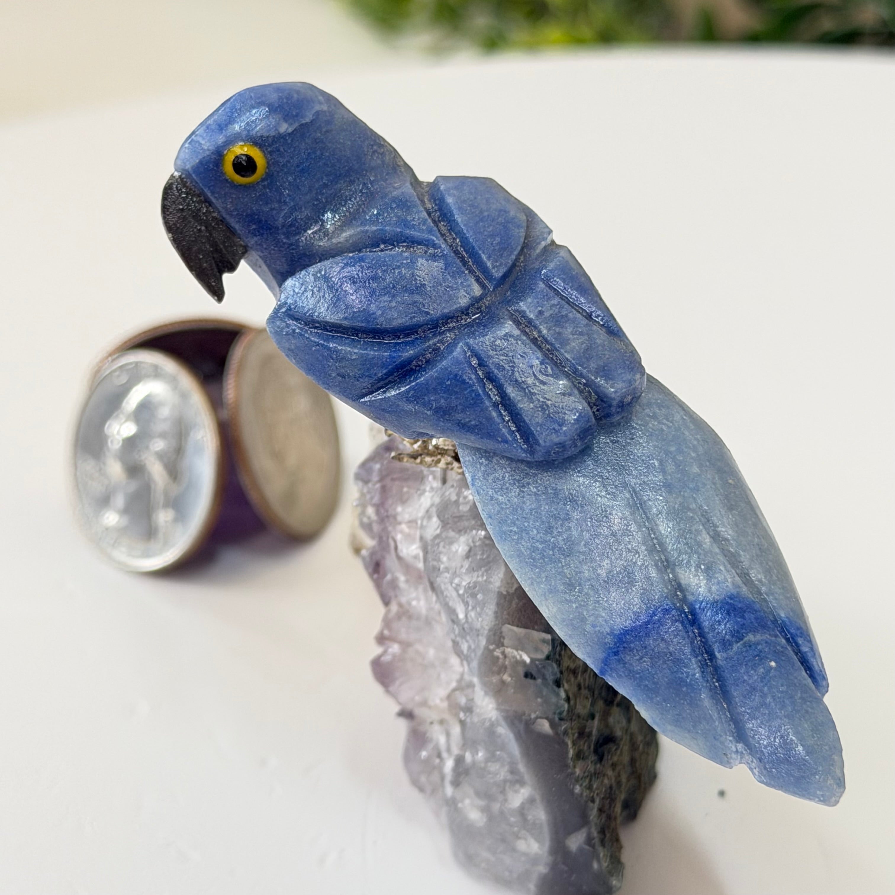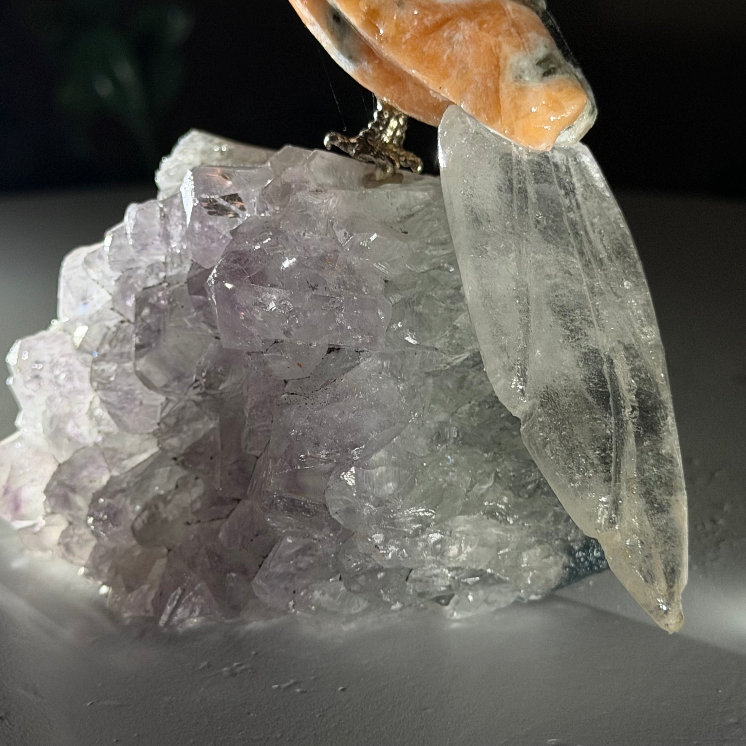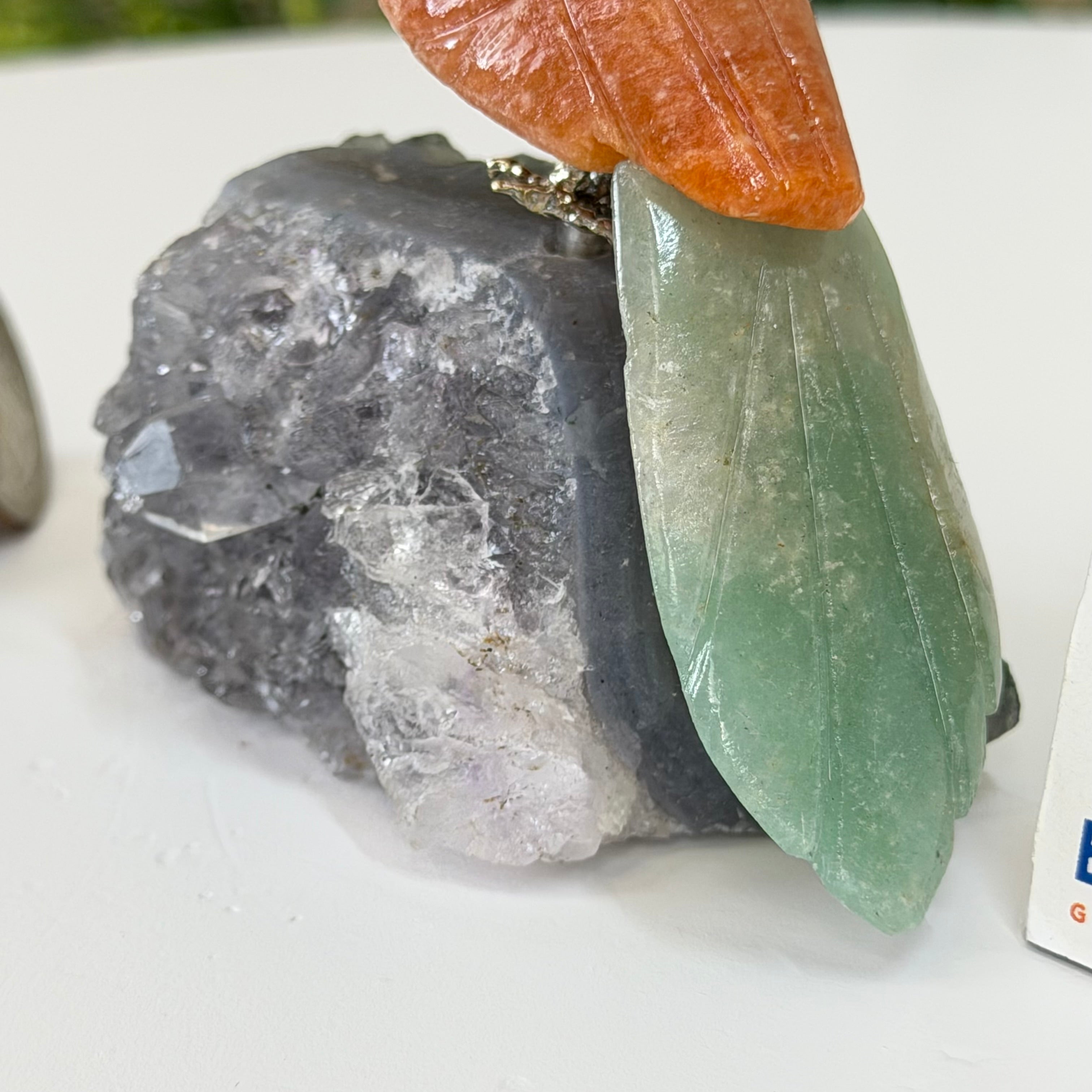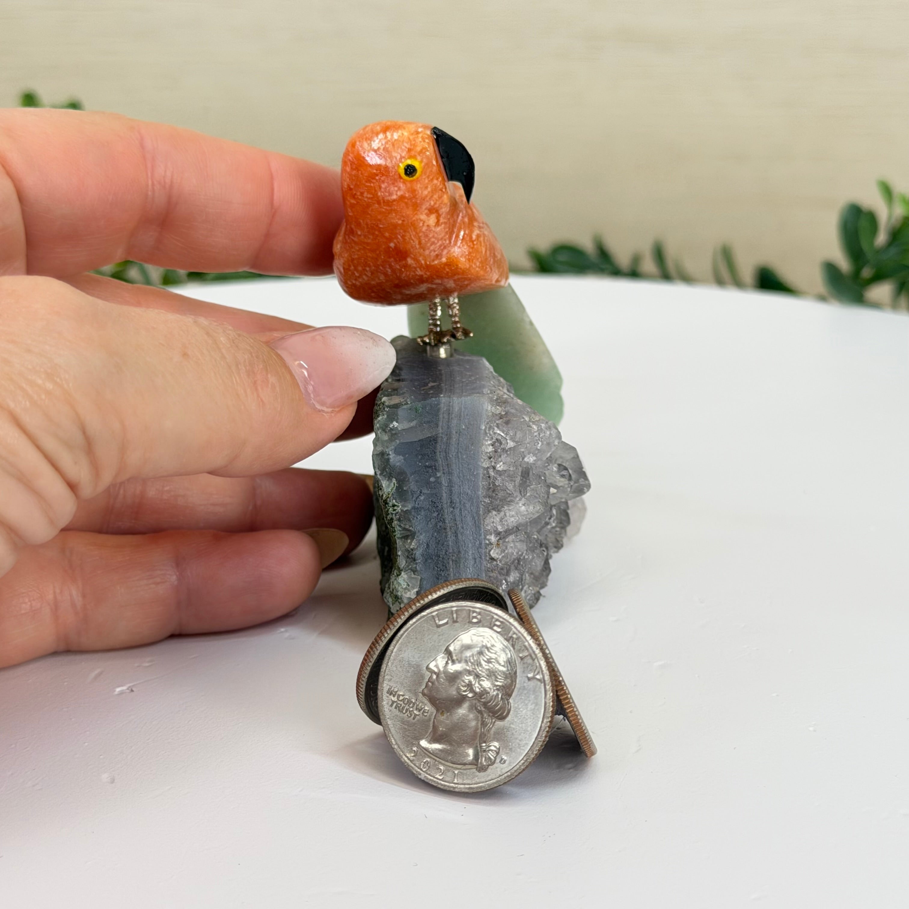 Each intricate detail of these birds is meticulously carved by skilled Brazilian artisans who have mastered the technique that combines the beauty of Brazil's gemstones with their colorful native birds into an amazing art piece. Elevate your space with the timeless charm of our Gemstone birds on an crystal cluster bases.