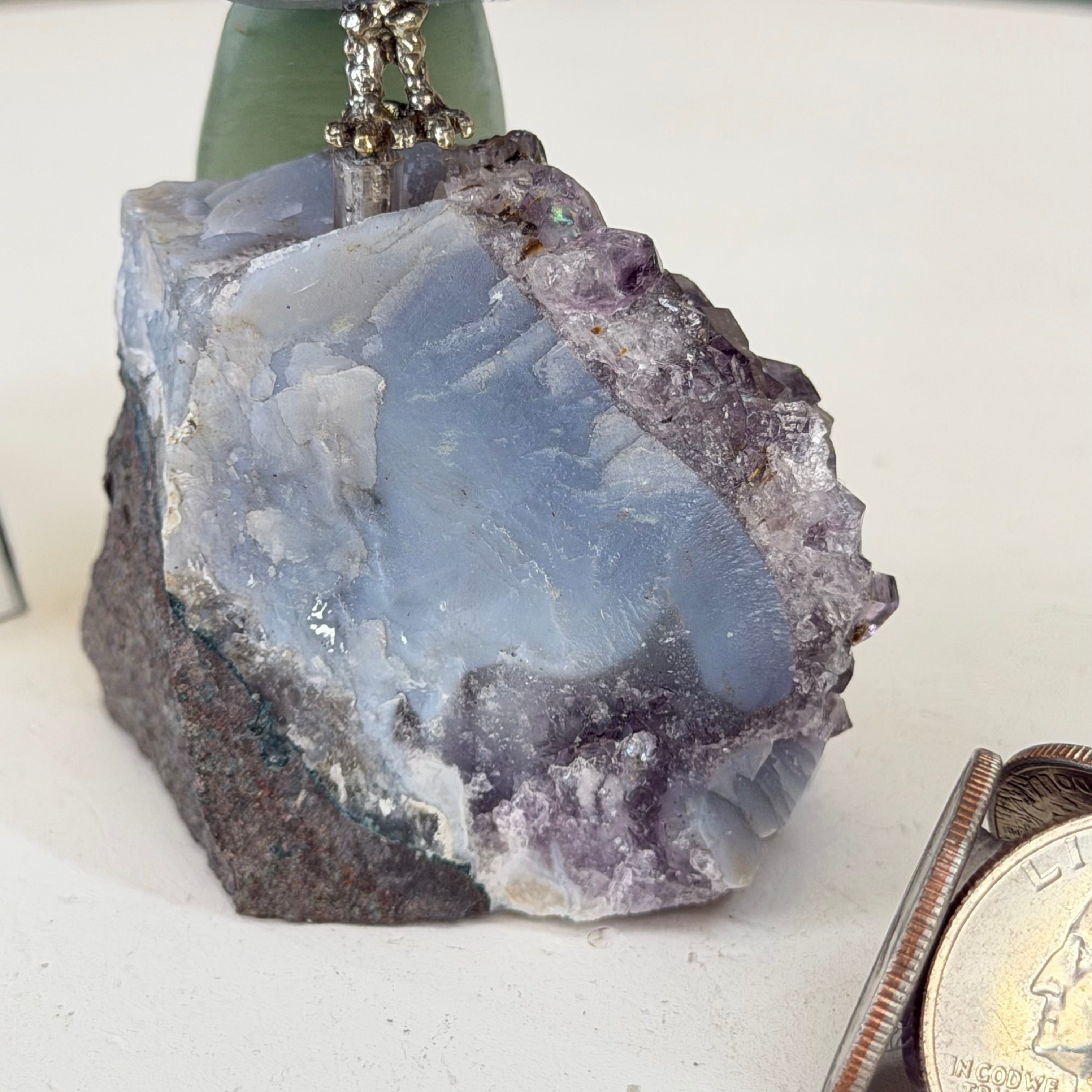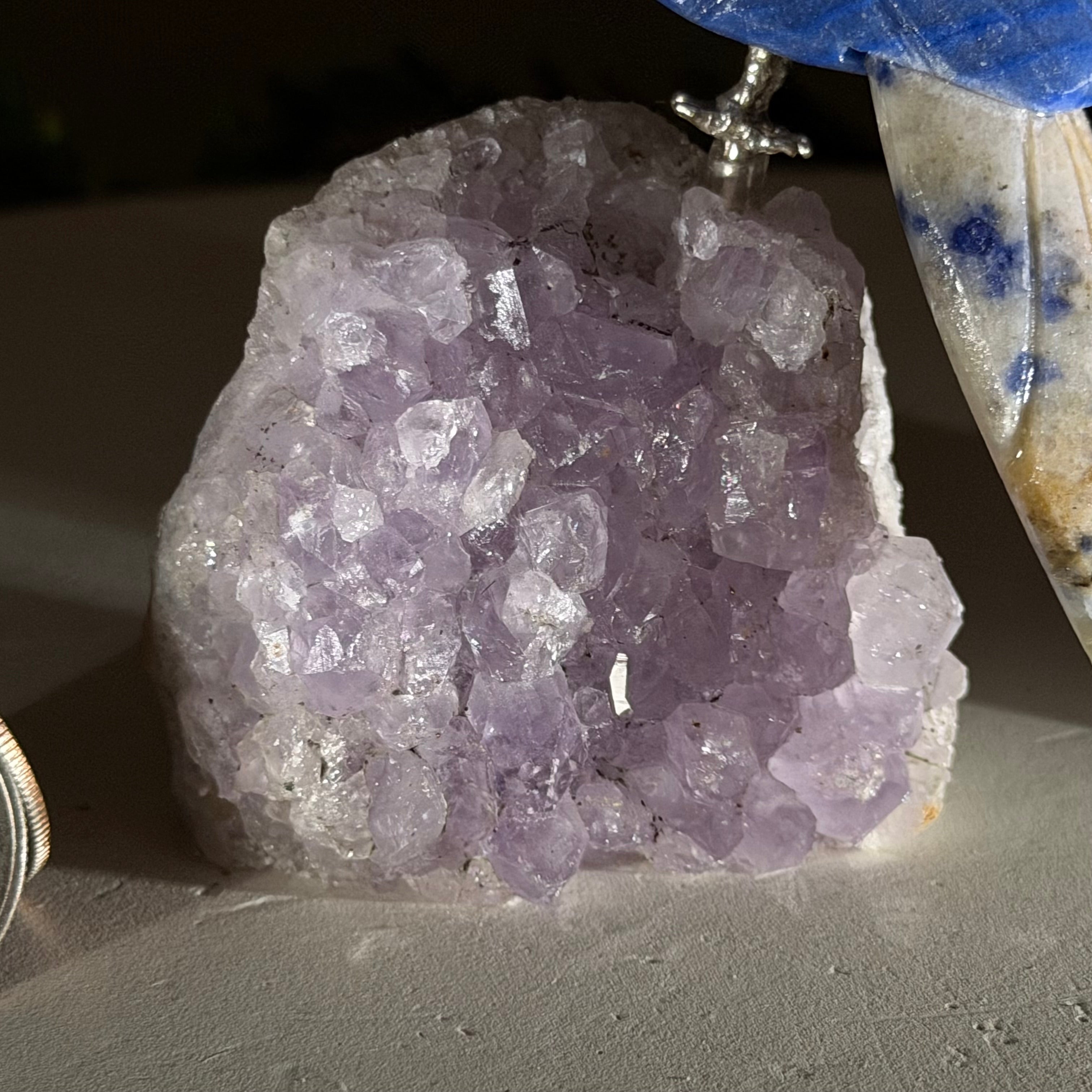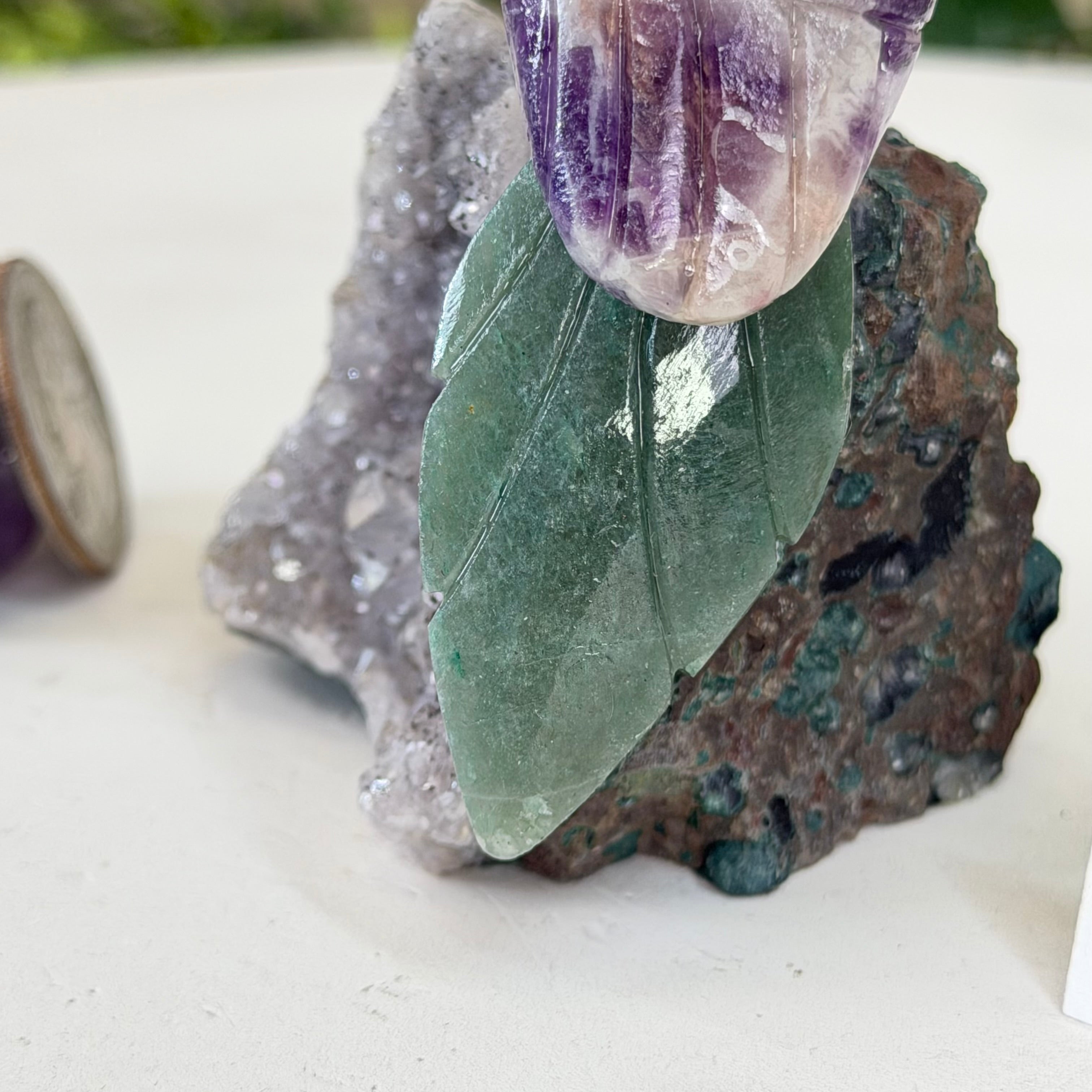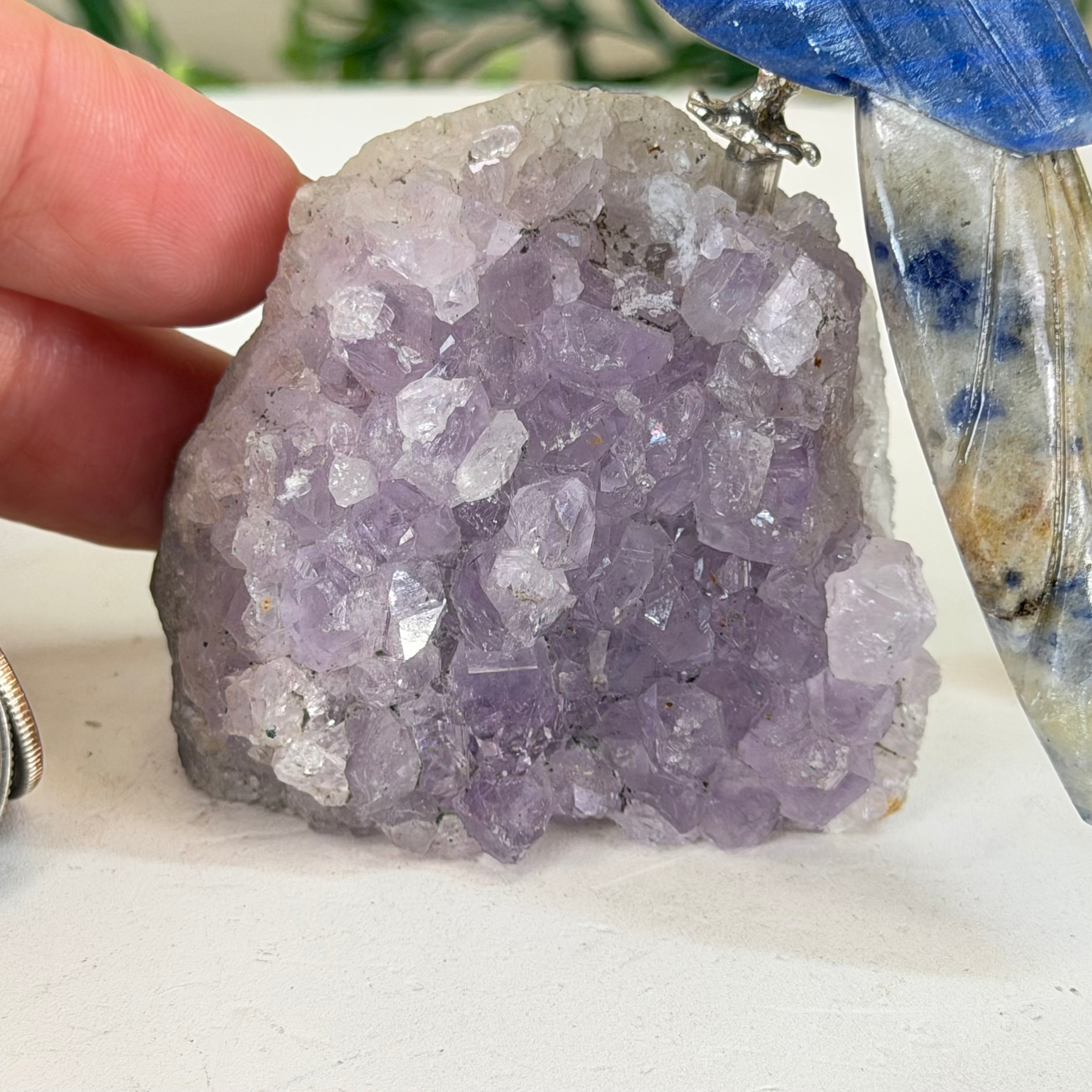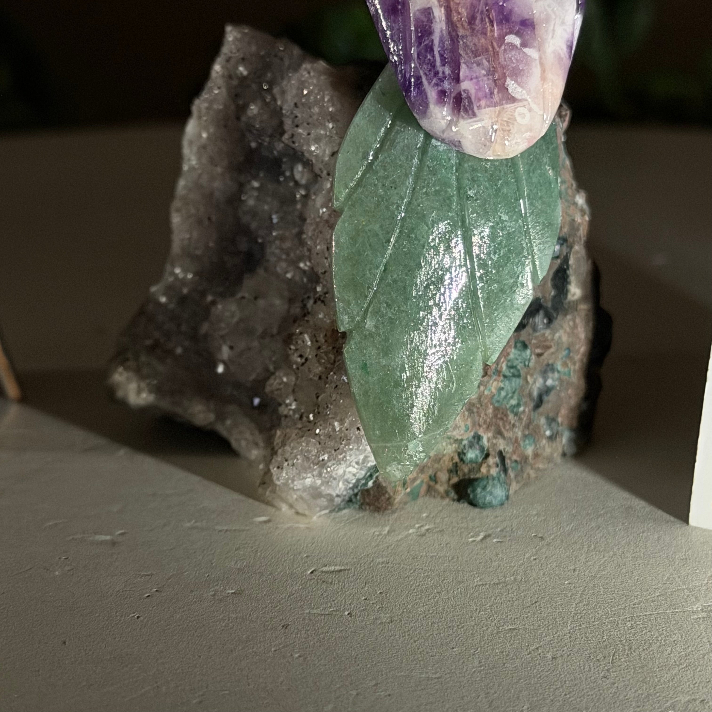 Each intricate detail of these birds is meticulously carved by skilled Brazilian artisans who have mastered the technique that combines the beauty of Brazil's gemstones with their colorful native birds into an amazing art piece. Elevate your space with the timeless charm of our Gemstone birds on an crystal cluster bases.