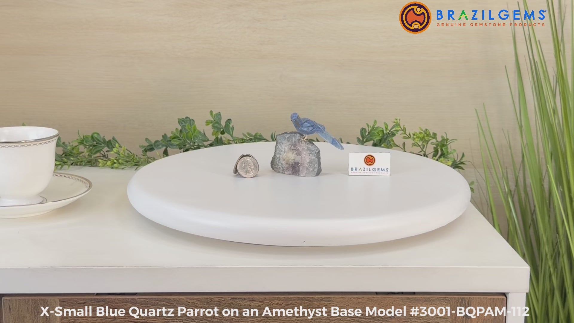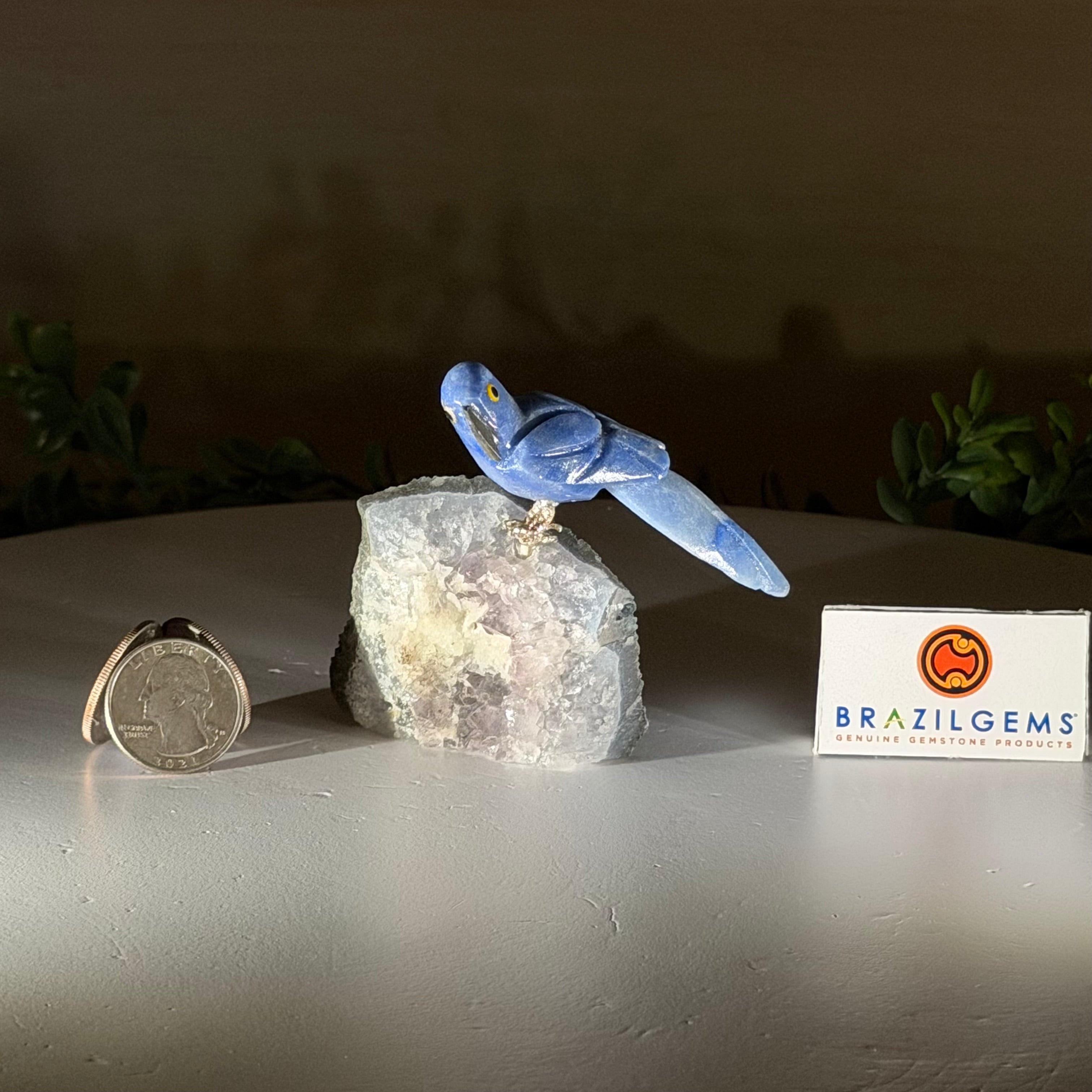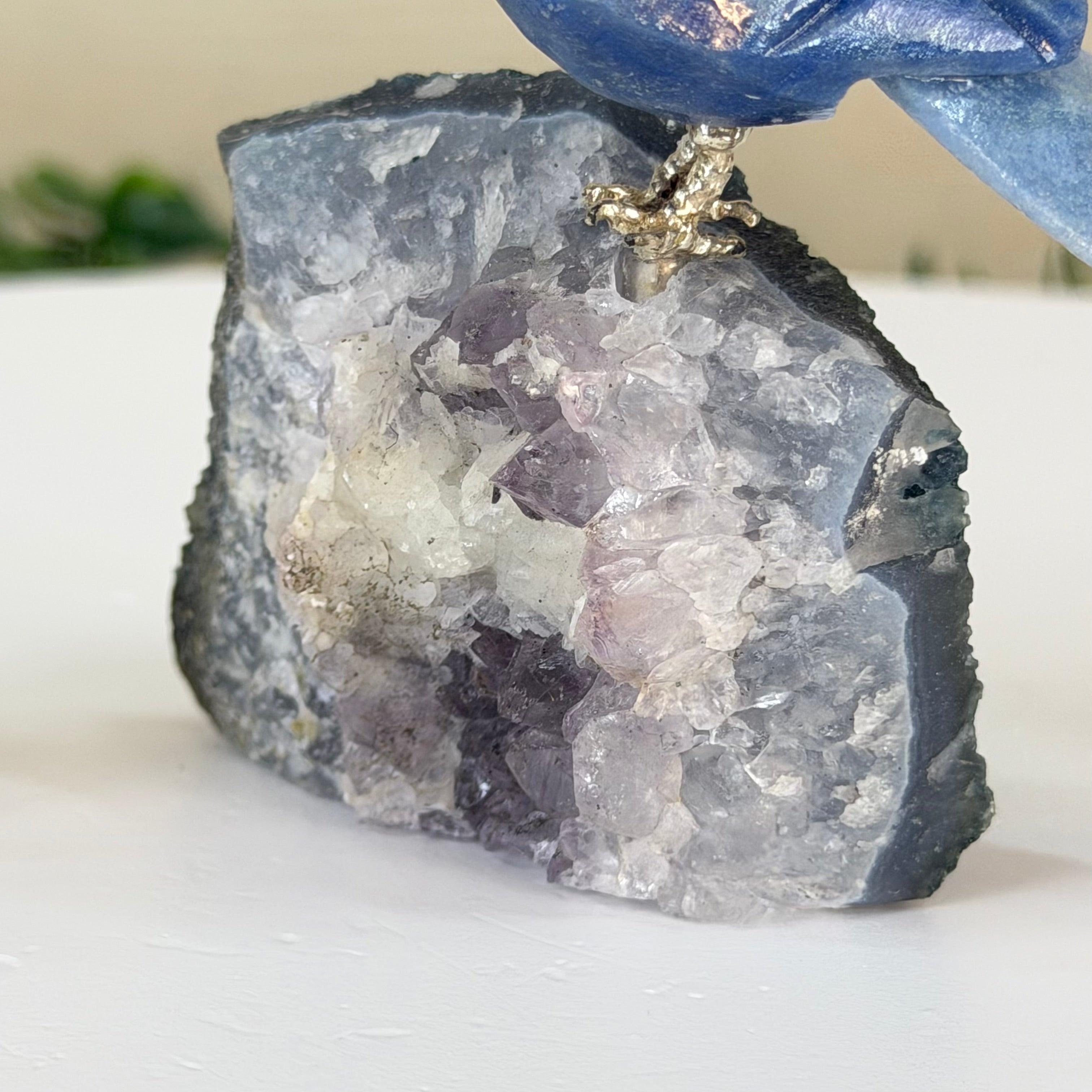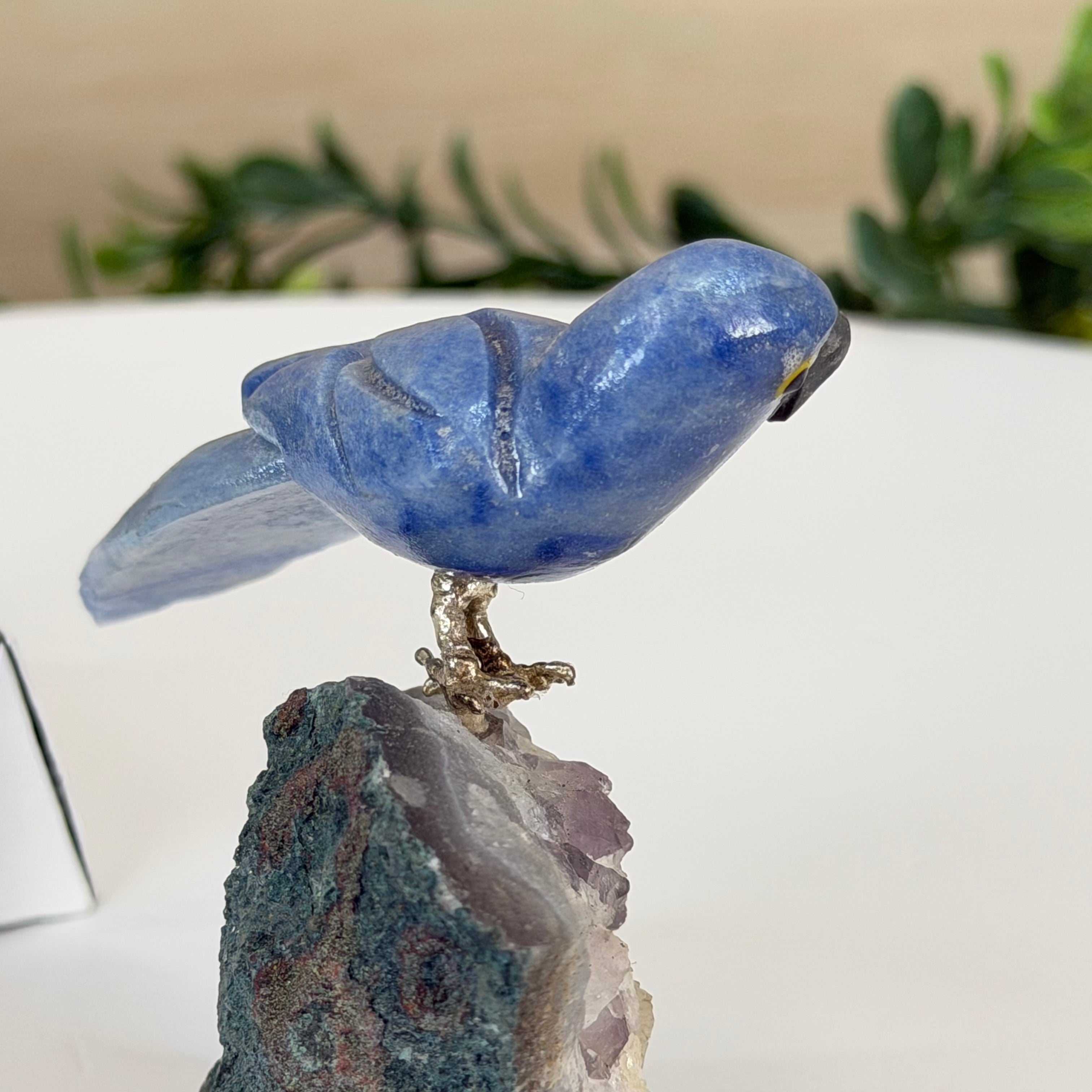 X-Small Blue Quartz Crystal Parrot, Amethyst Base #3001-BQPAM-112