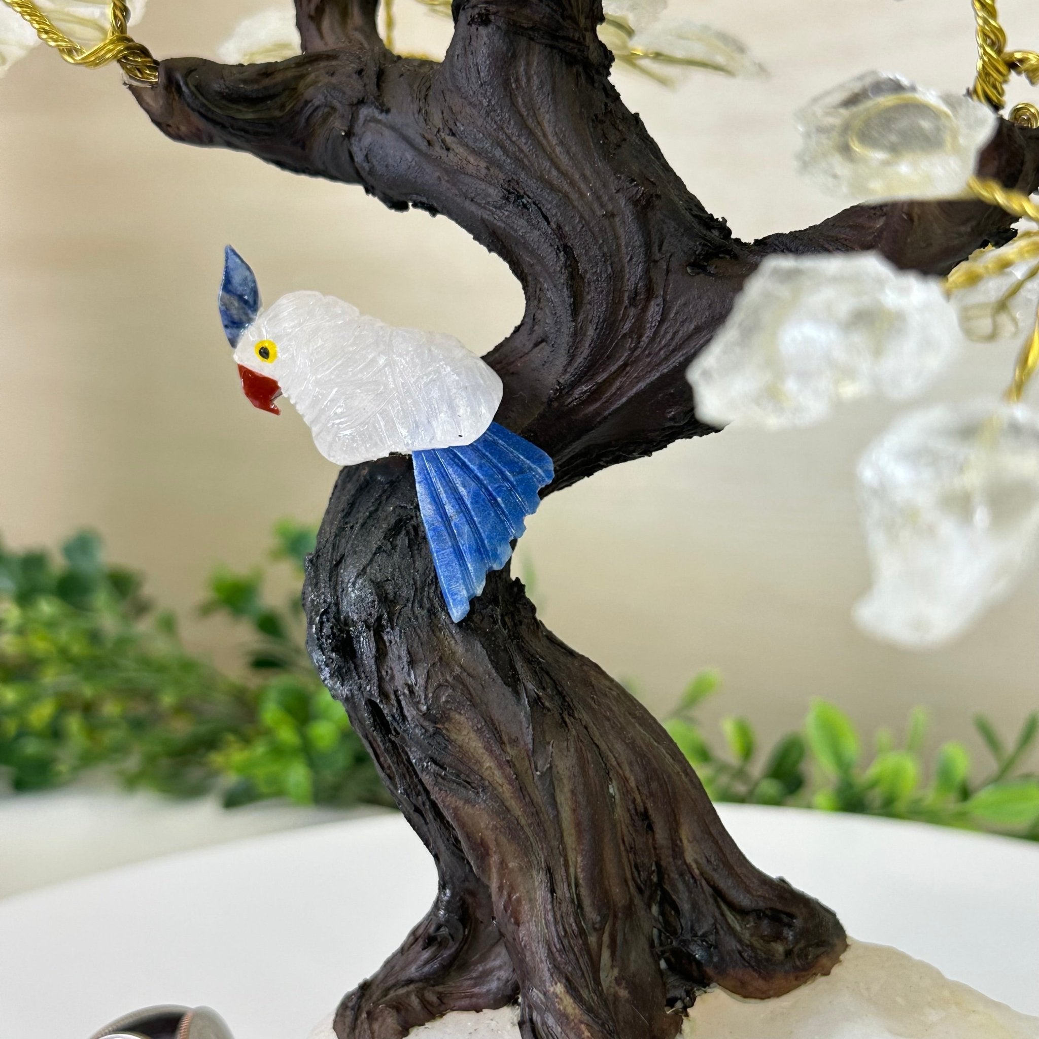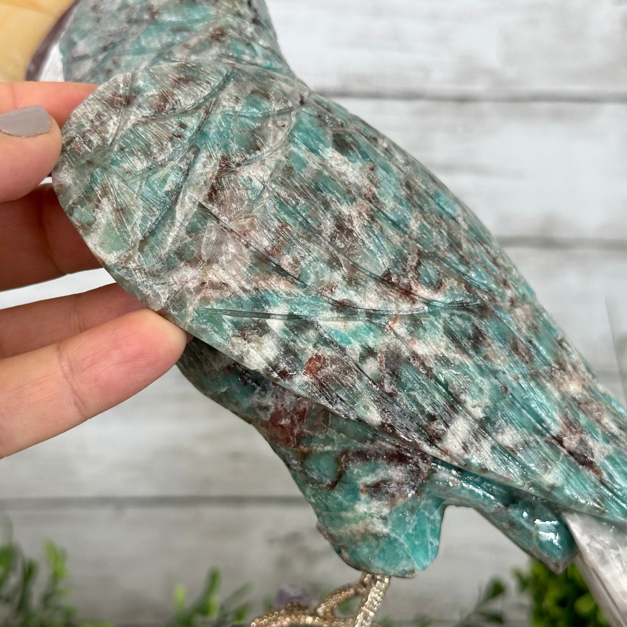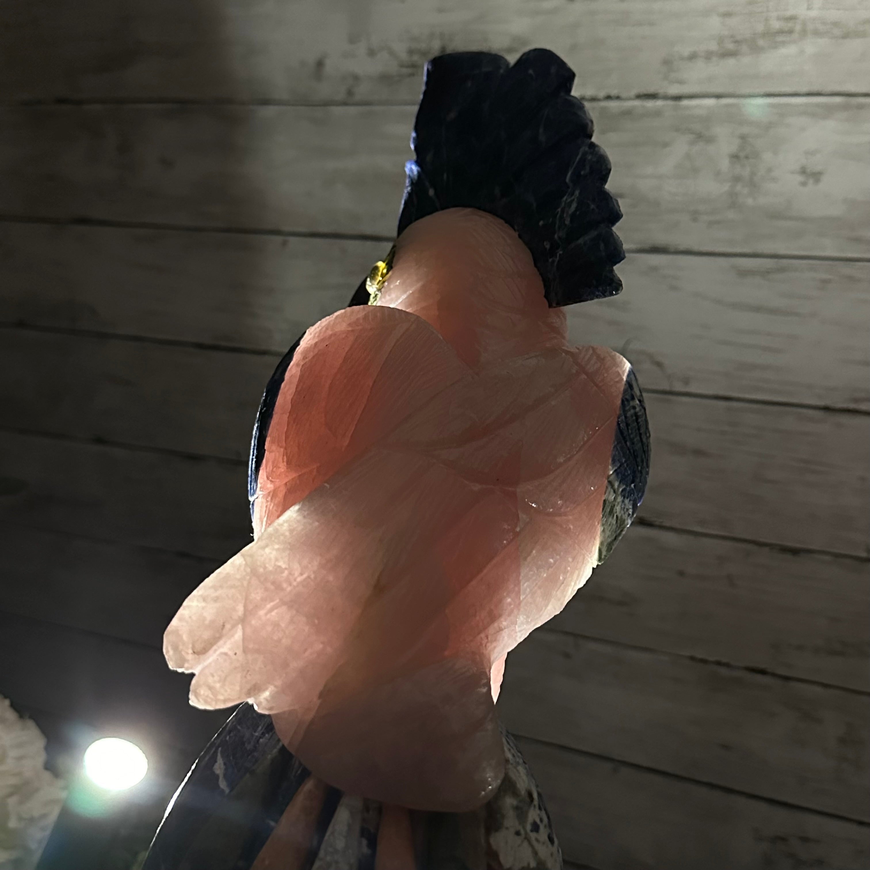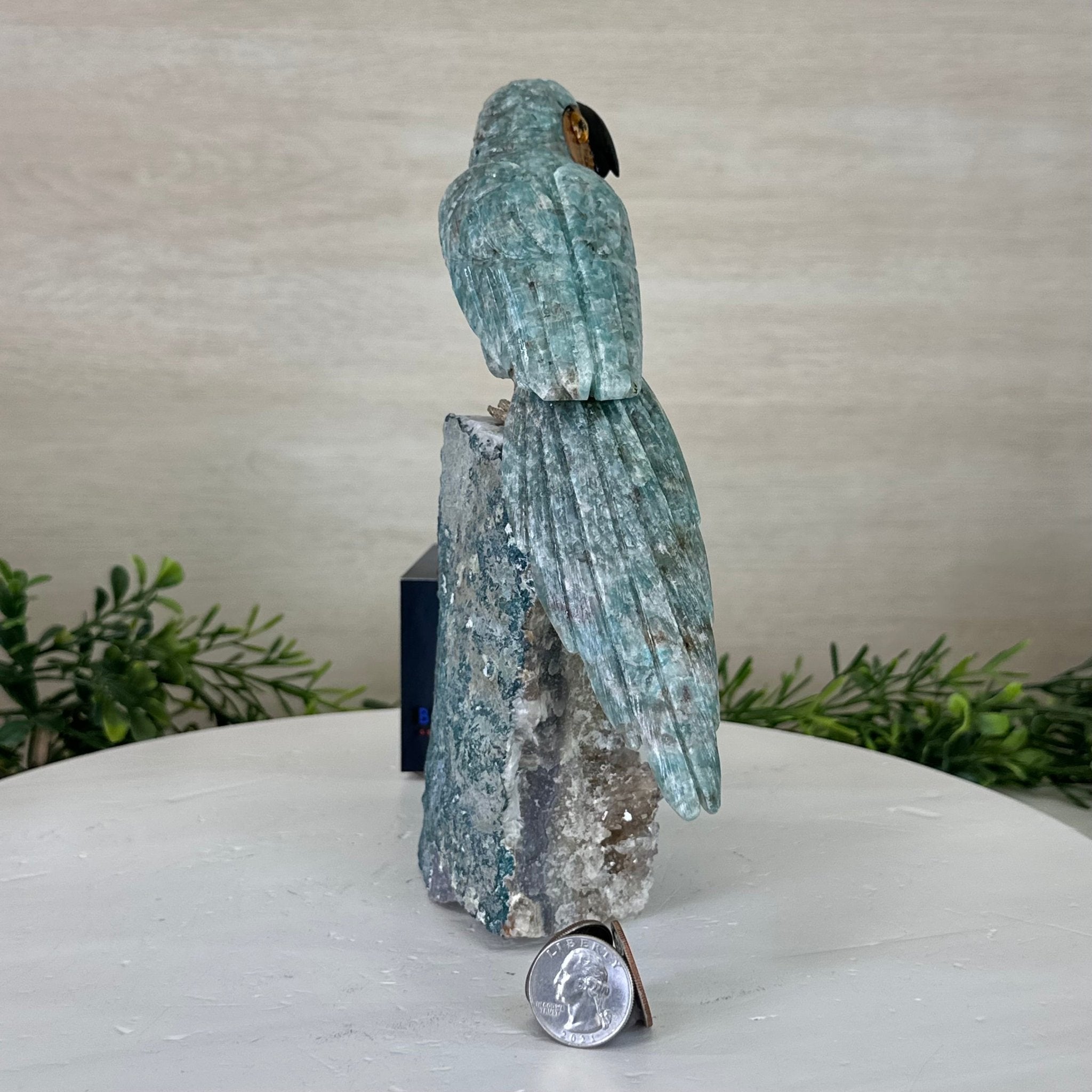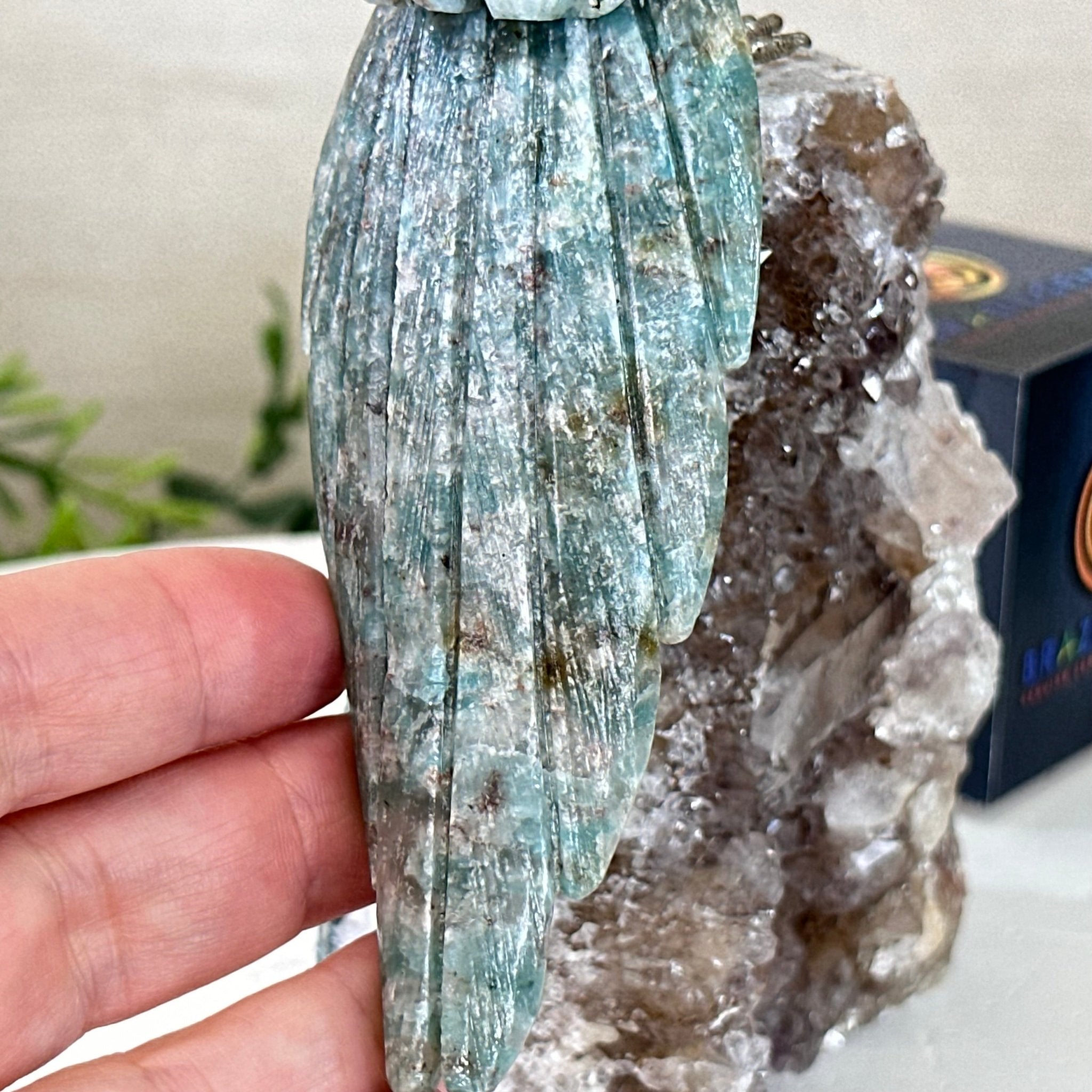 Each intricate detail of these birds is meticulously carved by skilled Brazilian artisans who have mastered the technique that combines the beauty of Brazil's gemstones with their colorful native birds into an amazing art piece. Elevate your space with the timeless charm of our Gemstone birds on an crystal cluster bases.