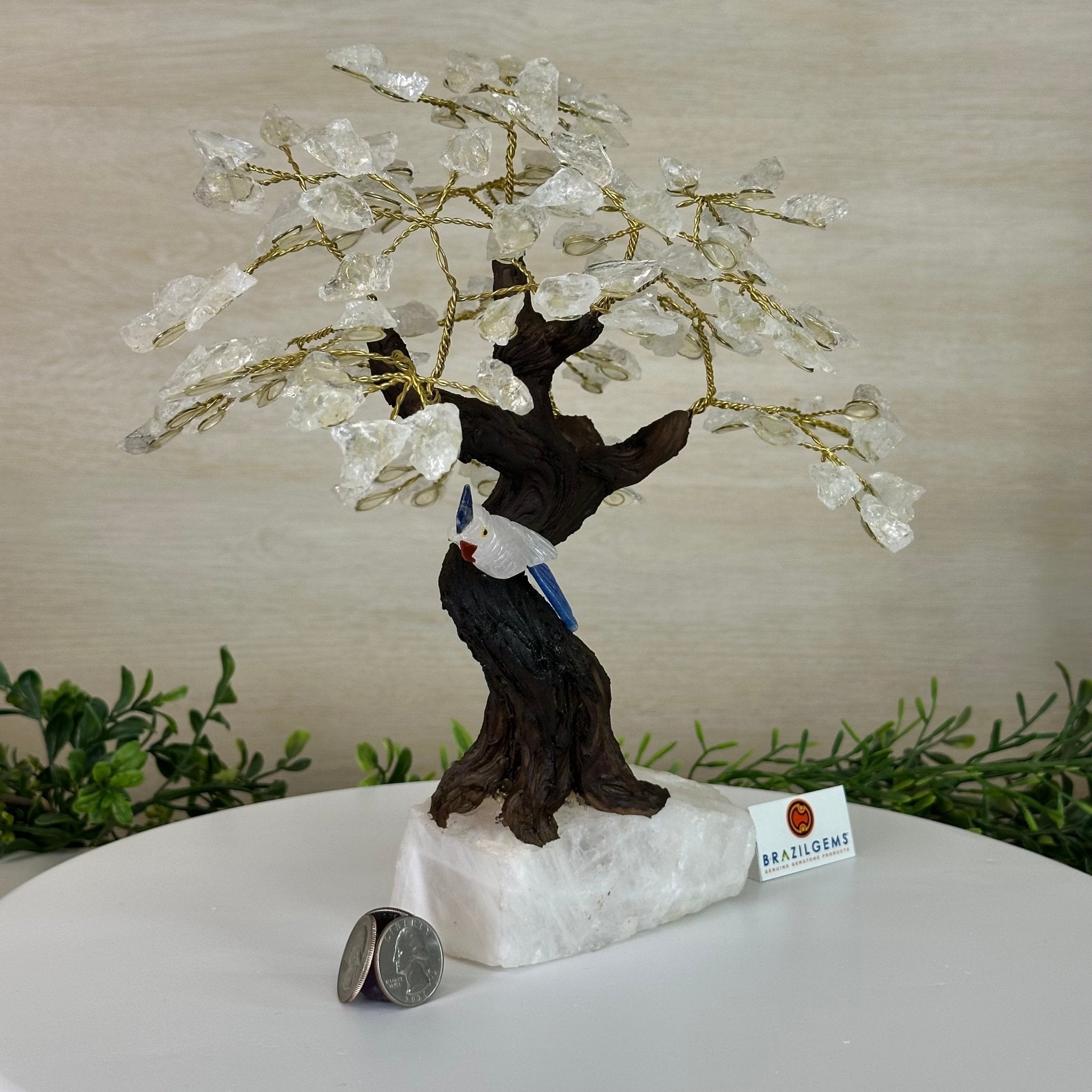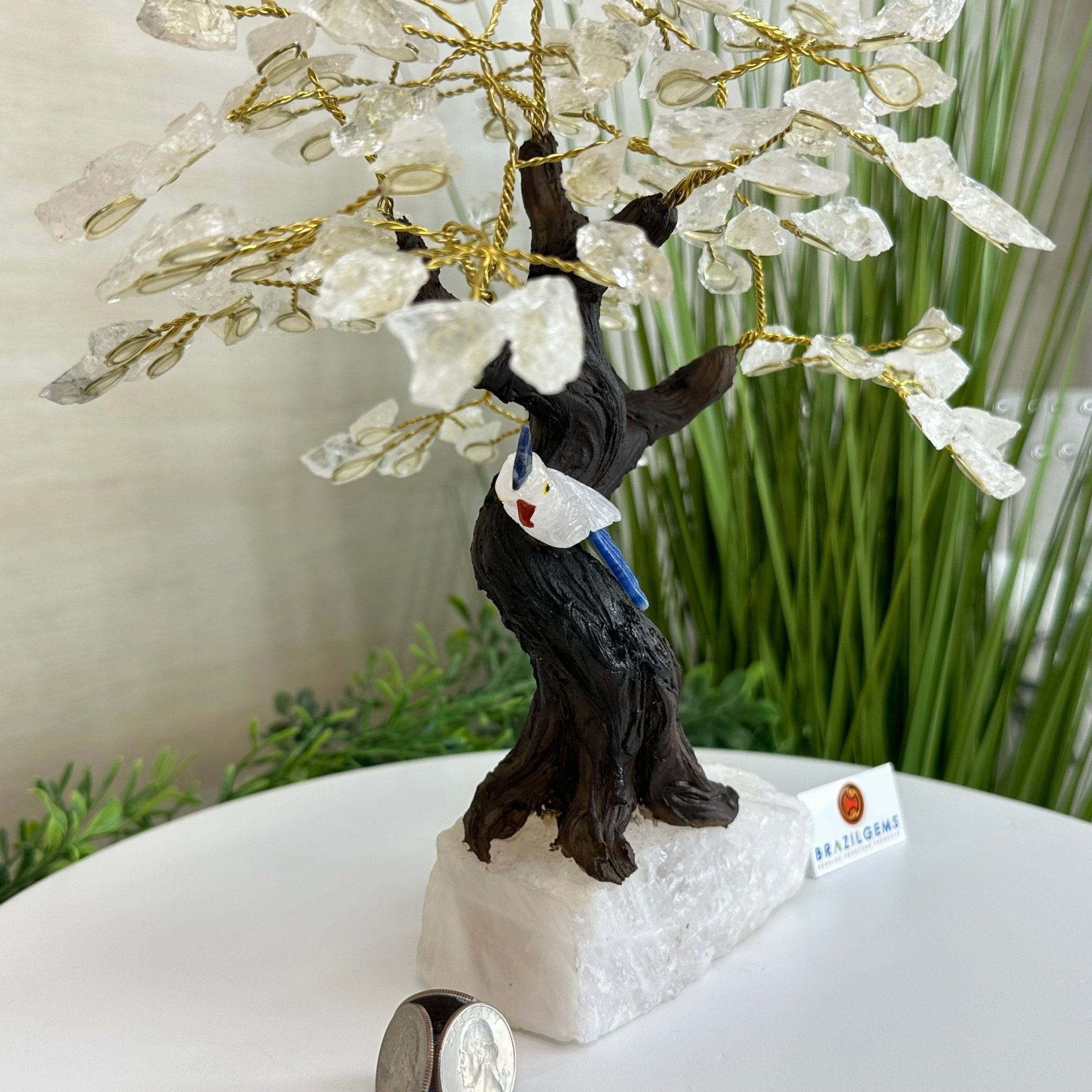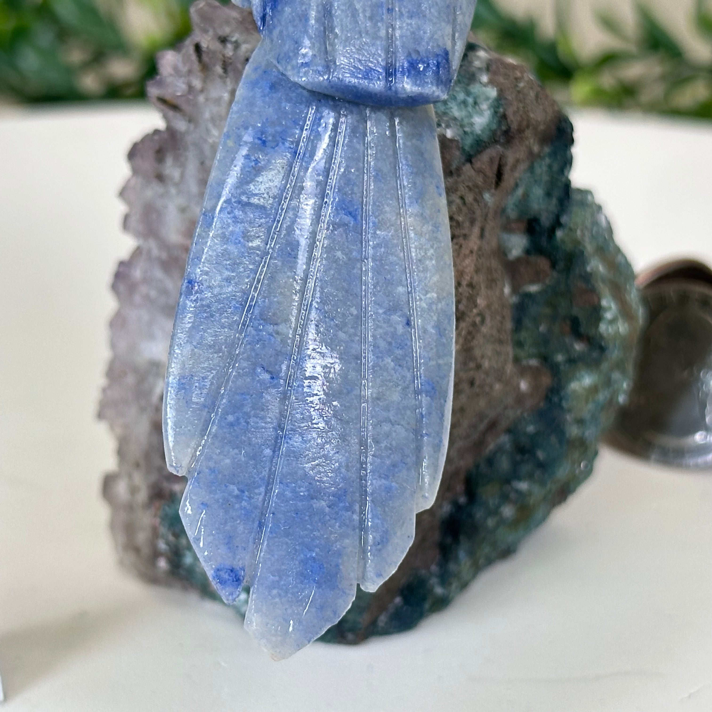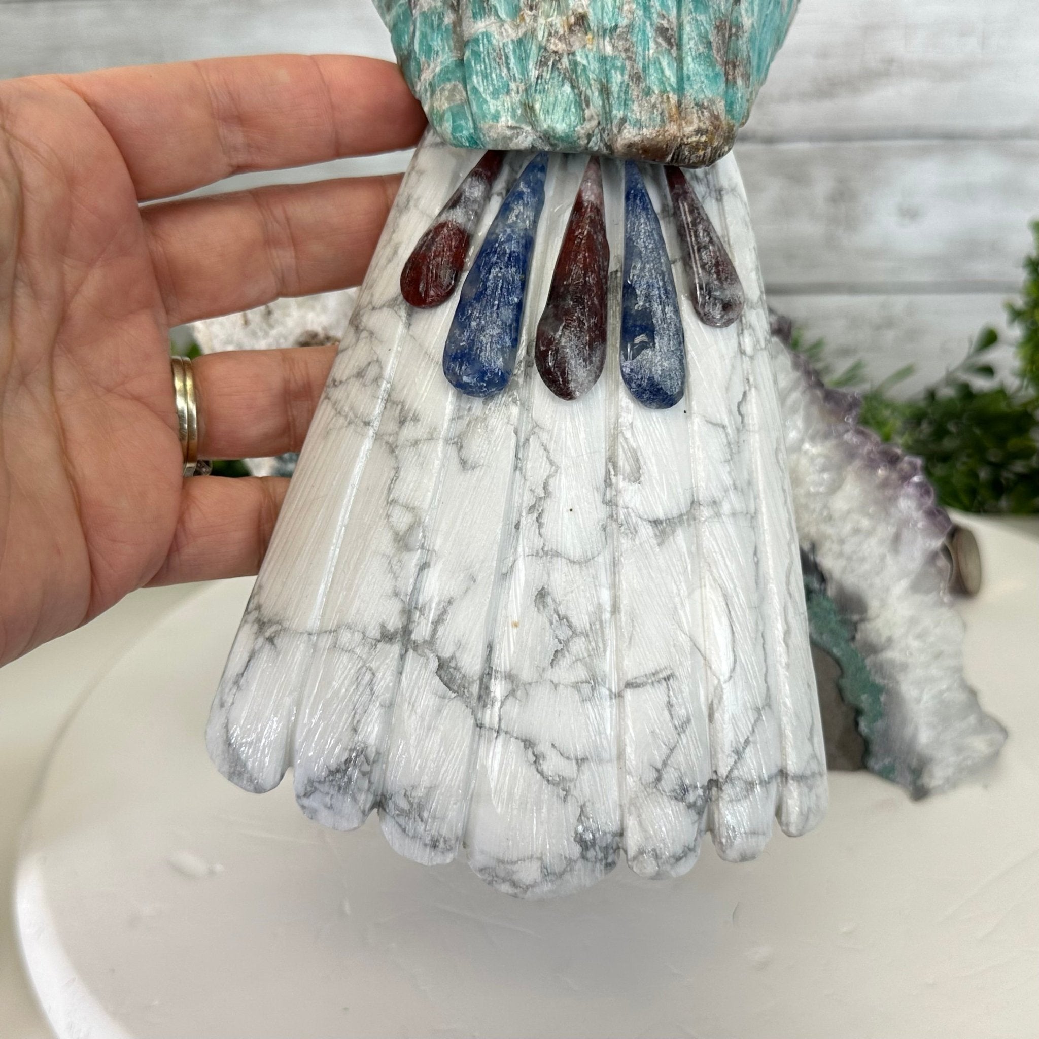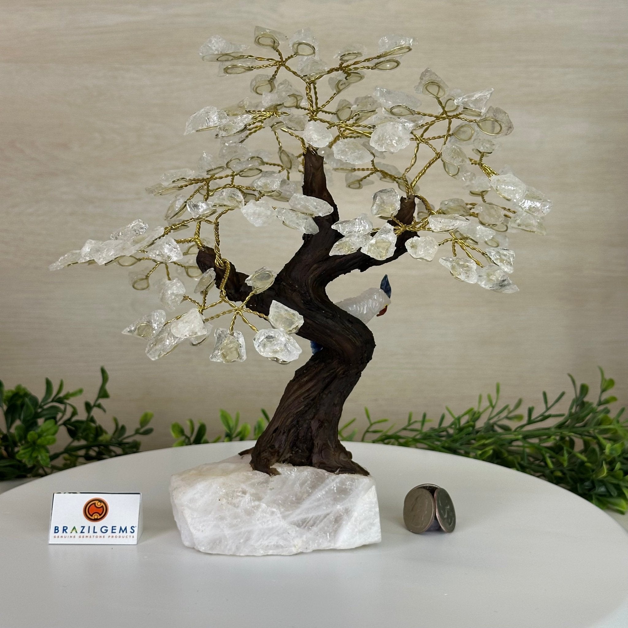 Each intricate detail of these birds is meticulously carved by skilled Brazilian artisans who have mastered the technique that combines the beauty of Brazil's gemstones with their colorful native birds into an amazing art piece. Elevate your space with the timeless charm of our Gemstone birds on an crystal cluster bases.