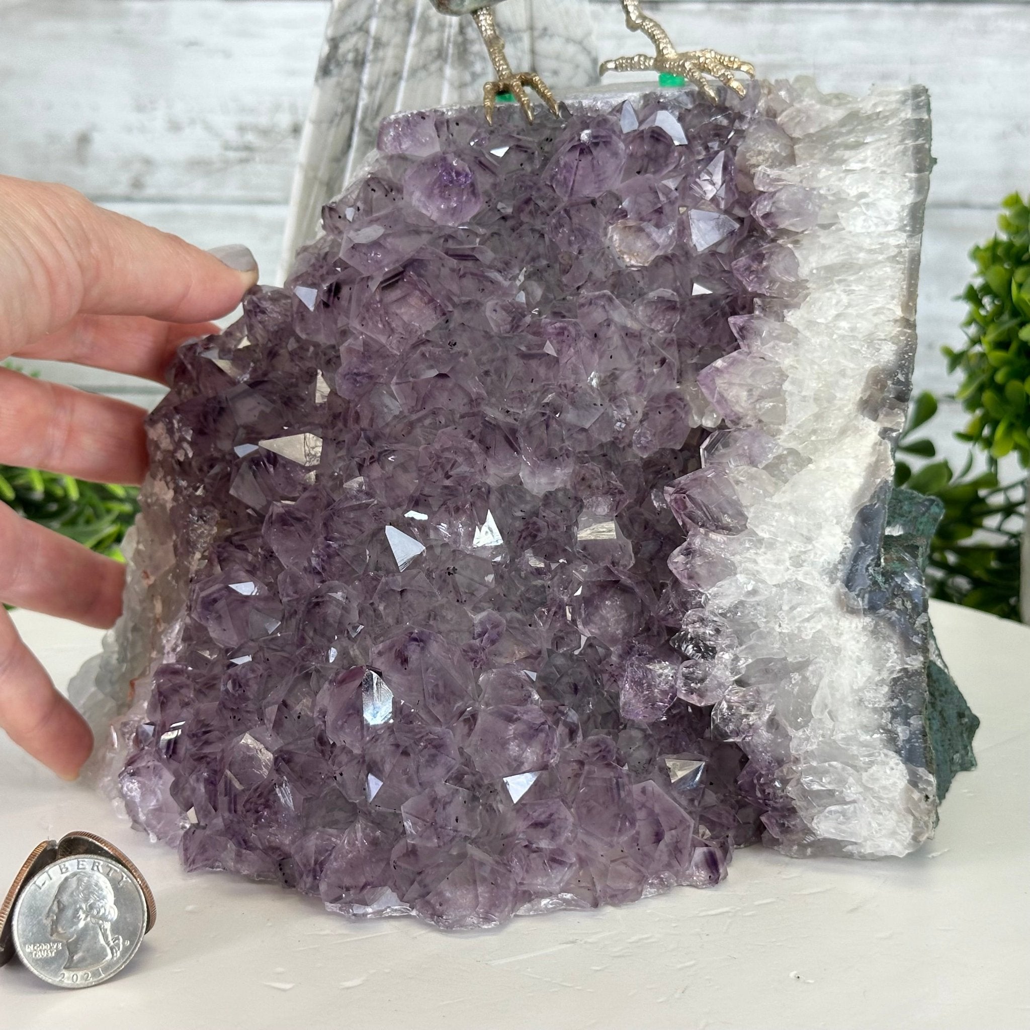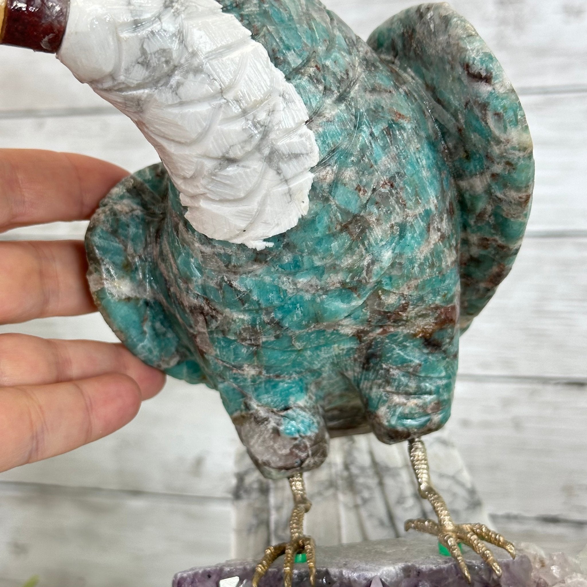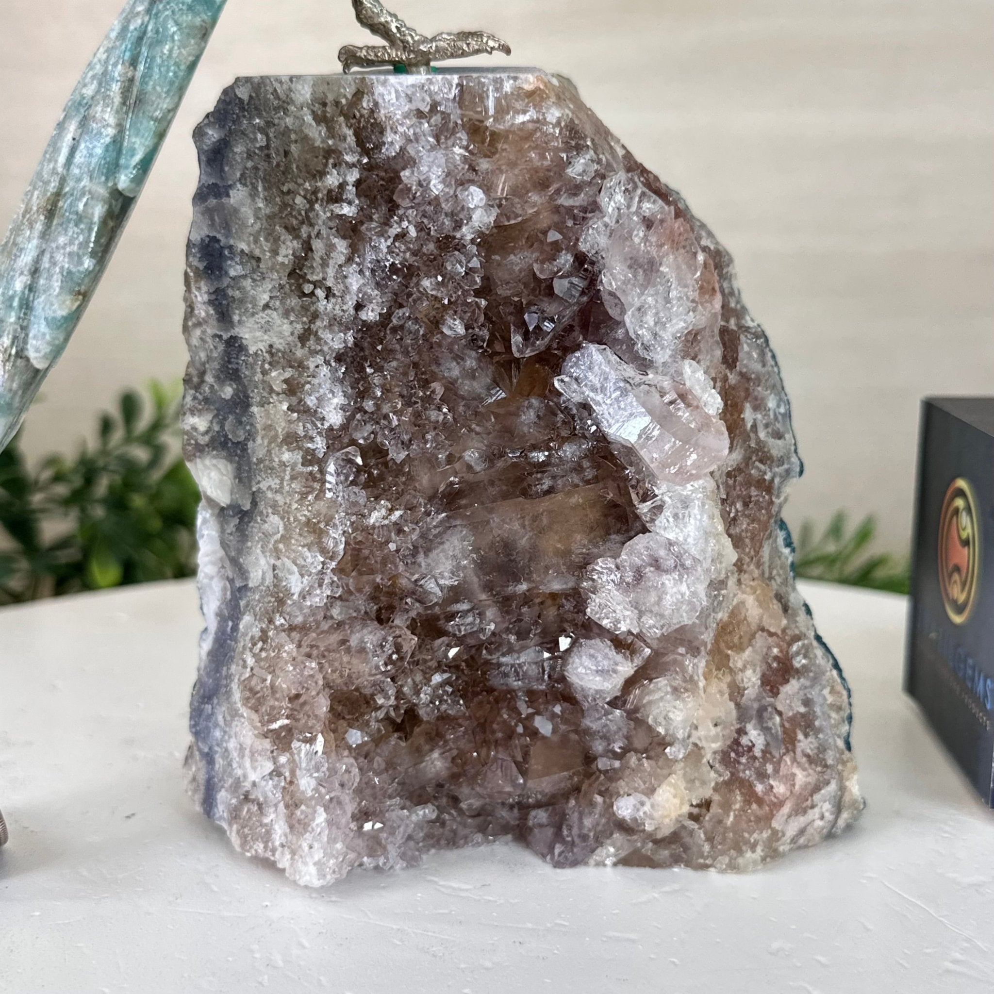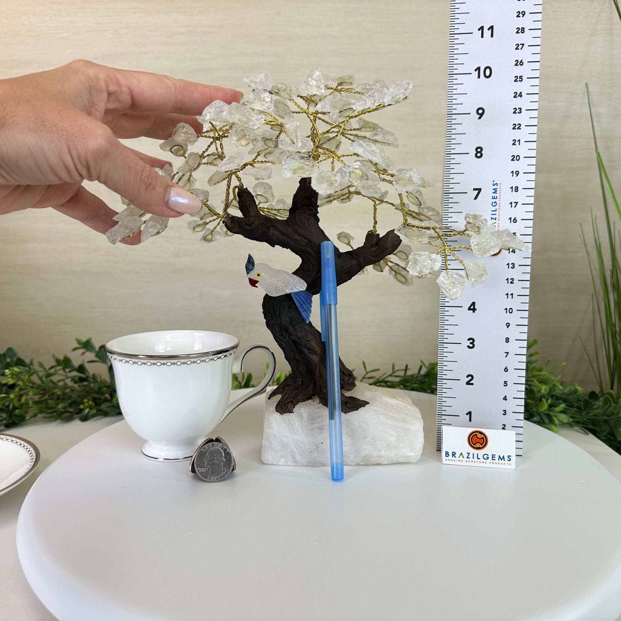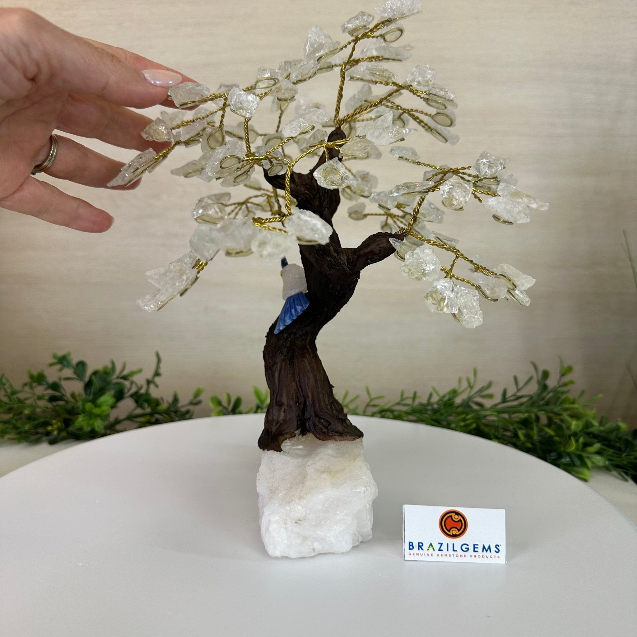 Each intricate detail of these birds is meticulously carved by skilled Brazilian artisans who have mastered the technique that combines the beauty of Brazil's gemstones with their colorful native birds into an amazing art piece. Elevate your space with the timeless charm of our Gemstone birds on an crystal cluster bases.