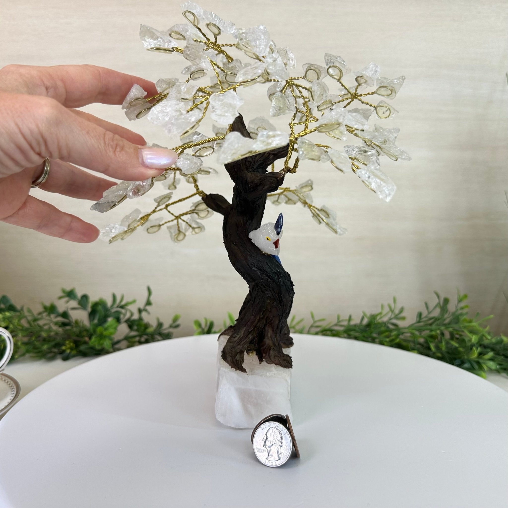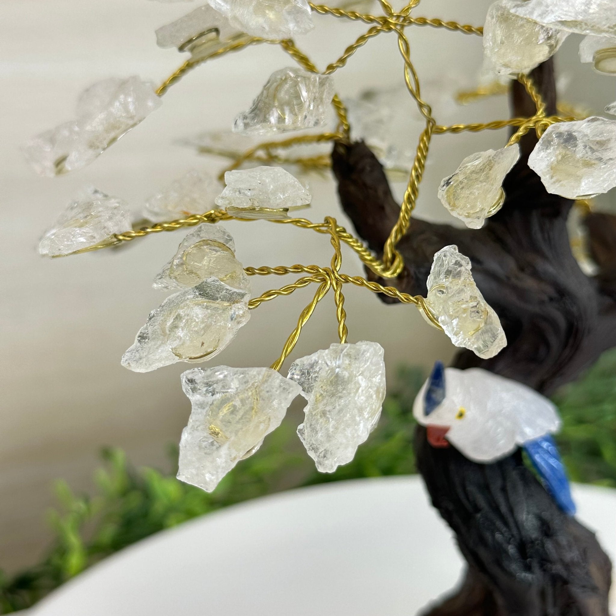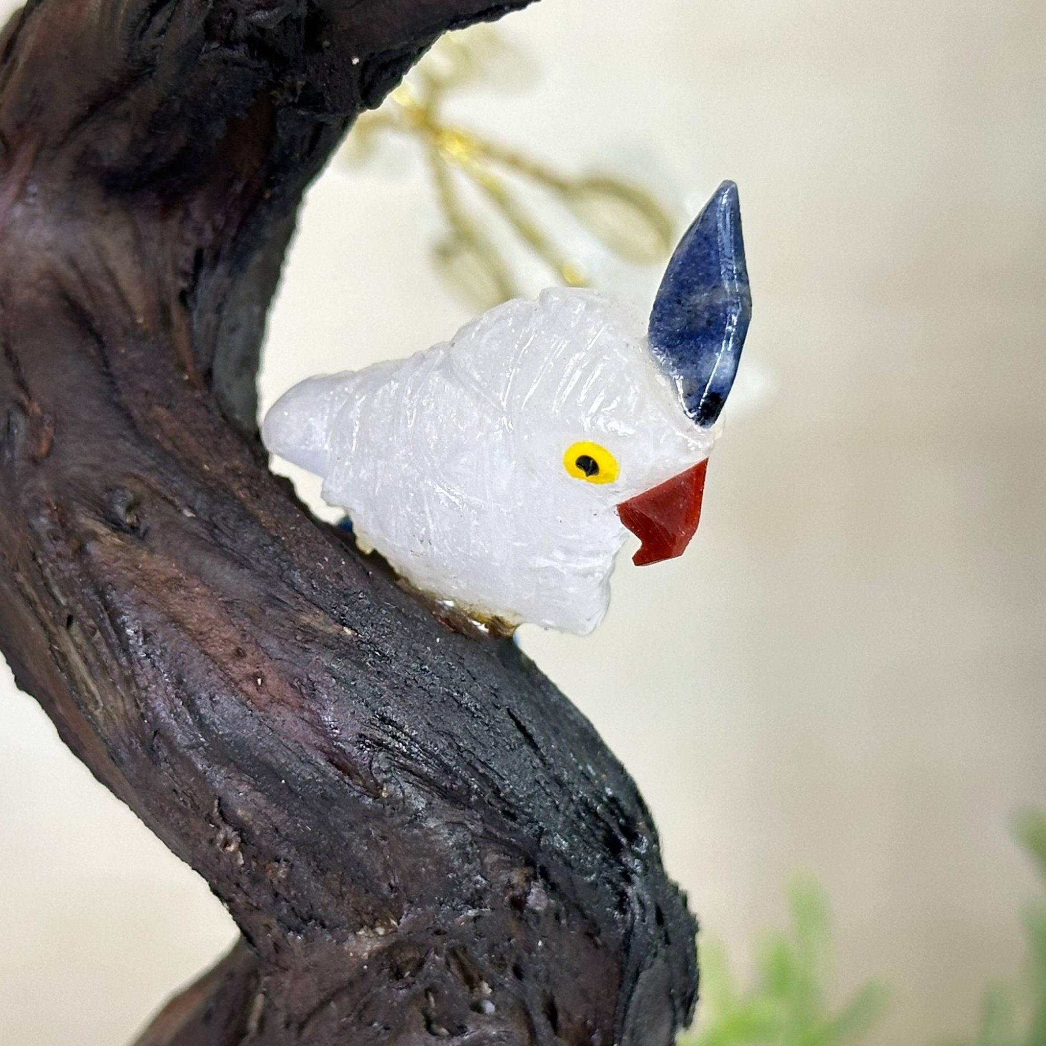 Marvel at our exquisite hand-carved Crystal Birds set on captivating Crystal cluster bases, a harmonious blend of nature, art, and elegance. Crafted from premium gemstones for their bodies, beaks, crests, tails and eyes and adorned with cute little metal feet, these stunning sculptures capture the essence of nature's beauty.