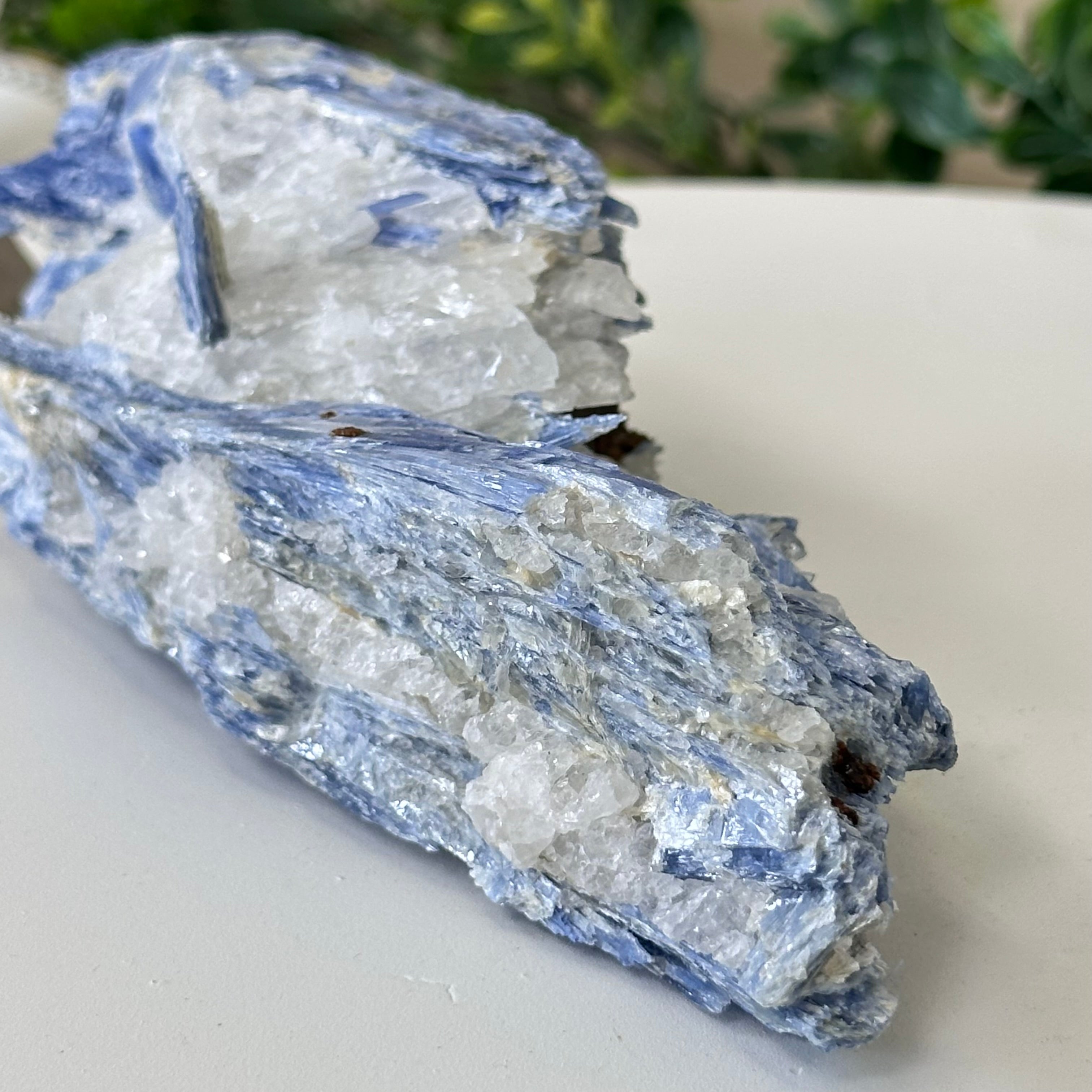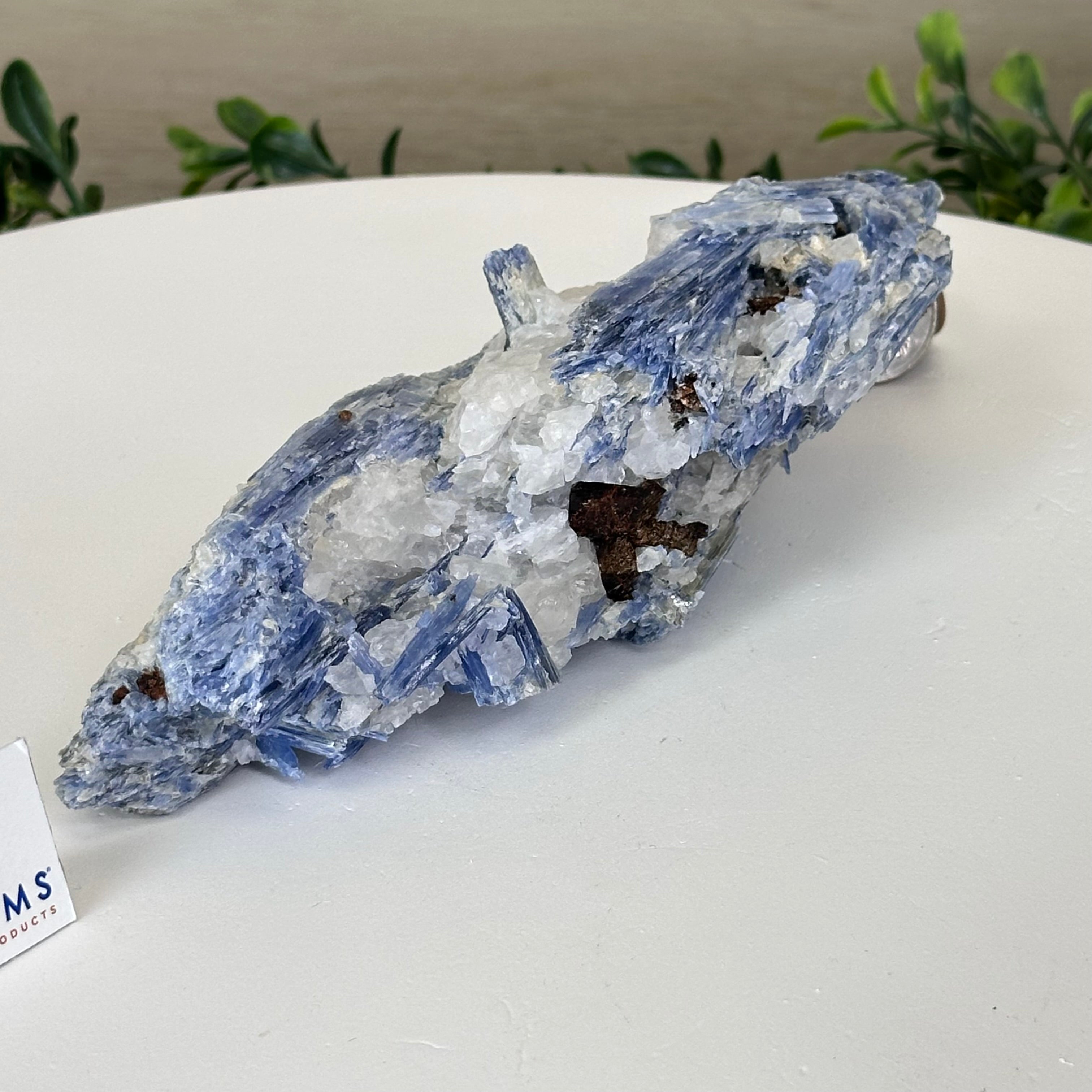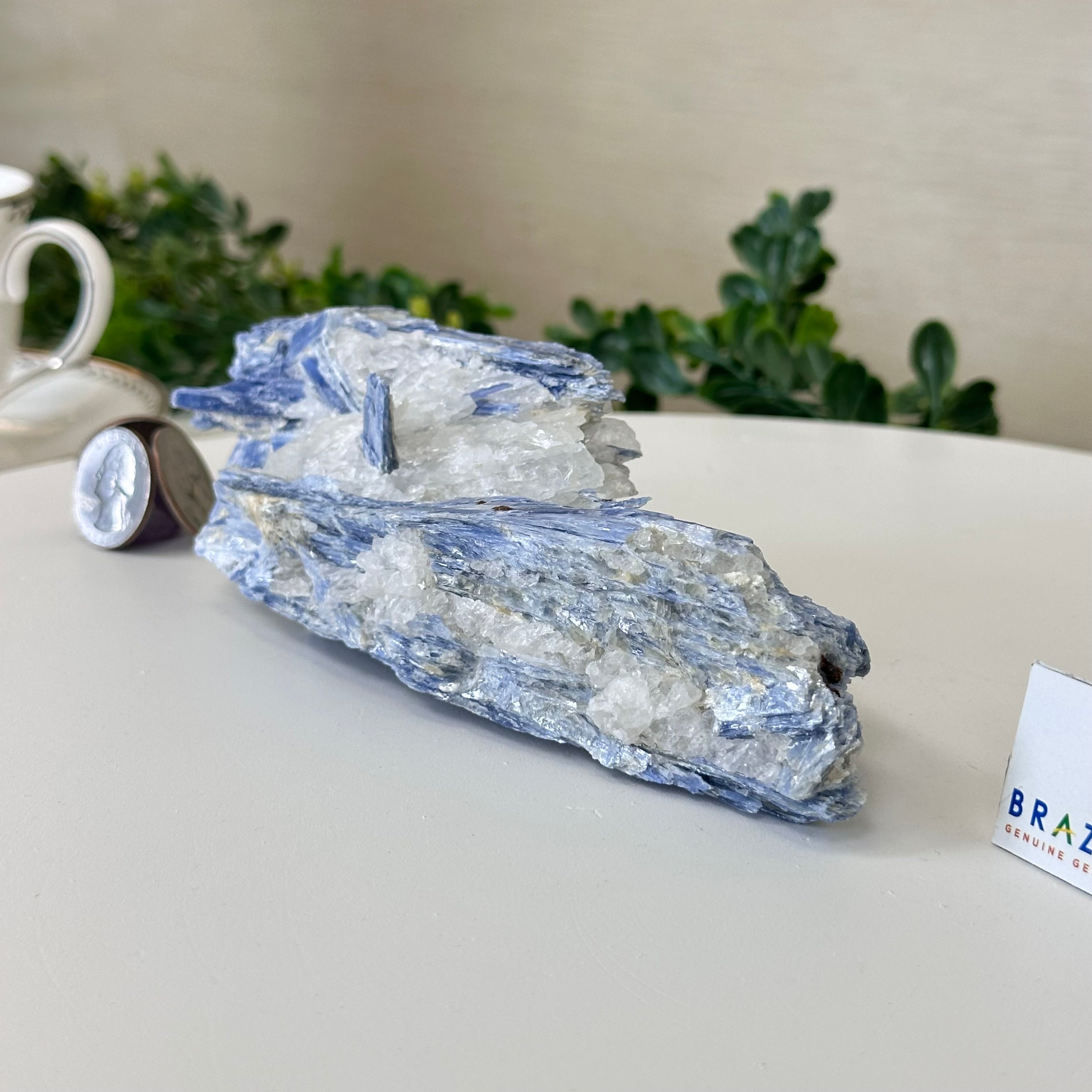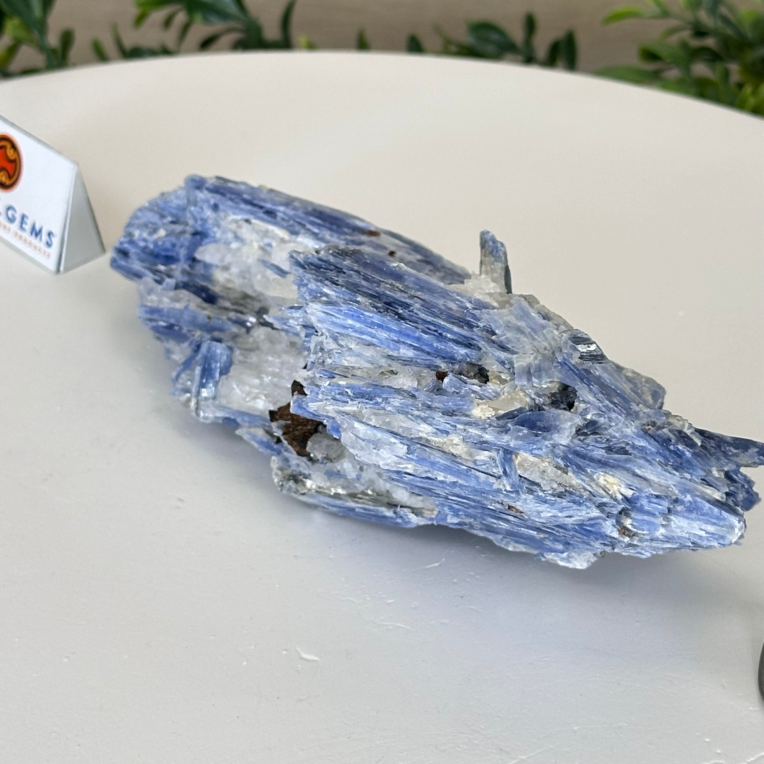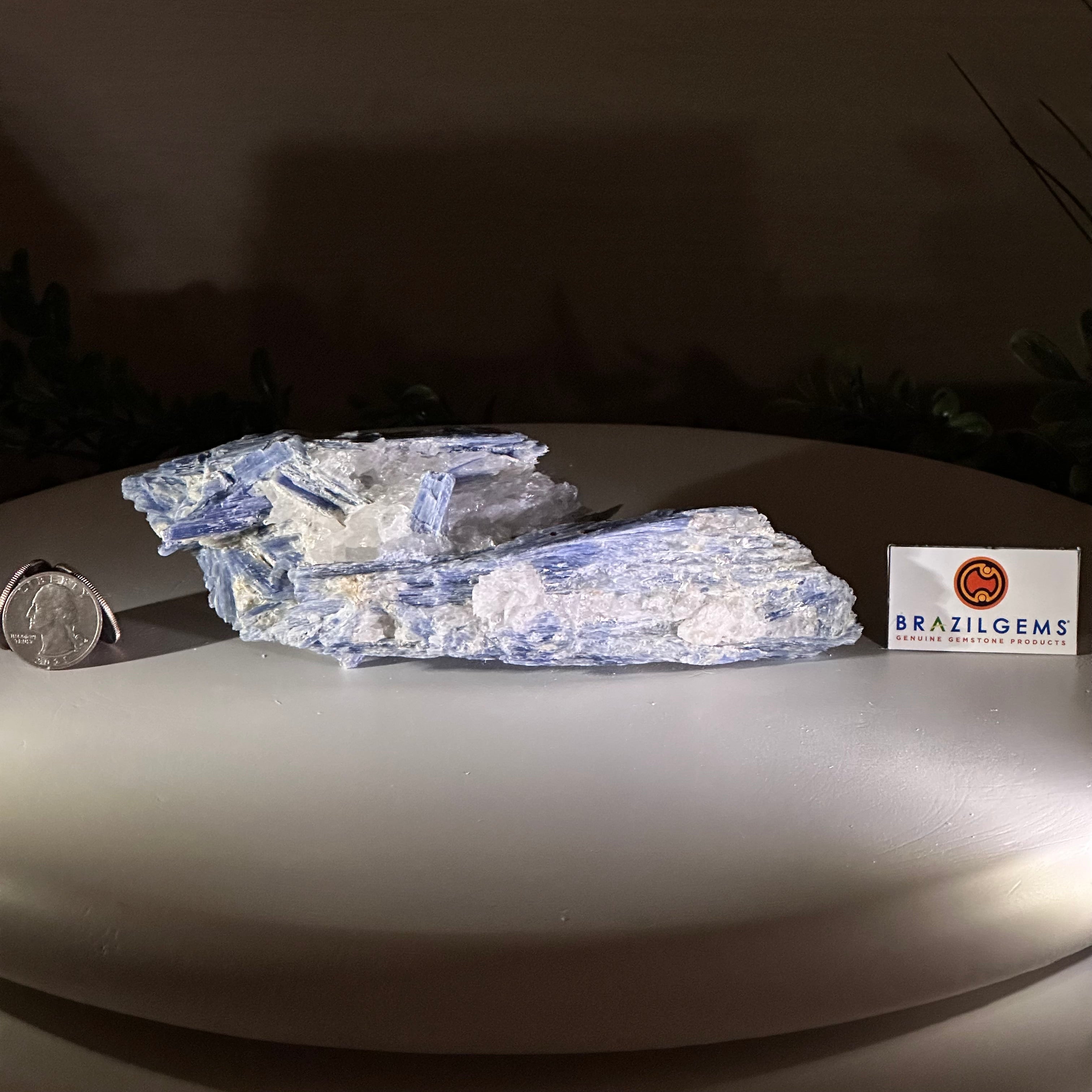 Disclaimer: This is a natural gemstone crystal sold by Brazil Gems® as is and as you see it in its images and video. It is the exact one you will receive. It may contain natural imperfections and/or imperfections, broken edges and repairs from the extraction and prepping processes. Kyanite is a very delicate and brittle gemstone with delicate crystal blades jutting out and handling the piece can inevitably cause its points/blades to break off in small pieces. It's best to handle it as little as possible. At Brazil Gems® we make every effort to get measurements as exact as possible but they are done by human hands and eyes and therefore may have minor discrepancies.