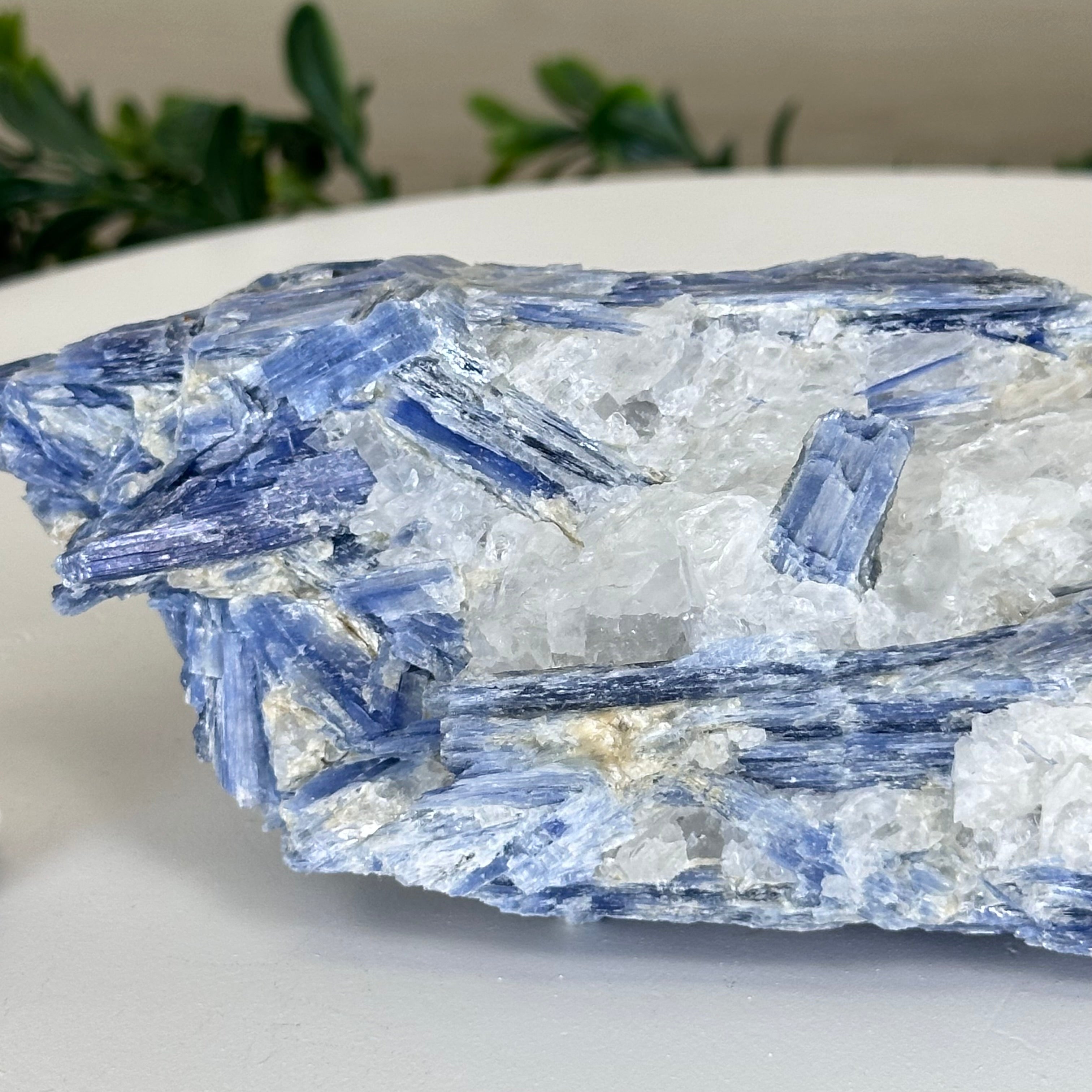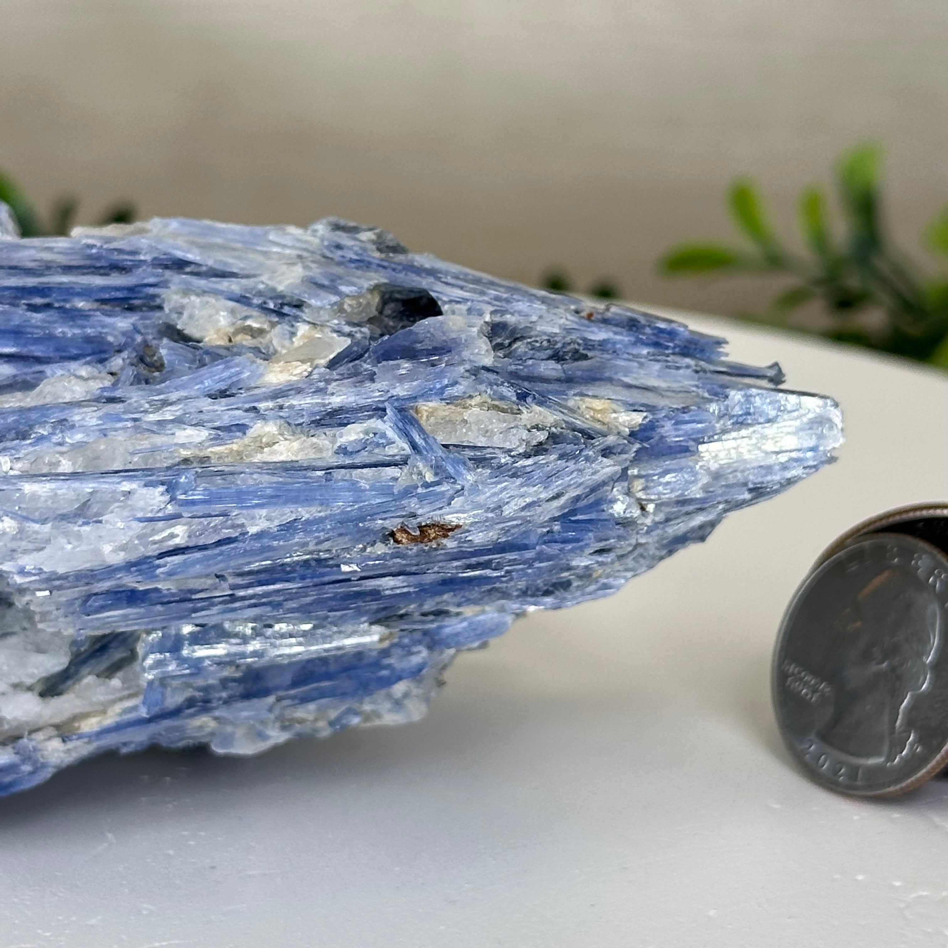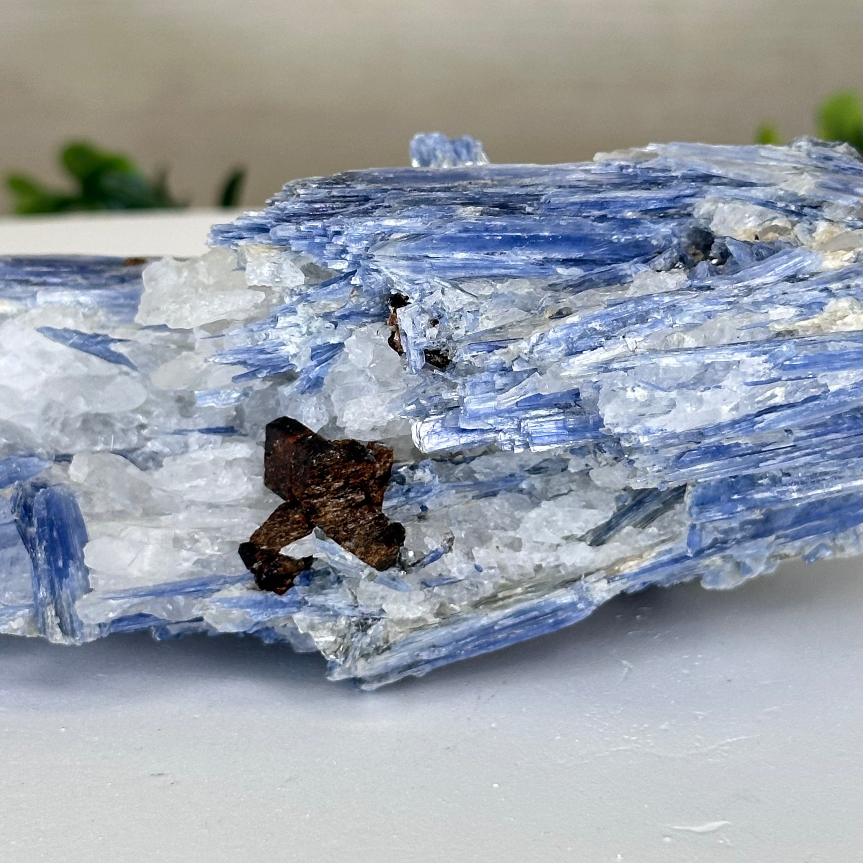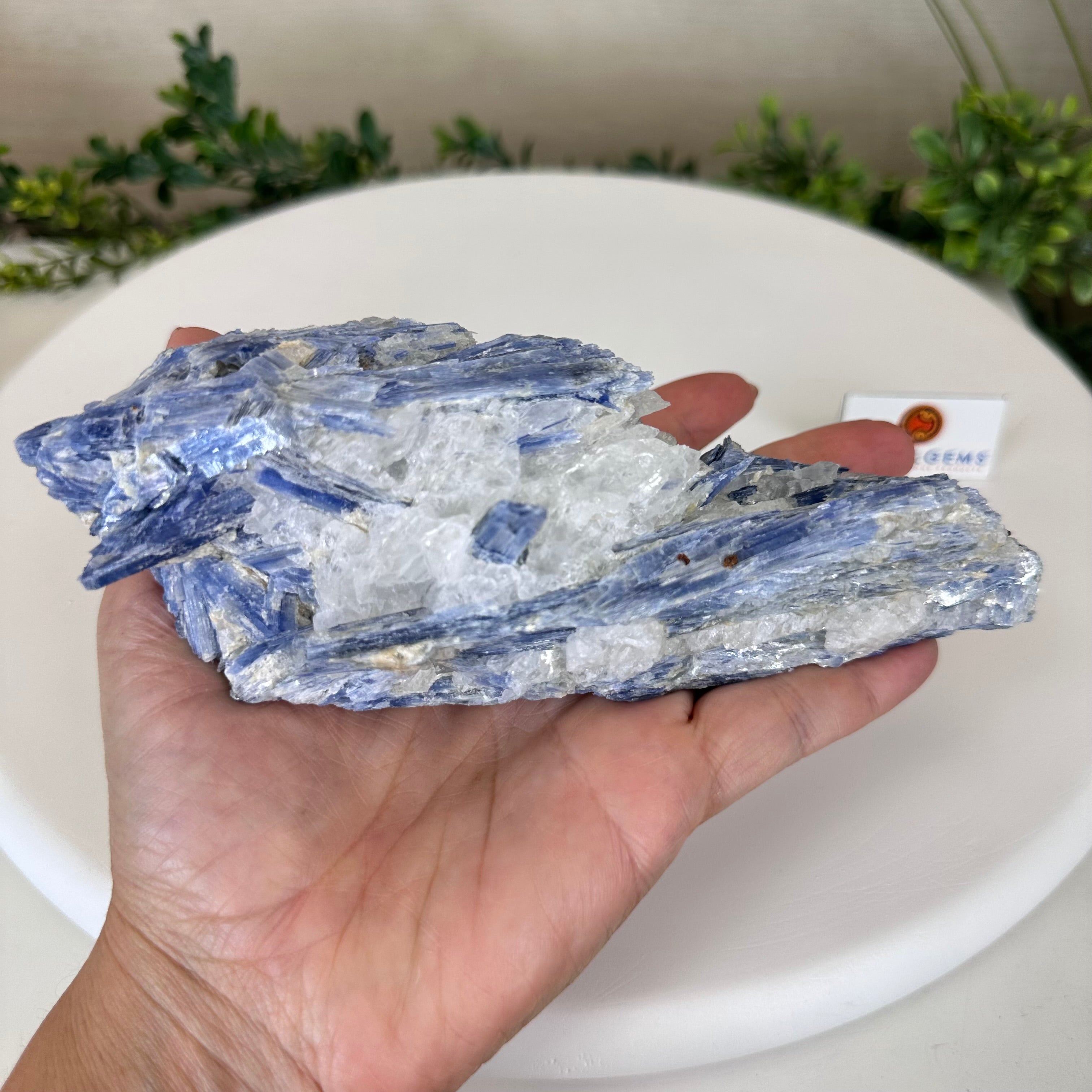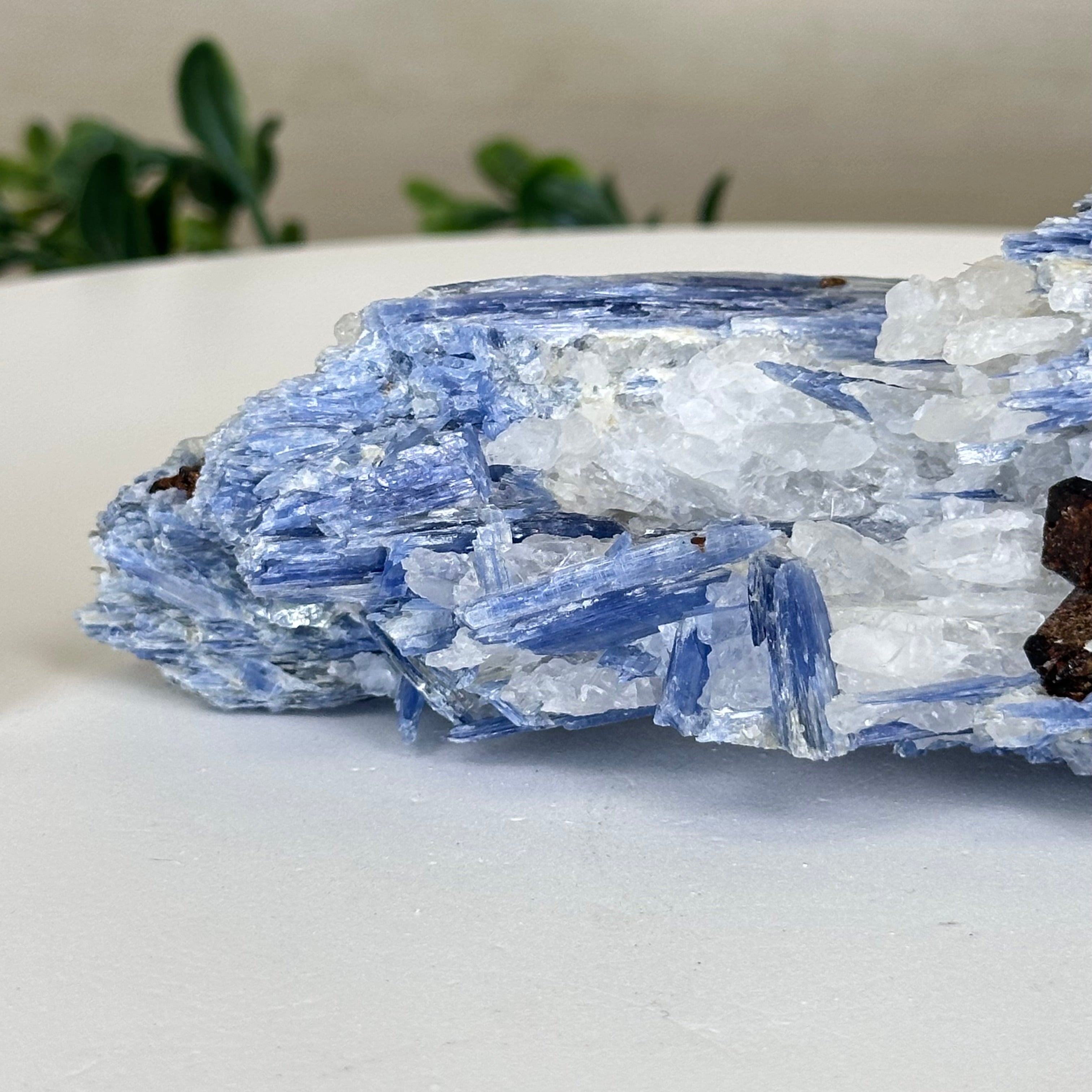 Disclaimer: This is a natural gemstone crystal sold by Brazil Gems® as is and as you see it in its images and video. It is the exact one you will receive. It may contain natural imperfections and/or imperfections, broken edges and repairs from the extraction and prepping processes. Kyanite is a very delicate and brittle gemstone with delicate crystal blades jutting out and handling the piece can inevitably cause its points/blades to break off in small pieces. It's best to handle it as little as possible. At Brazil Gems® we make every effort to get measurements as exact as possible but they are done by human hands and eyes and therefore may have minor discrepancies.