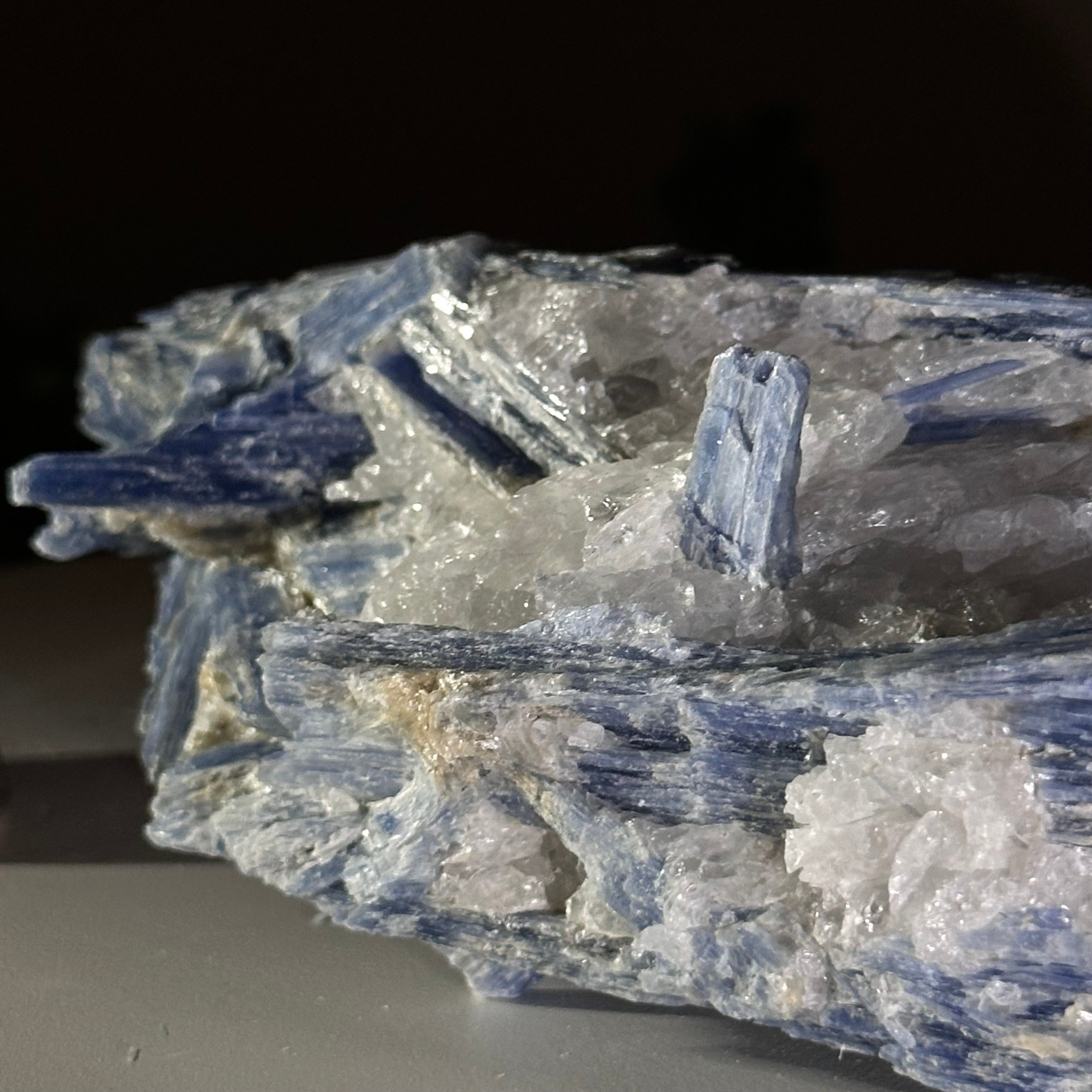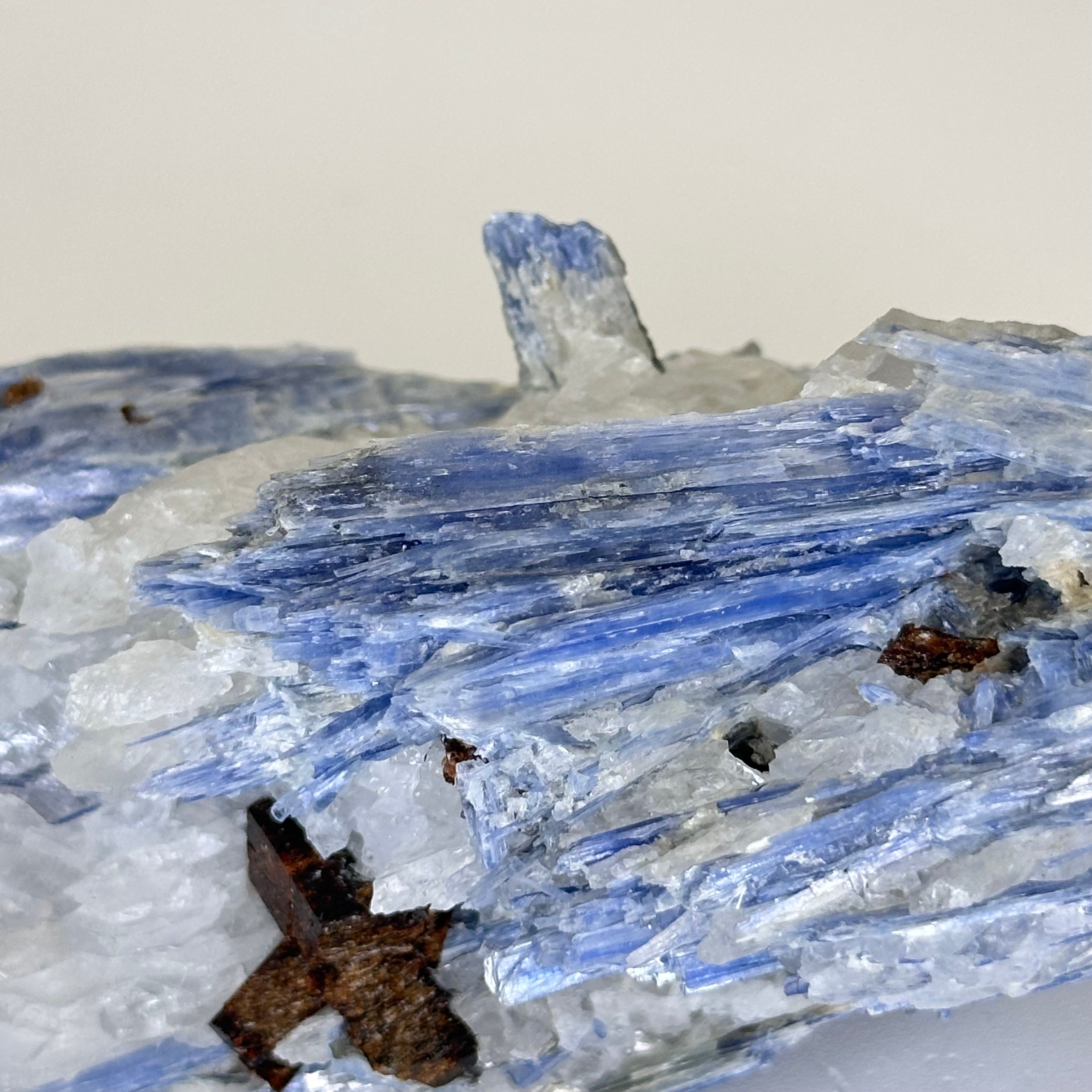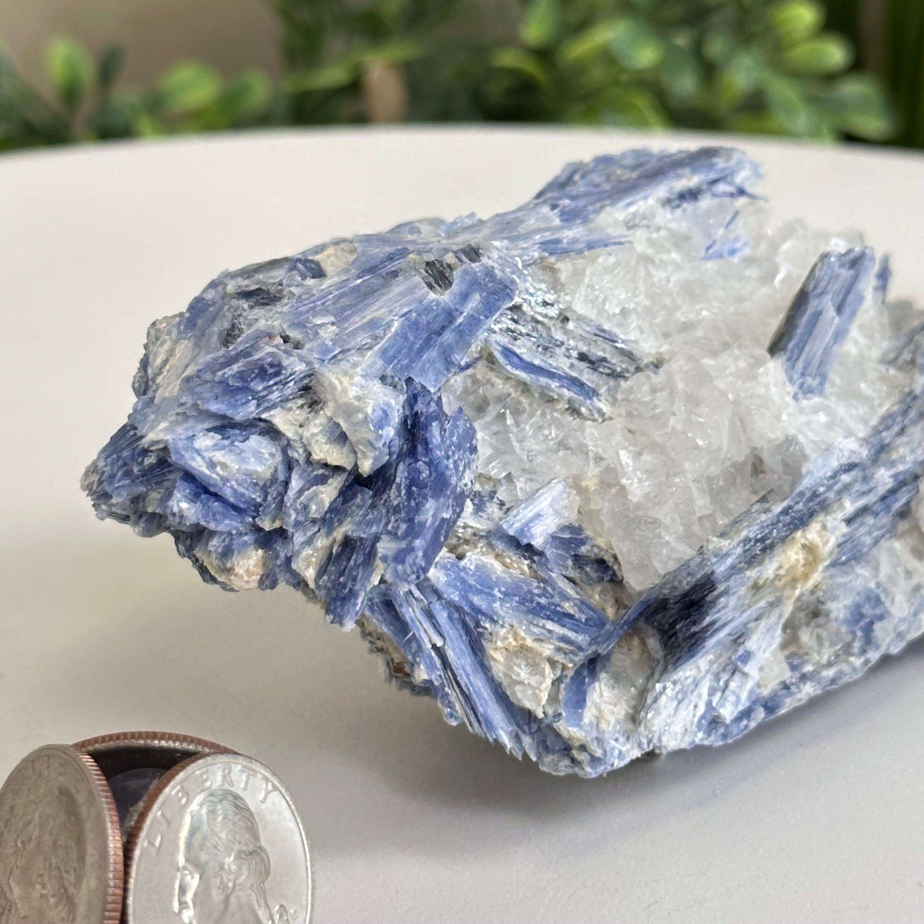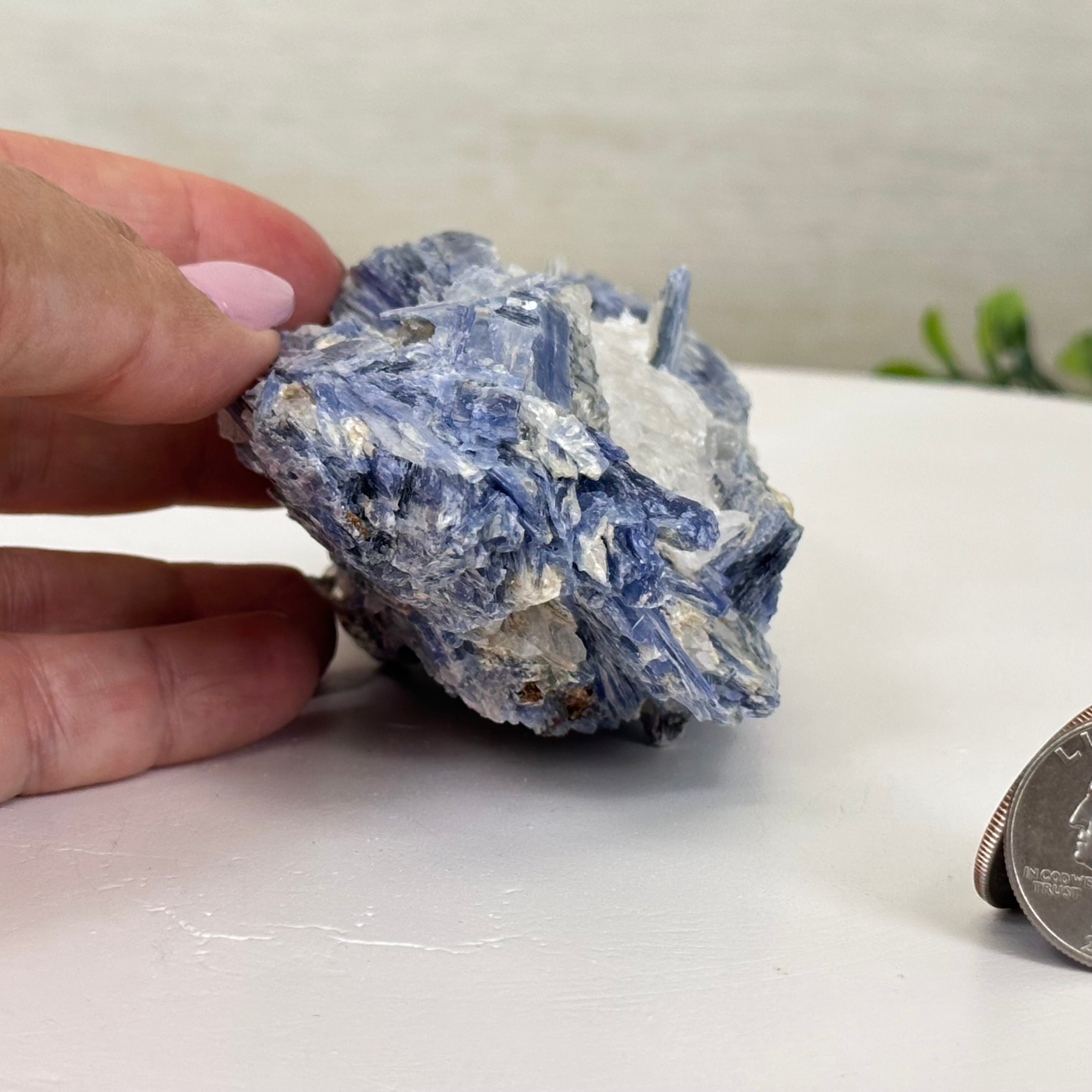 Disclaimer: This is a natural gemstone crystal sold by Brazil Gems® as is and as you see it in its images and video. It is the exact one you will receive. It may contain natural imperfections and/or imperfections, broken edges and repairs from the extraction and prepping processes. Kyanite is a very delicate and brittle gemstone with delicate crystal blades jutting out and handling the piece can inevitably cause its points/blades to break off in small pieces. It's best to handle it as little as possible. At Brazil Gems® we make every effort to get measurements as exact as possible but they are done by human hands and eyes and therefore may have minor discrepancies.