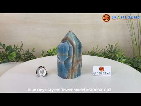 Position this Blue Onyx crystal tower on a shelf, desk, or countertop to bring a serene, refined elegance to your surroundings. Whether offered as a thoughtful gift or treasured as a generational keepsake, this crystal point combines nature’s soothing beauty with masterful craftsmanship, making it a captivating addition to any space.