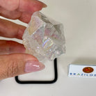 Disclaimer: This is a natural gemstone crystal sold by Brazil Gems® as is and as you see it in its images and video. It is the exact one you will receive. It may contain natural imperfections and/or imperfections, broken edges and repairs from the extraction, mounting and aura-effect bonding processes. The crystal has a hole drilled into the bottom of it so it could be mounted onto its black-painted metal stand. The Angel Aura effect is achieved through a process called vacuum deposition where vaporized metals such as silver and/or platinum are bonded to the natural crystal in a vacuum chamber giving it that iridescent pearlized sheen. At Brazil Gems® we make every effort to get measurements as exact as possible but they are done by human hands and eyes and therefore may have minor discrepancies.