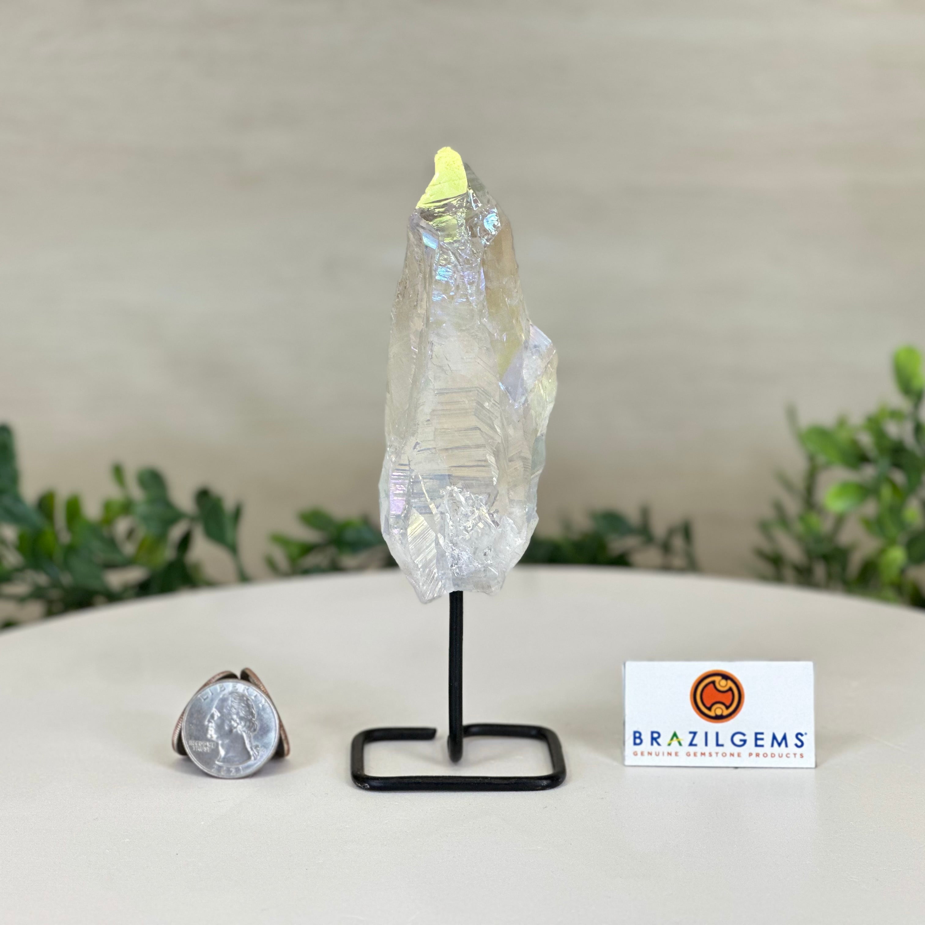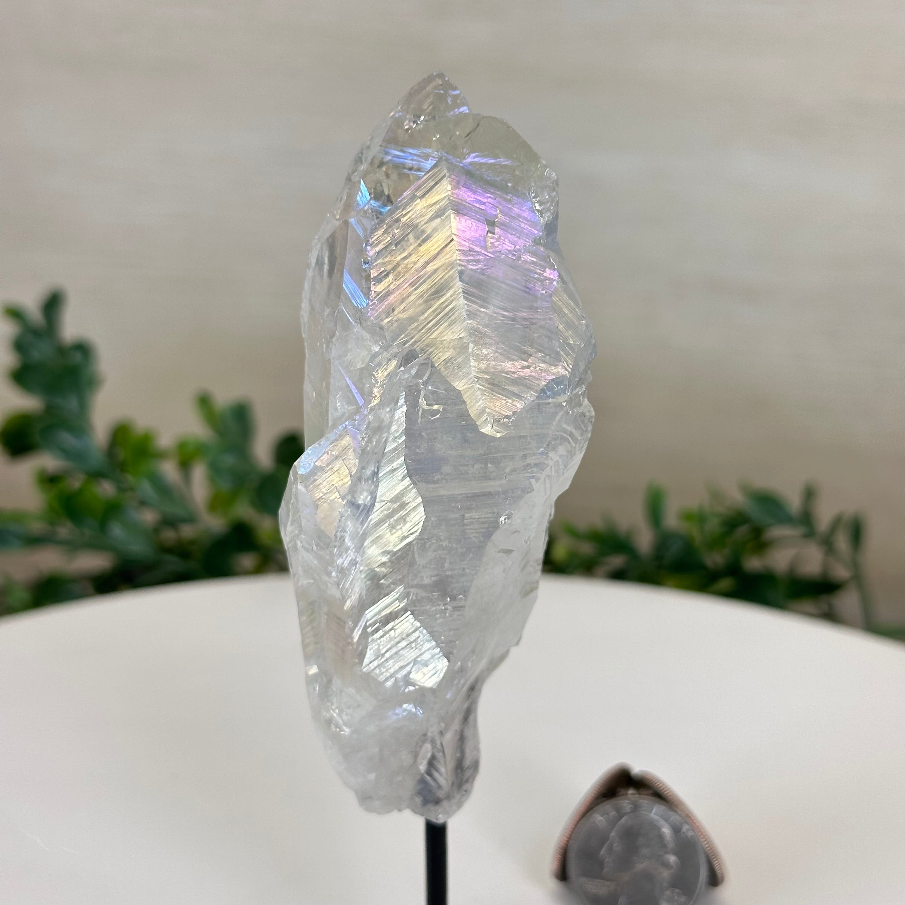 Angel Aura Quartz Point on a Metal Stand, 6" Tall #3122AA-032