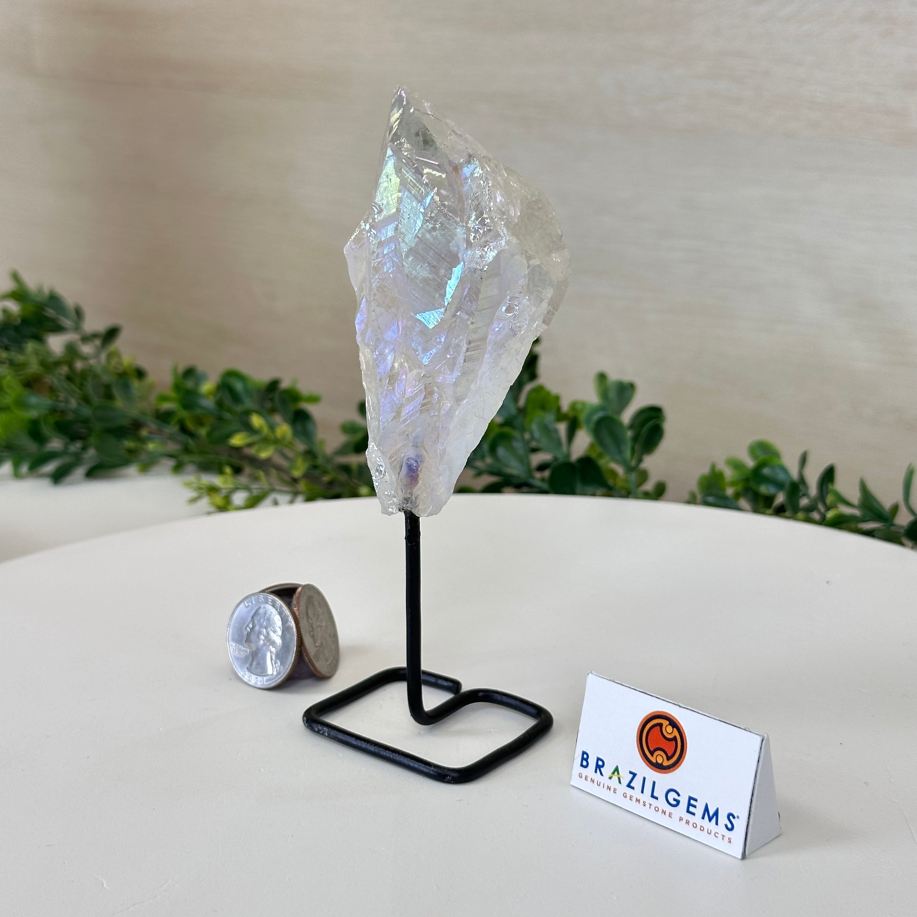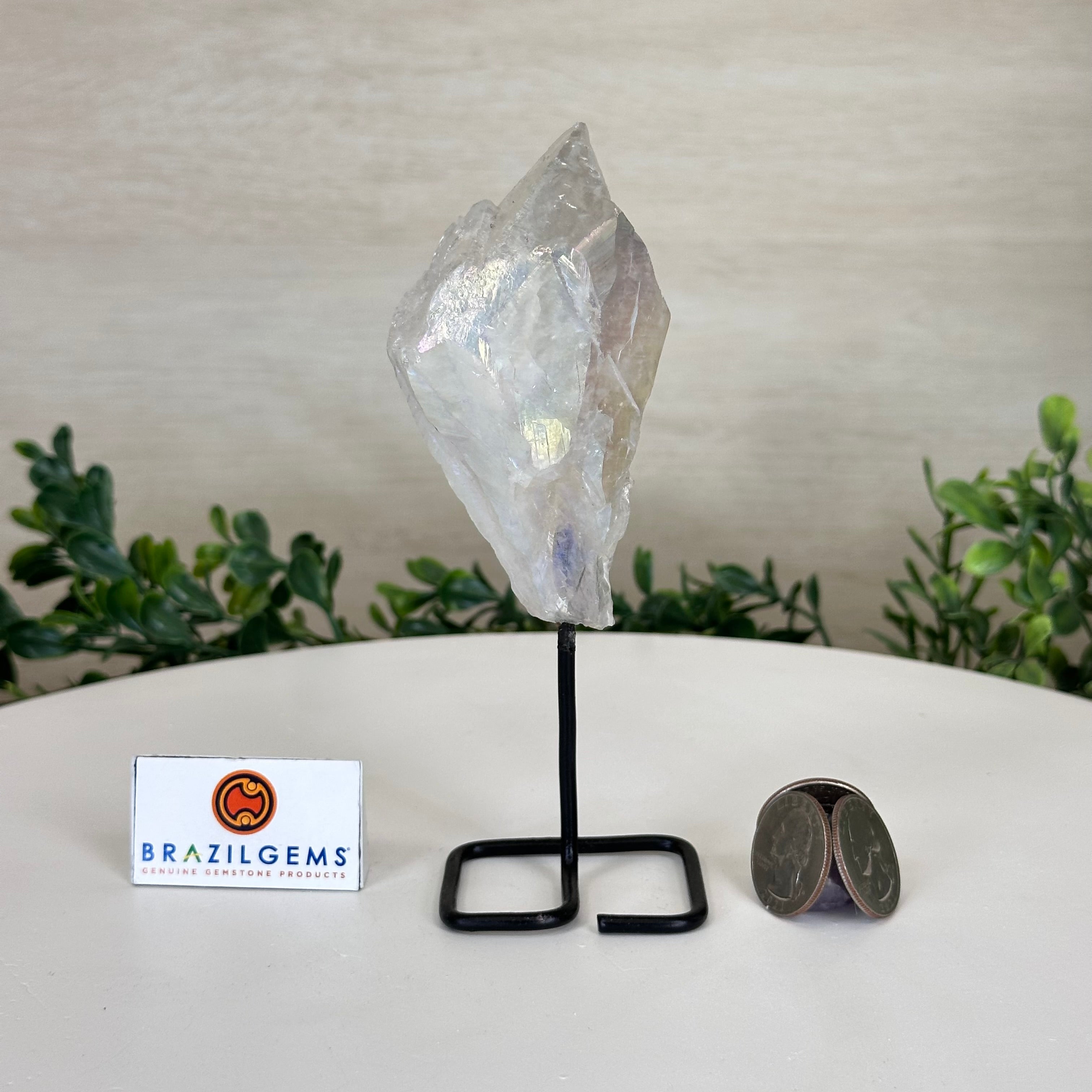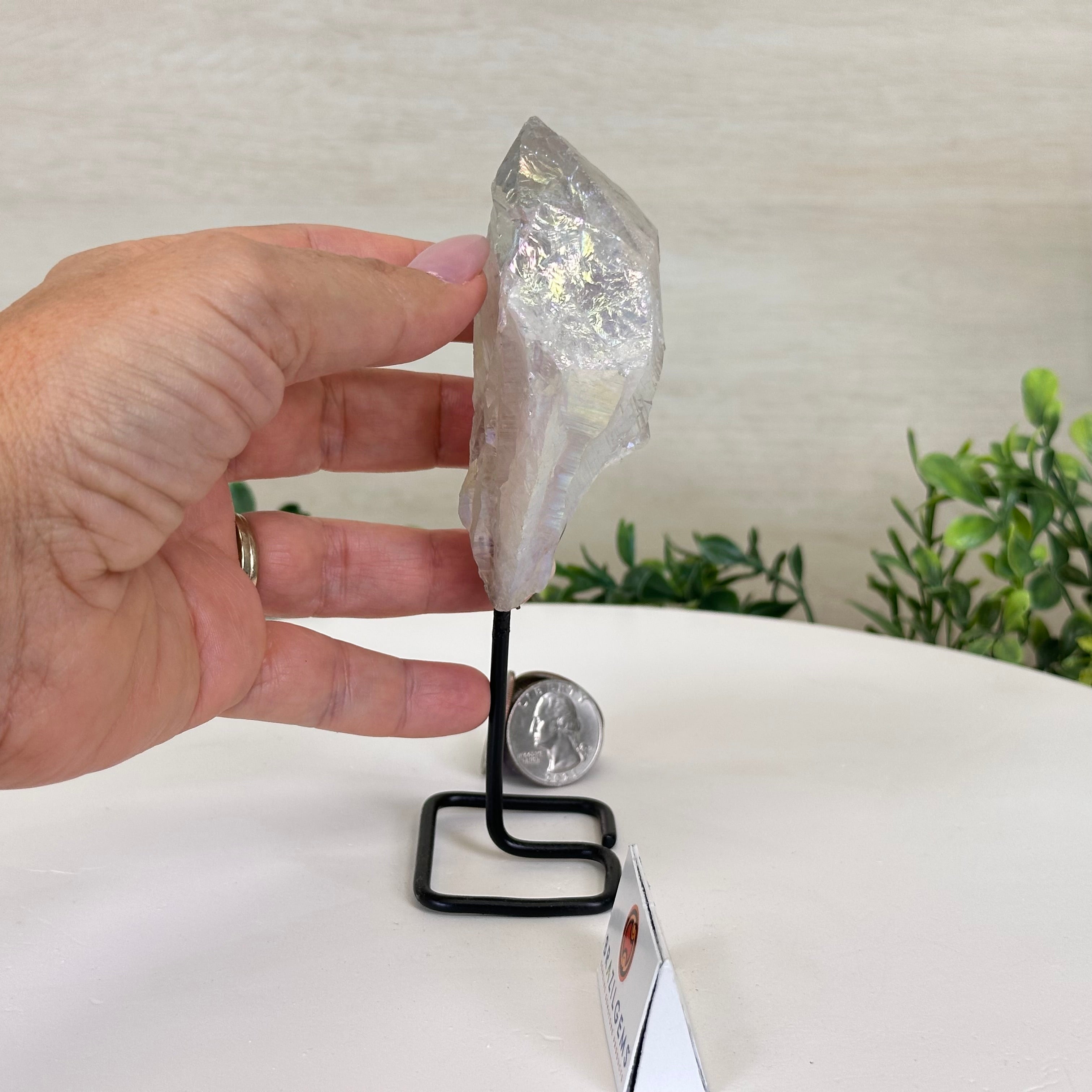 Angel Aura Quartz Point on a Metal Stand, 5.9" Tall #3122AA-035