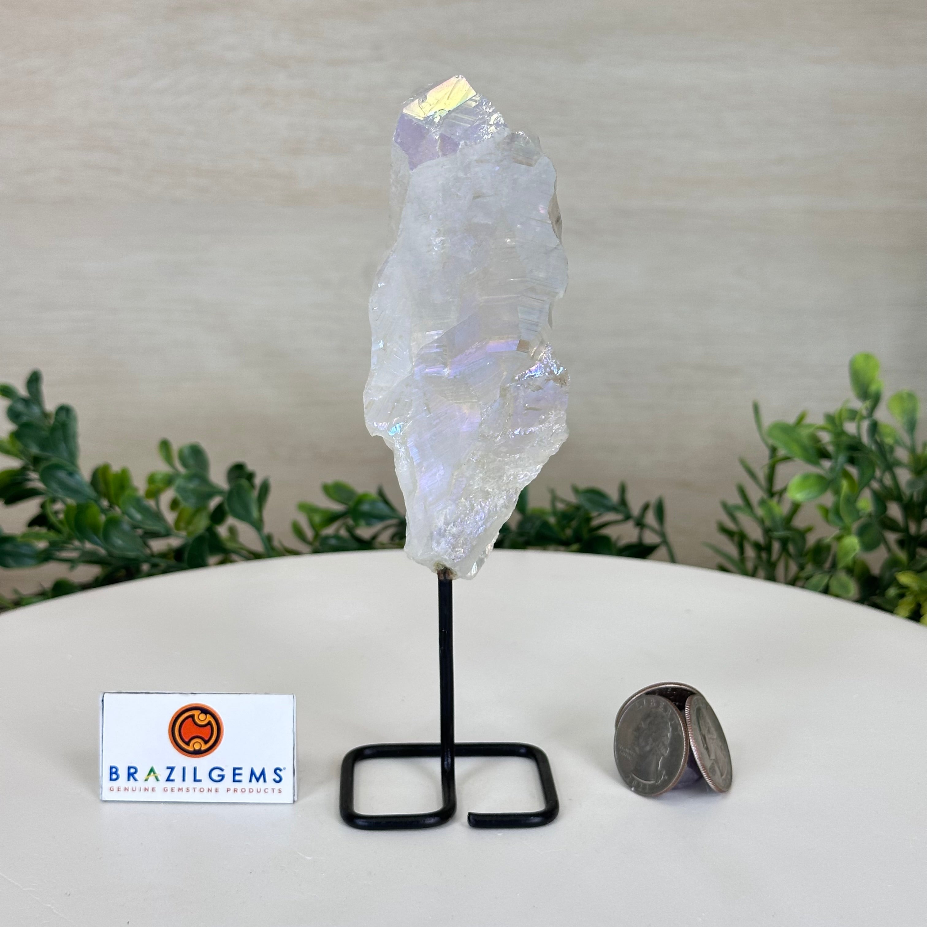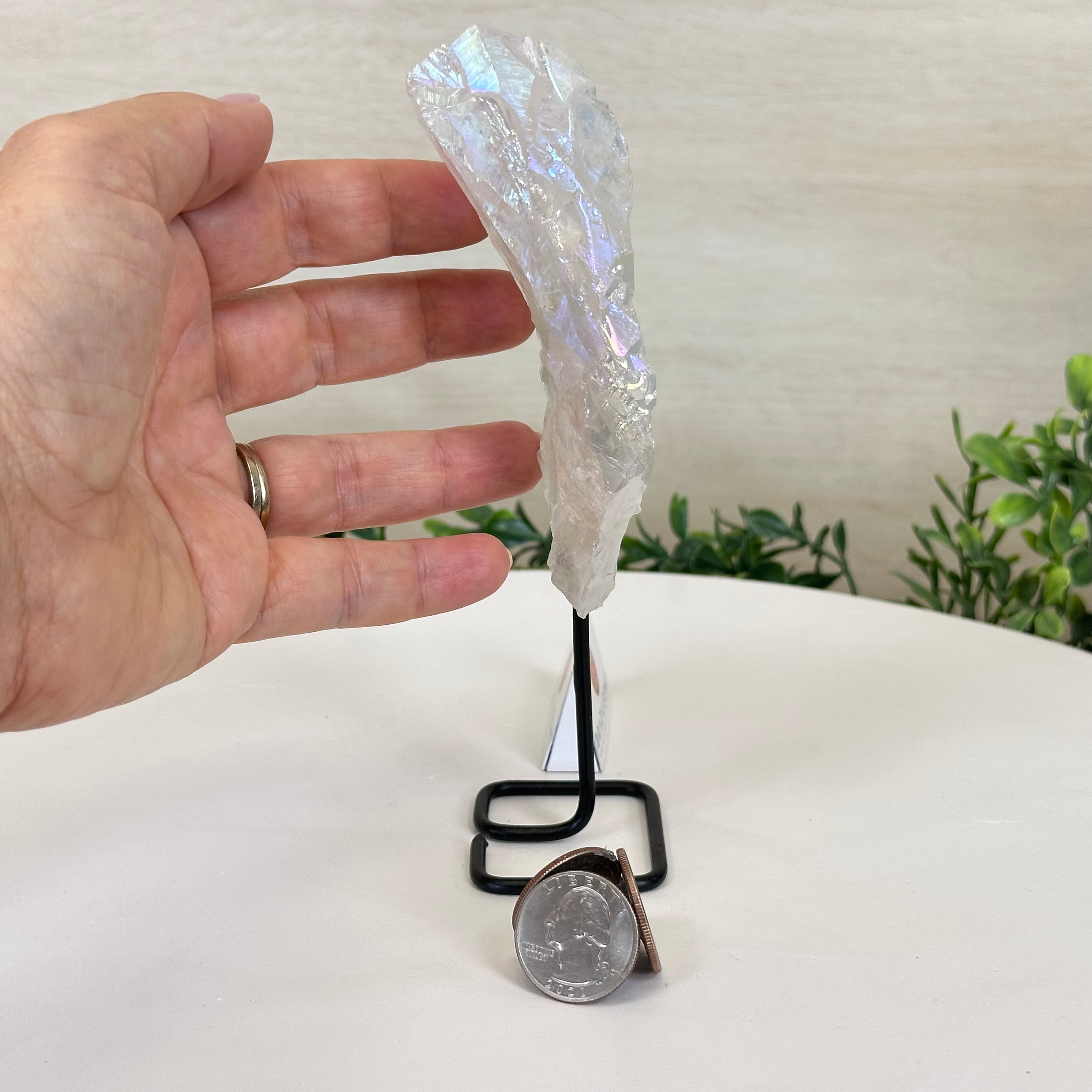 Angel Aura Quartz Point on a Metal Stand, 6.8" Tall #3122AA-037