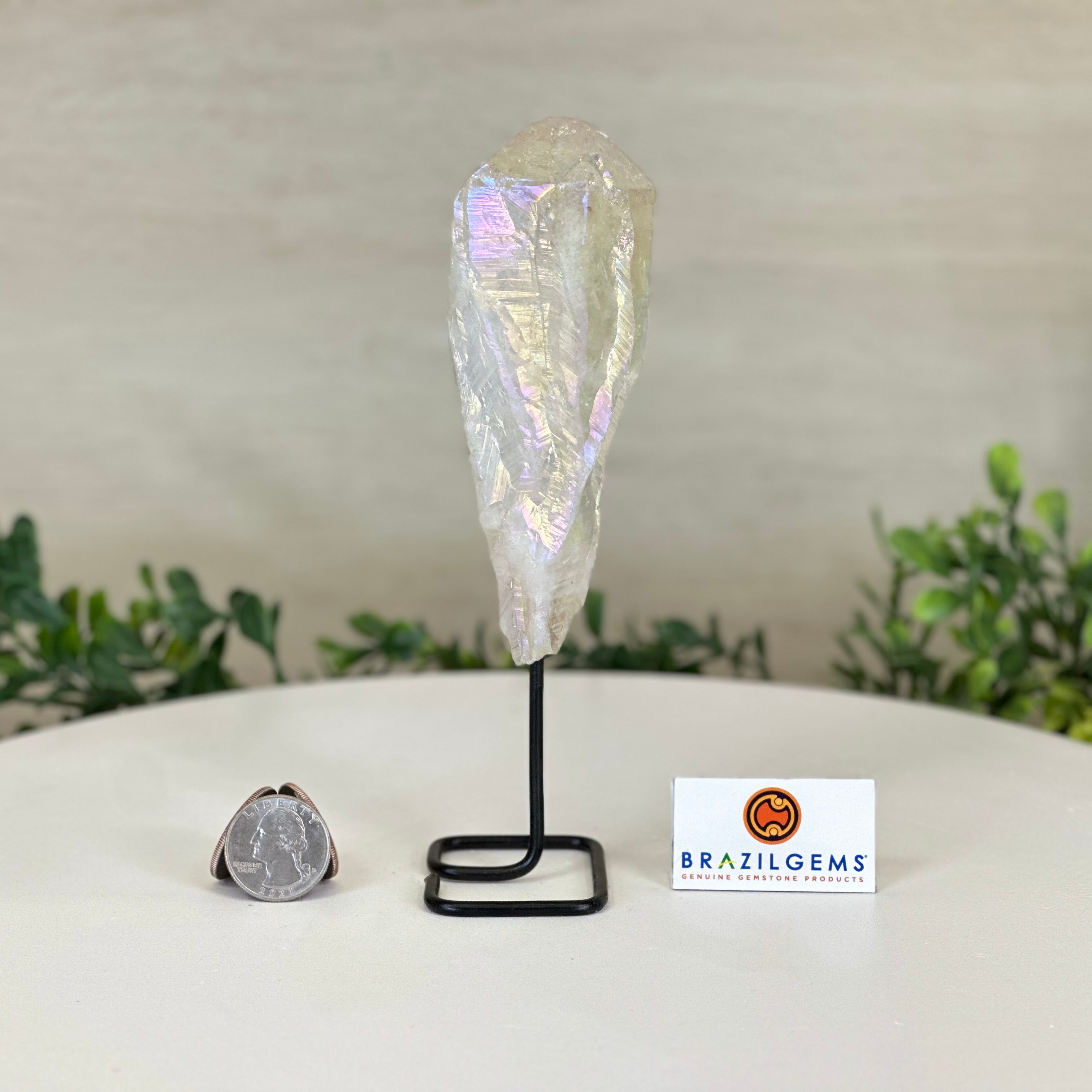 Angel Aura Quartz Point on a Metal Stand, 5.7" Tall #3122AA-040